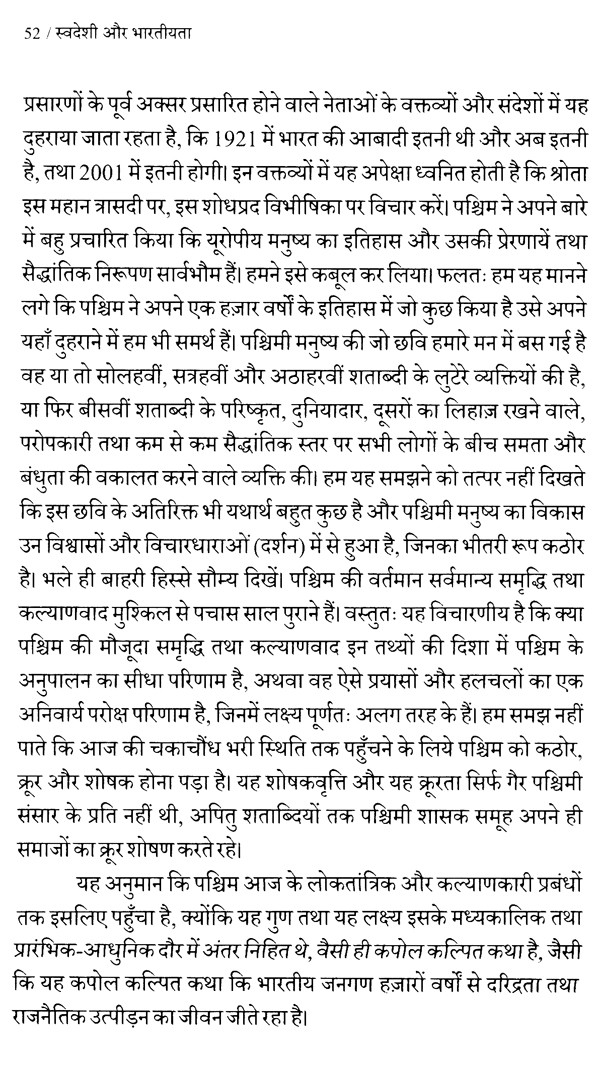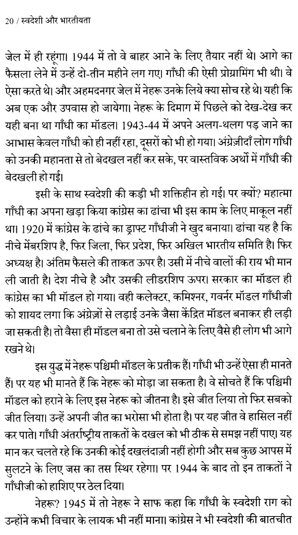 वस्तुतः उन दिनों देश में कुछ ऐसी भावना बनी, कि भारत का नया युग तो दो सौ वर्ष पूर्व अंग्रेज़ों के आने के साथ ही आरम्भ हो चुका था। एक अंतरराष्ट्रीयतावादी दृष्टि के अंतर्गत यह माना जाने लगा, कि औद्योगिक क्रांति के साथ एक ही बार में सारा संसार परिवर्तित हो चुका है। अब संपूर्ण विश्व की नियति उसी औद्योगिक विकास की दिशा में बढ़ते जाना है। इस दिशा में बढ़ने के लिए अंग्रेज़ों के राज्य के दौरान सुदृढ़ हुए राज्यतंत्र तथा अन्य संस्थागत व्यवस्थाओं का मज़बूत रहना आवश्यक दिखाई दिया। अंग्रेज़ी राज्य के समय की पराधीनता एवं स्वतंत्रता आंदोलन के समय की असुरक्षा की यादों के कारण, ये संस्थाएँ और भी अपरिहार्य लगने लगीं। अतः इन्हें बनाये रखने में ही देश की प्रायः समस्त सृजनात्मक शक्ति खर्च होने लगी।