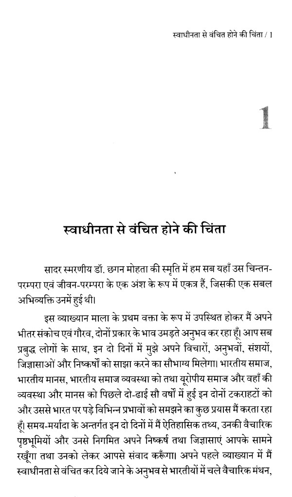 मानव जाति की विविध सभ्यताएँ रही हैं। इनके इतिहास और स्वरूप पर अनुसंधान का कार्य लगातार चलता रहता है। मुख्यतः तो हर समाज अपनी सभ्यता की स्मृति अपने ढंग से जीवंत रखता है और यह स्मृति ही संस्कार, संकल्प, प्रेम तथा श्रेय के रूपों में आकांक्षा और सर्जना के विविध पुरुषार्थों का आधार बनती है। इस स्मृति का बने रहना ही किसी विचार और व्यवहार को अधिप्रमाणित करता है। स्मृतिरहित कथन या चिन्तन, अधिप्रमाण्यरहित कथन या चिन्तन हो जाता है। उसका वास्तविक बल रह नहीं जाता। भारत को अब अपनी पुनर्योजना, सांस्कृतिक राजनीति को आगे रखकर, करनी होगी। इस पुनर्योजना में अर्थशास्त्र नियामक सिद्धान्त कदापि नहीं हो सकता। प्रत्येक सभ्यता में विविध अवधारणाओं की एक क्रम-व्यवस्था रहती है। किन्तु अर्थशास्त्र किसी भी सभ्यता में प्रमुख नहीं होता। अपनी सभ्यता से कटे हुए और यूरोपीय सभ्यता के मर्म से अनजान तथा उसके प्रति दास्य-भाव से भरे भारतीय शासक वर्ग को ही अर्थशास्त्र प्रमुख दीखता है। यूरोपीय शासक वर्ग तो हमें अपनी सभ्यता का मानवीय संसाधन मानकर हमारे लिए अर्थशास्त्र को प्रमुख मानता है। अब हमें अवधारणाओं के प्रधान गौण-क्रम का यह उलट बोध फिर से व्यवस्थित करना होगा, उसे सही क्रम में समझना और रखना होगा।"
