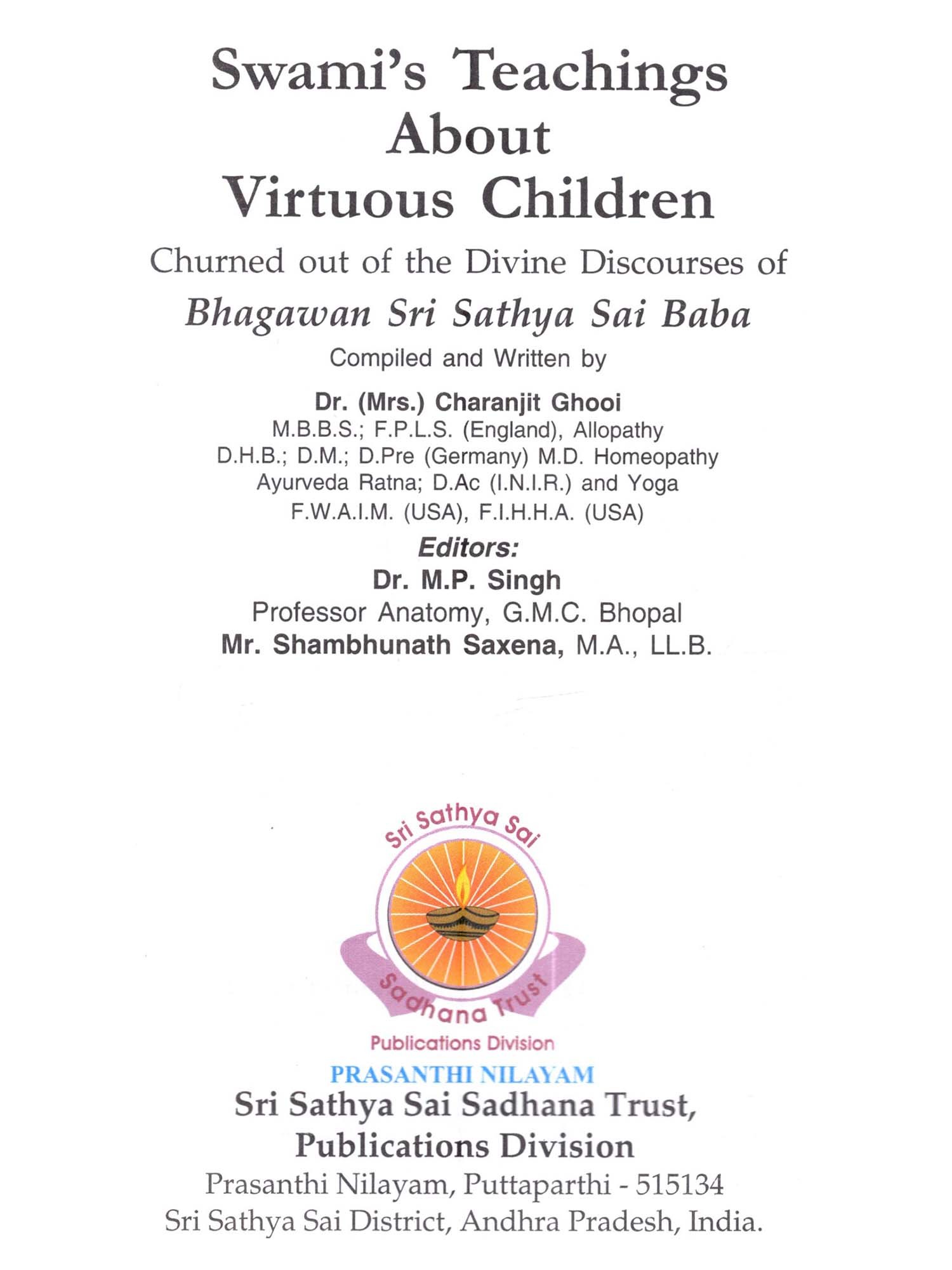 Dr Ghooi, a highly qualified medical doctor in more than one field, viz., in Allopathy, Homeopathy, and Ayurveda, has done a lot of research and attempts in this book to collect all Vedic knowledge and Bhagawan's teachings in this regard which prove the validity of these facts under applied medical concepts of today. Sketches and explanatory diagrams make the elucidation more valuable and authentic. Devotees and general public who lead a family life will find this book most interesting and valuable, for their practice and elevating spirituality.