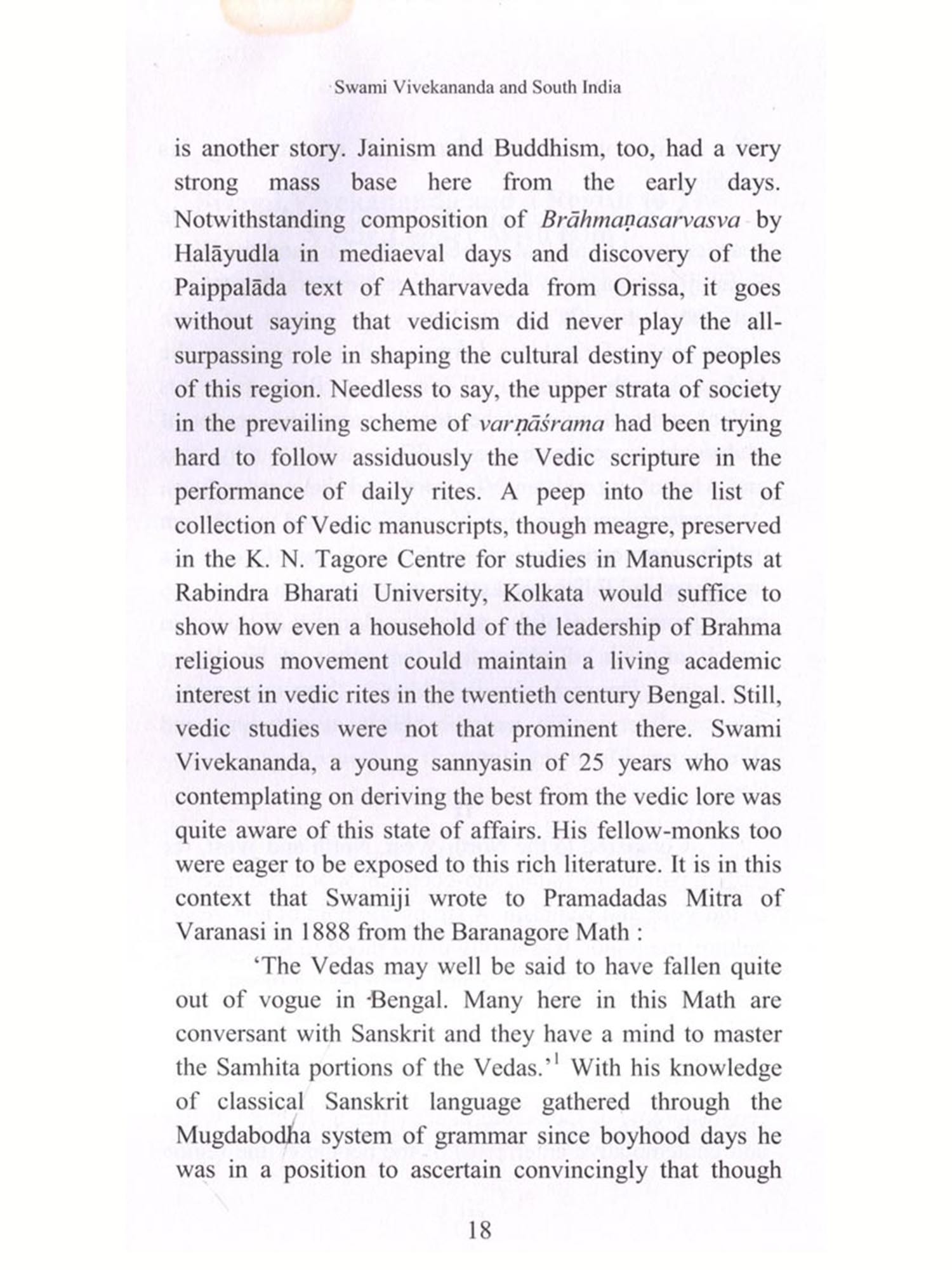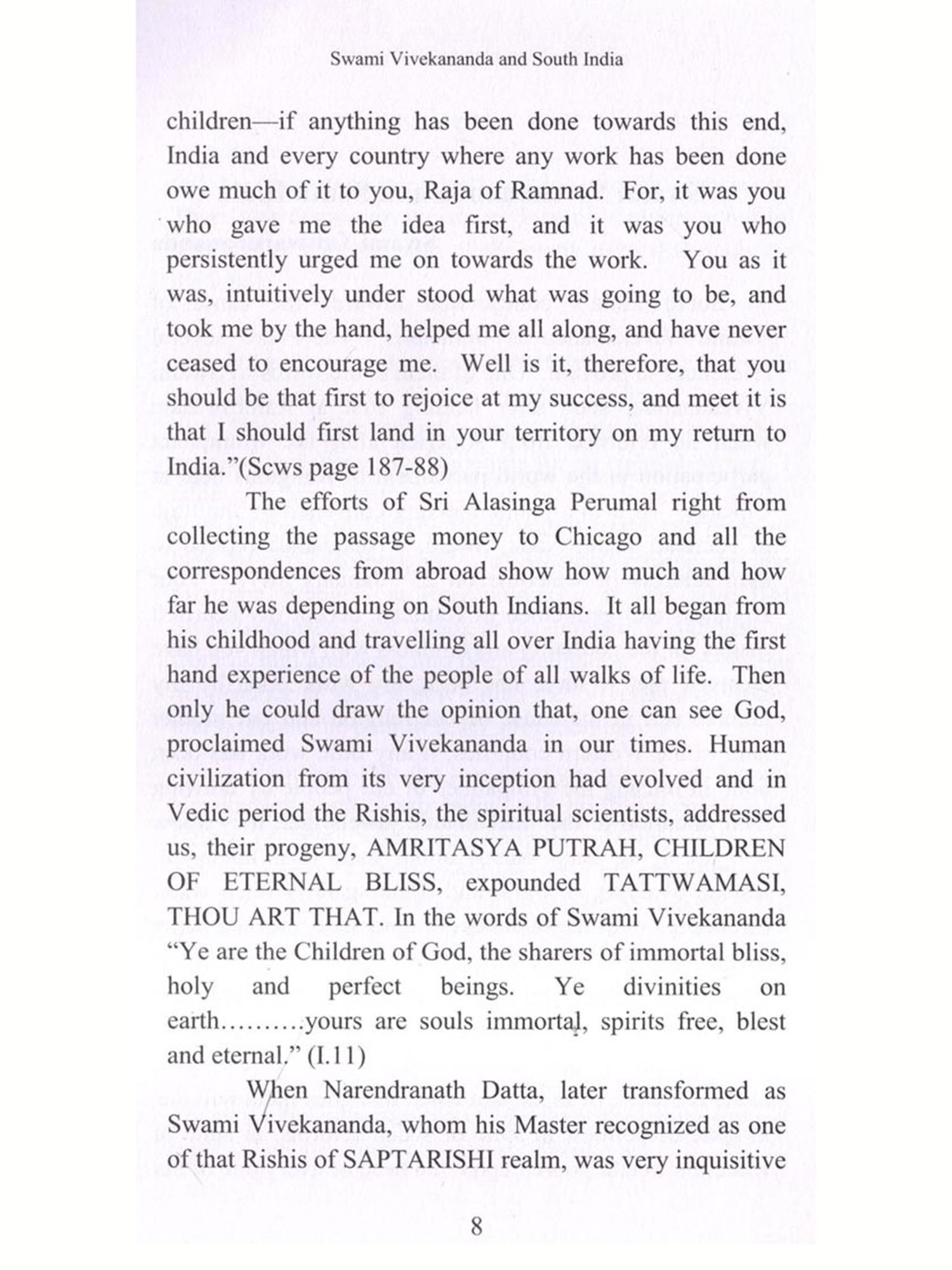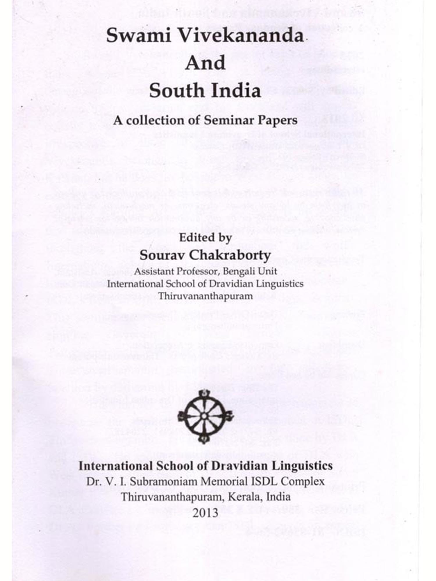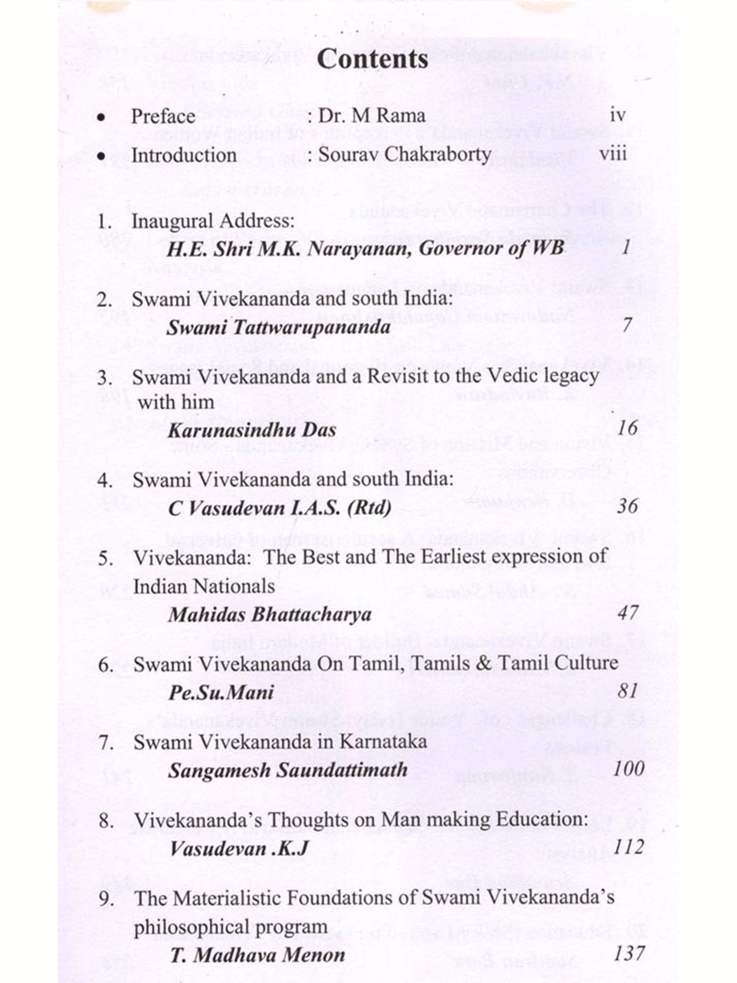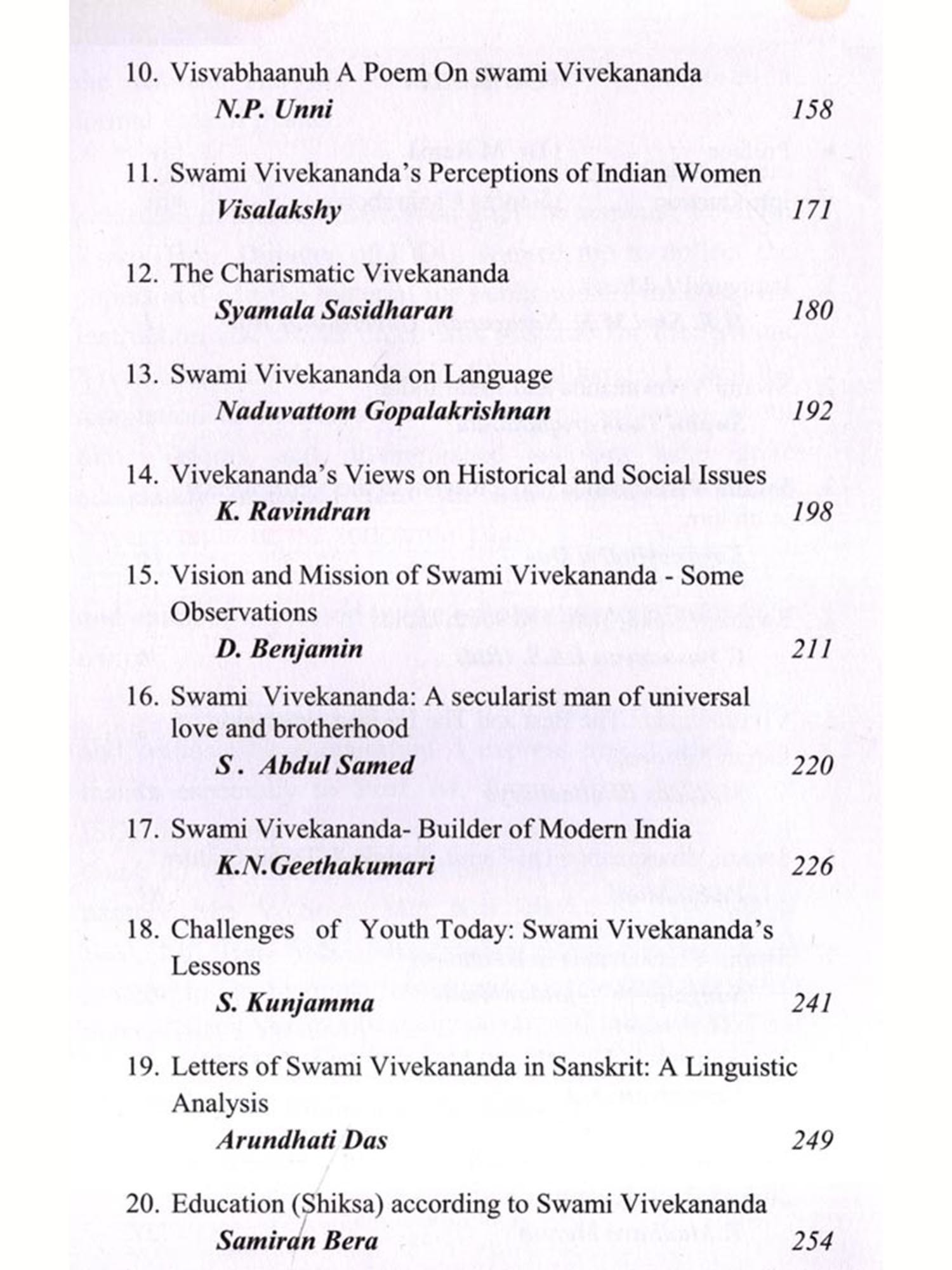 The present volume is a collection of the papers presented in this seminar. Soon after the seminar, Prof. M. Rama, Hon. Director of ISDL, wanted me to collect the papers and edit the material for publication. I followed his instruction and did as much was possible for me. Swami Vivekananda needs no introduction and hence, I resist the temptation of writing a few introductory sentences about him. Veteran and distinguished scholars have quite adequately analyzed the life and works of Swami Vivekananda in the following pages. I have not tried to apply my own analysis on their views. Hence, the views and opinions expressed by the scholars are absolutely their own.