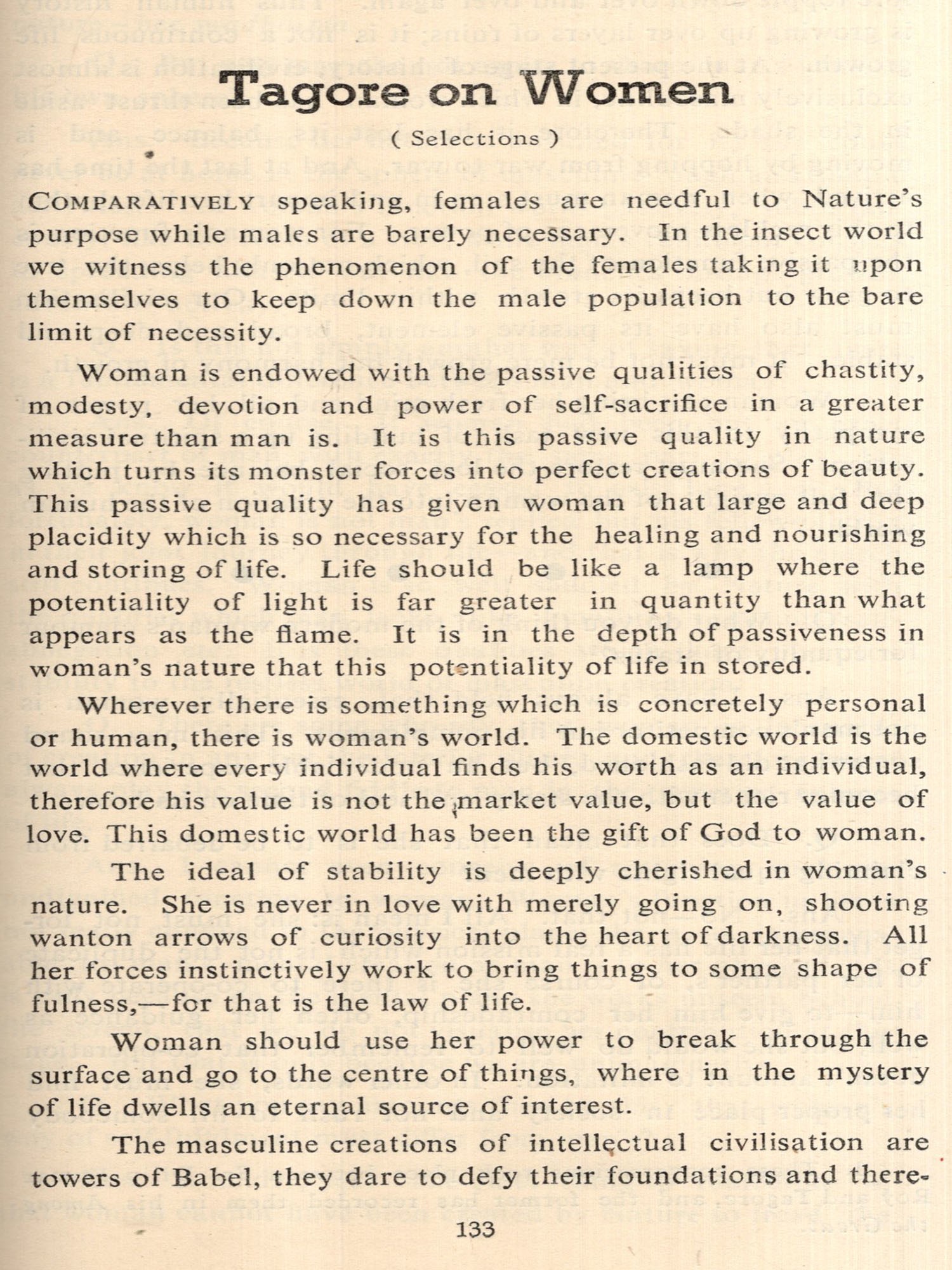 We can only hint at his many splendored genius in this brief account. The world rightly honours Rabindranath Tagore as one of the greatest literary figures in history. His writings include more than one thousand poems and two thousand songs in addition to a large number of short stories, novels, dramatic works and essays on diverse topics. As a writer of lyrics and songs, he has rarely been equalled and perhaps never surpassed. As a short story writer, his rank is among the first three or four masters of the craft. As a novelist and playwright, he has achieved for himself an honoured place in the world of letters. As a literary critic, he has given evidence of rare insight and deep sympathy with the work of men who differed from him widely in tradition and temperament. It is thus not surprising that his works should be translated into all the major languages of the world and bring joy, solace and strength to countless millions.