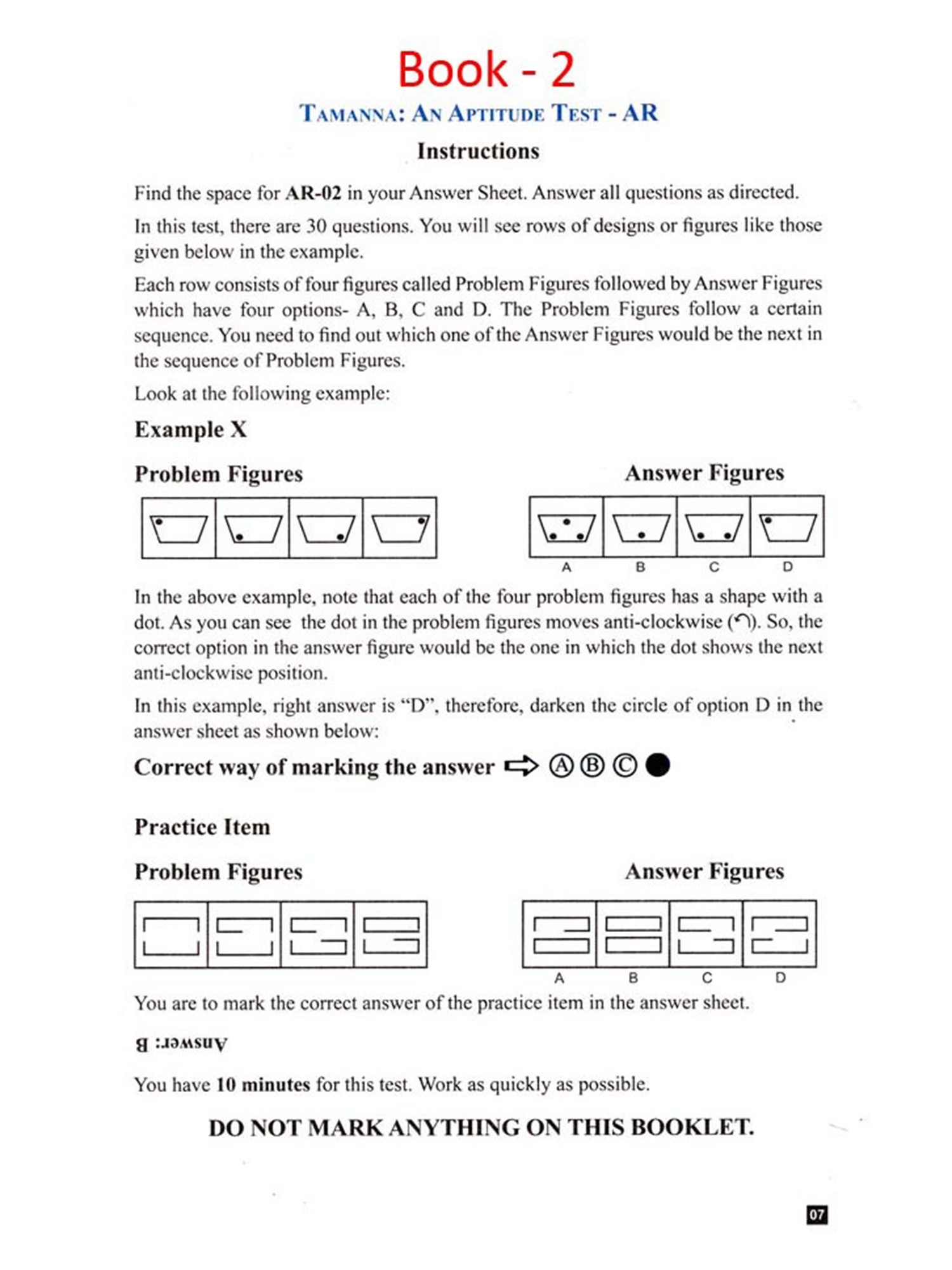 The efforts made by the Department of Educational Psychology and Foundations of Education in developing the aptitude test are acknowledged. Piloting of the aptitude test undertaken by the Central Board of Secondary Education (CBSE) in its affiliated schools is gratefully acknowledged. I place on record my appreciation to all members of the Test Development Team and Review Committee for their efforts in the development of the aptitude test.