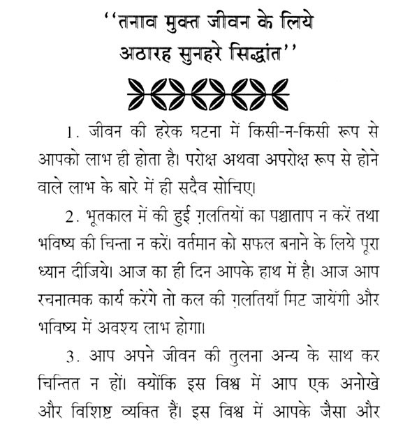 तनाव से मुक्ति पाने के लिए इस बात को स्वीकार करना होगा कि तनाव परिस्थितियों के कारण निर्मित नहीं होता, बल्कि इसका कारण व्यक्ति की ग़लत विचारधारा एवं ग़लत दृष्टिकोण है। इस सनातन सत्य को कुछ उदाहरणों द्वारा स्पष्ट करना उचित होगा।