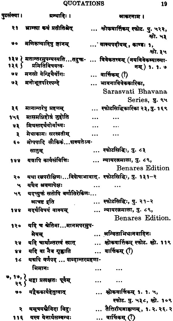 The Commentary-Tattvavibhavana-which is incorporated in this edition, is lucid and very helpful in understanding the text of Vacaspatimisra. Though this commentary is generally reliable, it must be said that the learned com-mentator nods in some places. For instance, at page 96 of the text, the commentator has adopted a defective reading and he has entirely missed the meaning of the technical terms used in this text. By the way it may be observed that the correct reading of this text is as given in the footnote; and that this refers to the three types of cognitions which are capable of being reproduced in memory which Prasastapada describes in his Padarthadharmasangraha in the Samskara section of the gunagrantha.