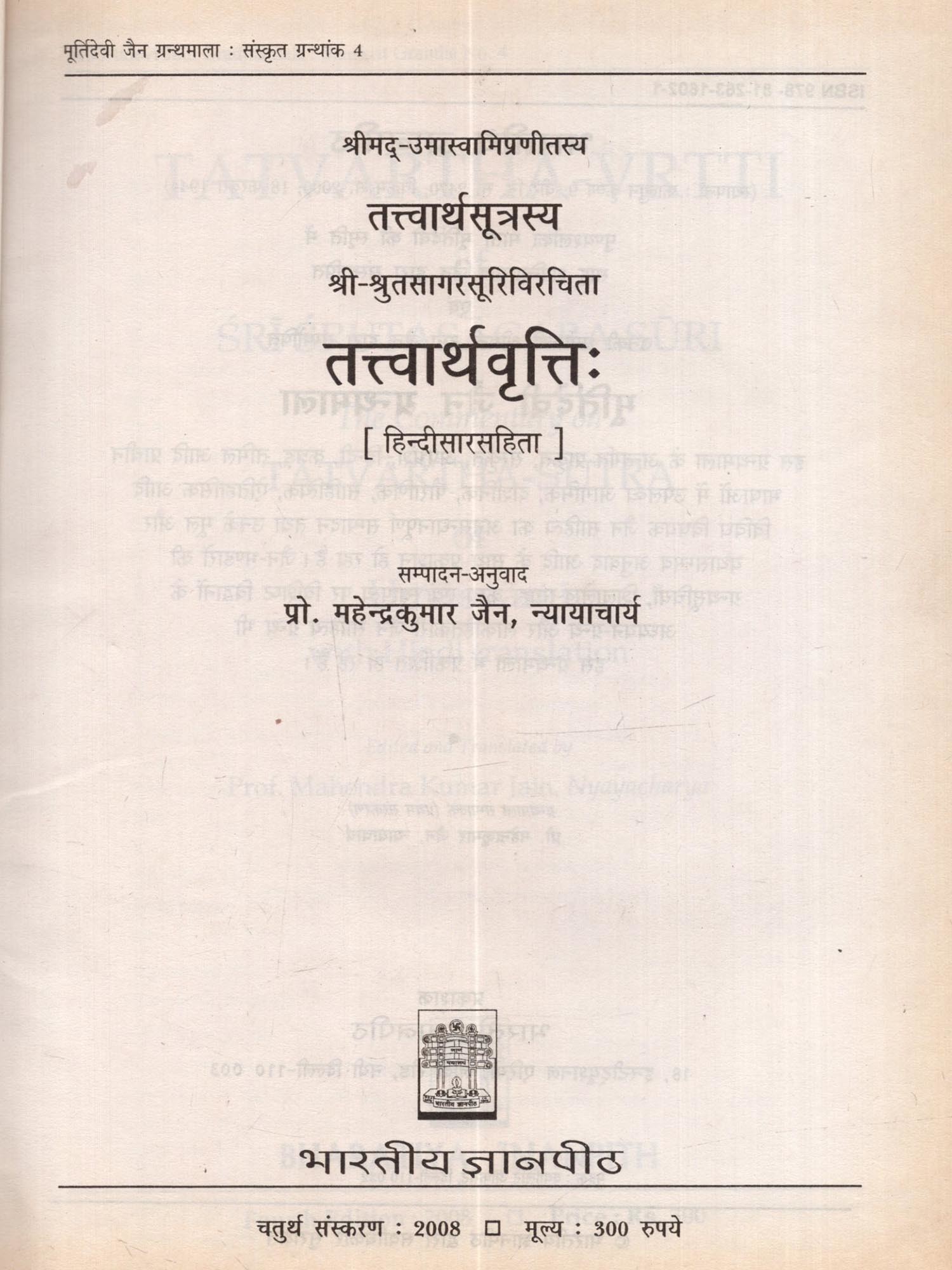 तत्त्वार्थसूत्रस्य श्री-श्रुतसागरसूरिविरचिता तत्त्वार्थवृत्तिः [ हिन्दीसारसहिता ]: Tatvarthsutrasya Shri-Shrutasagarasurivirachita Tatvarthavruttih [ Hindisarasahita ]