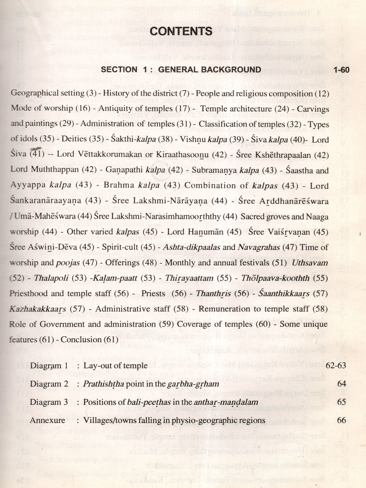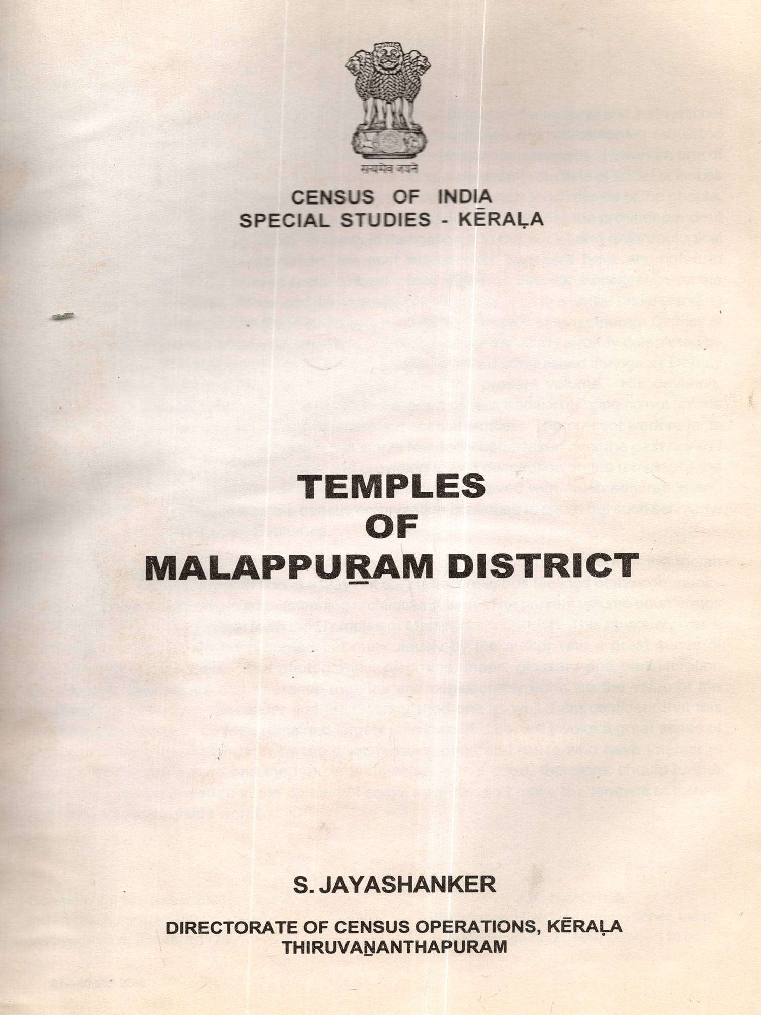 The monograph on Temples of Keraļa which was published earlier covered the general aspects on temples in Keraļa like history of temples over the last two thousand years, mode of worship, architectural features, iconography of idols, deva-praśnam, temple rites, priesthood, temple customs, offerings, temple administration, ritualistic and performing arts, carvings and paintings etc. This volume, the fourth in the series of district monographs, is an addendum to the monograph on Temples of Kerala and it attempts to cover an account of the temples of Malappuram district.