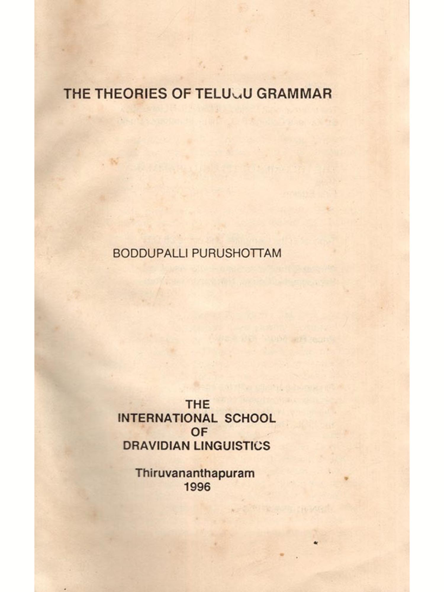 I am glad to submit this report on THE THEORIES OF TELUGU GRAMMAR to Prof. V.I. Subramoniam, the Honorary Director of ISDL, who honoured me with this assignment to complete it as a Visiting Fellow of telugu at ISDL.