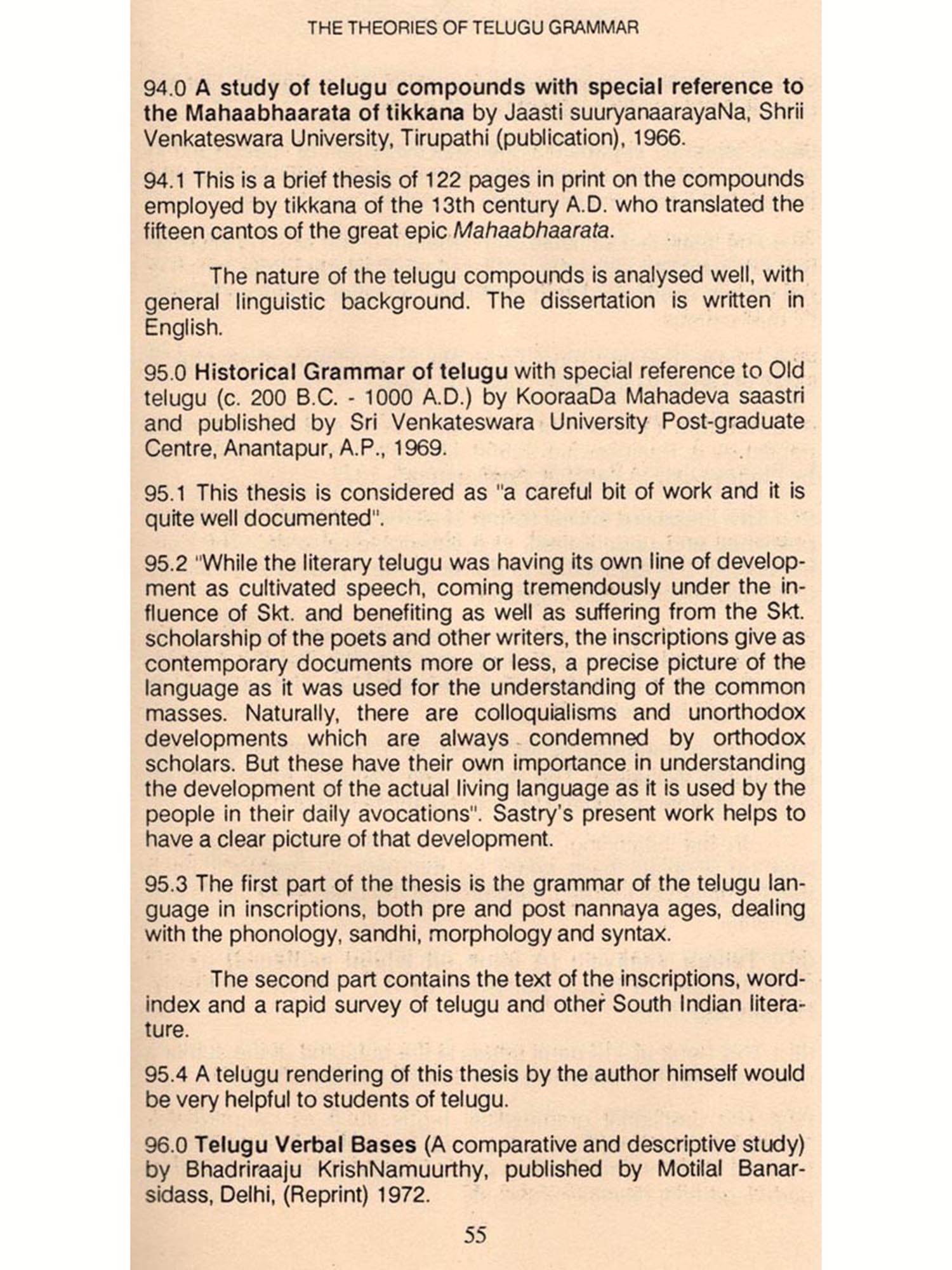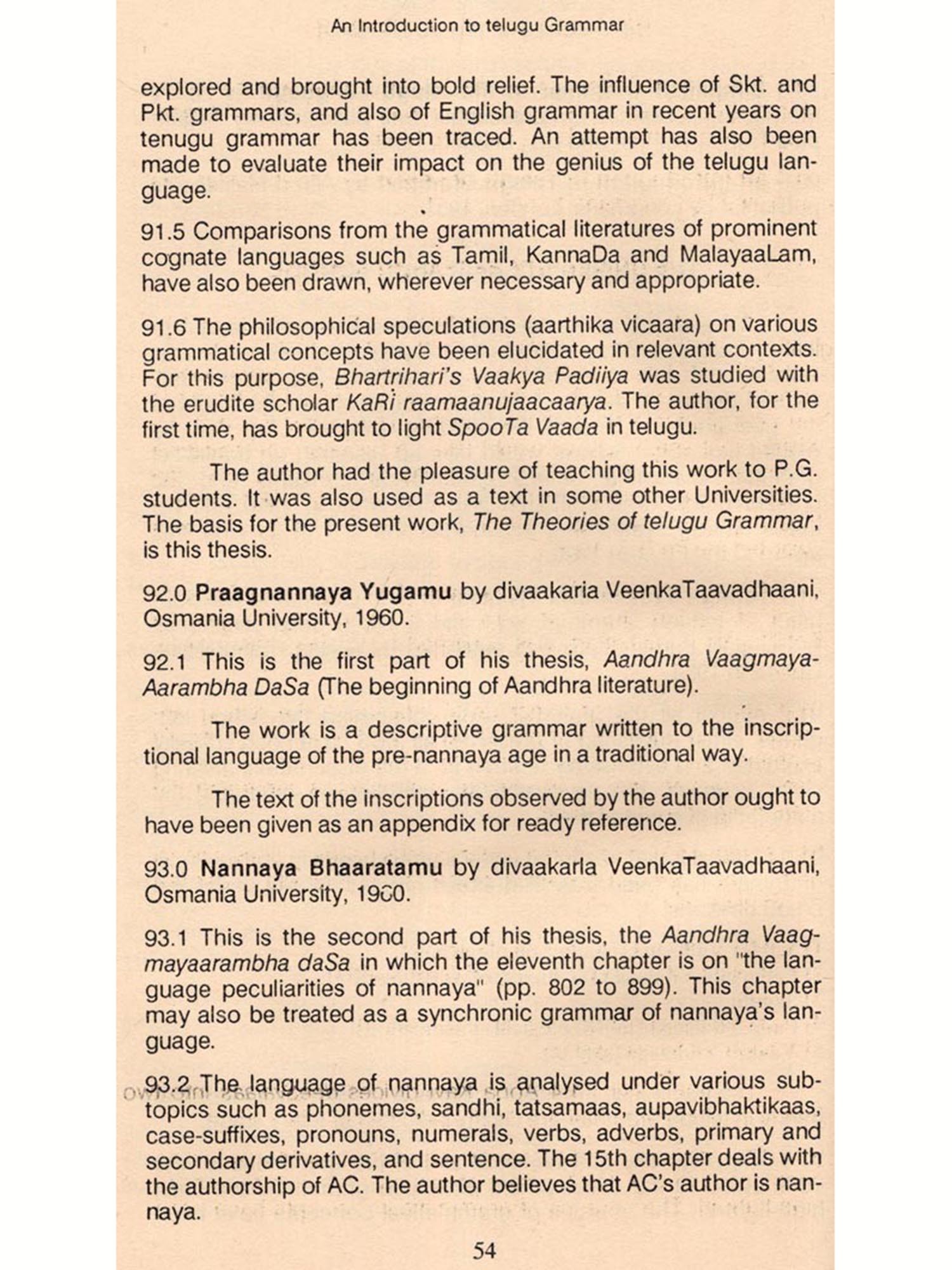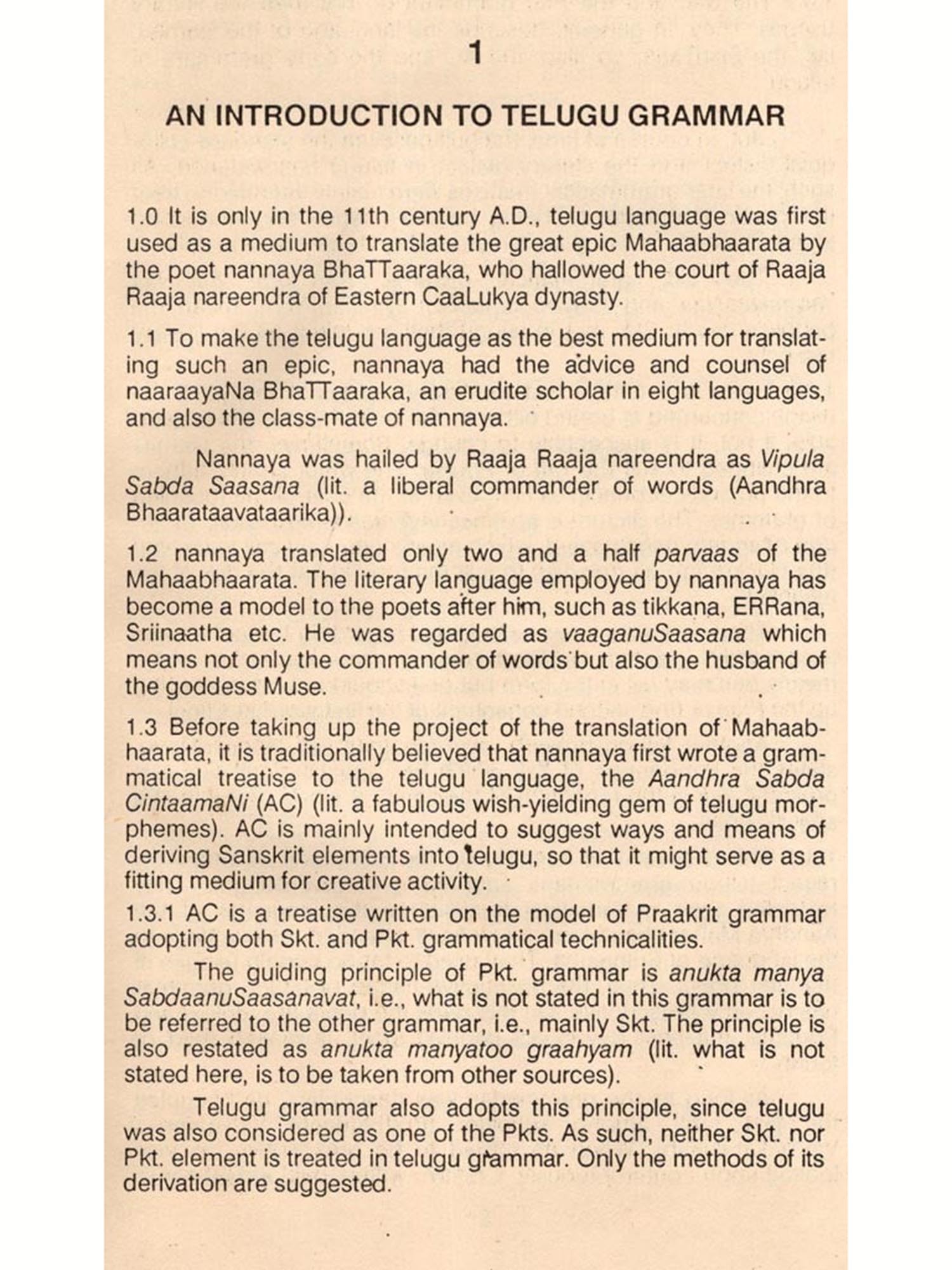 A comprehensive descriptive grammar of the ancient and modern telugu, with the whole gamut of general linguistics is the urgent need, indeed. I hope the International School of Dravidian Linguistics would soon undertake such projects for all the cul-tivated Dravidian languages.