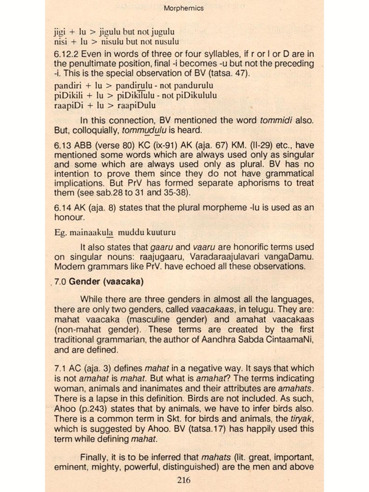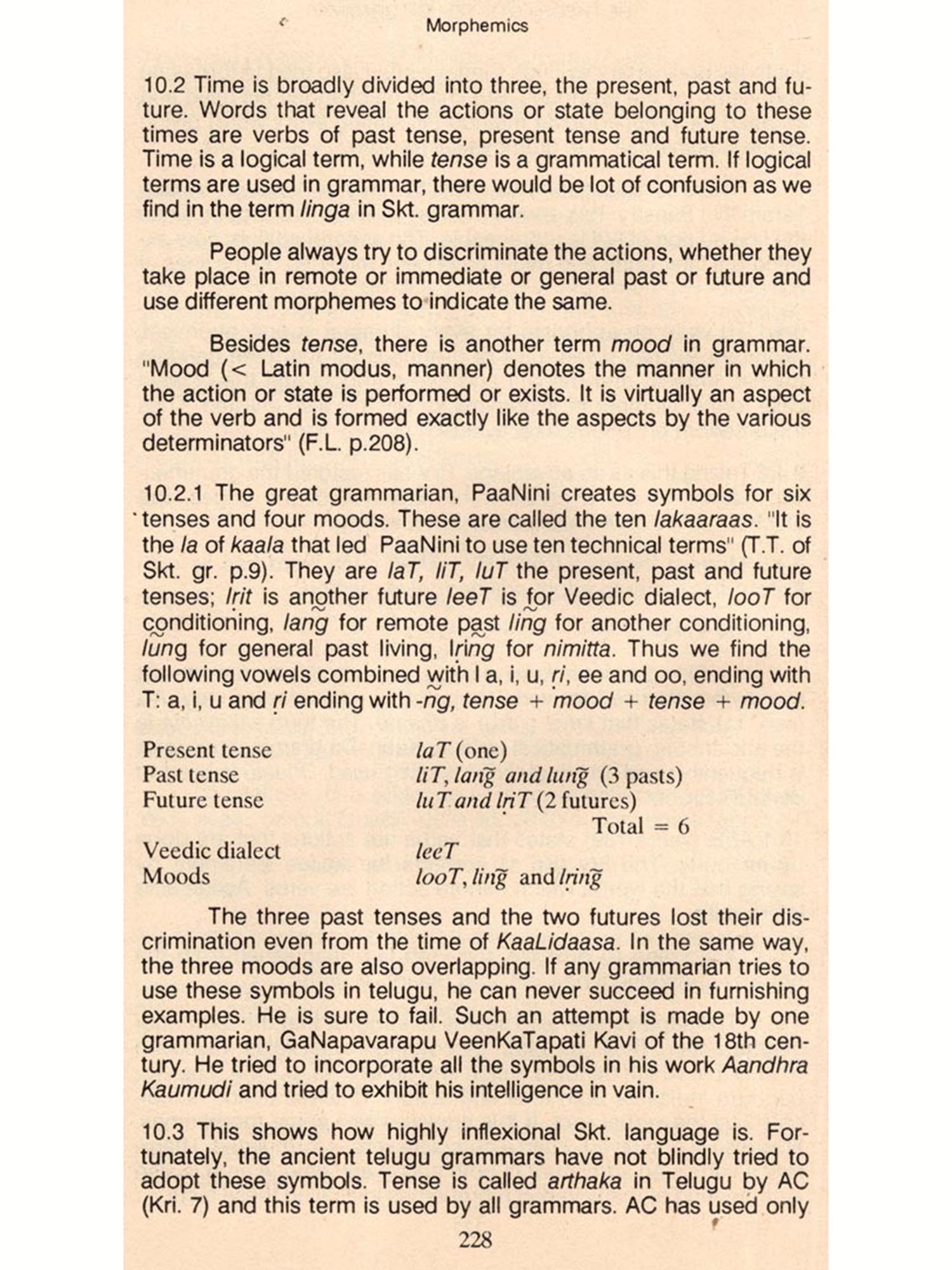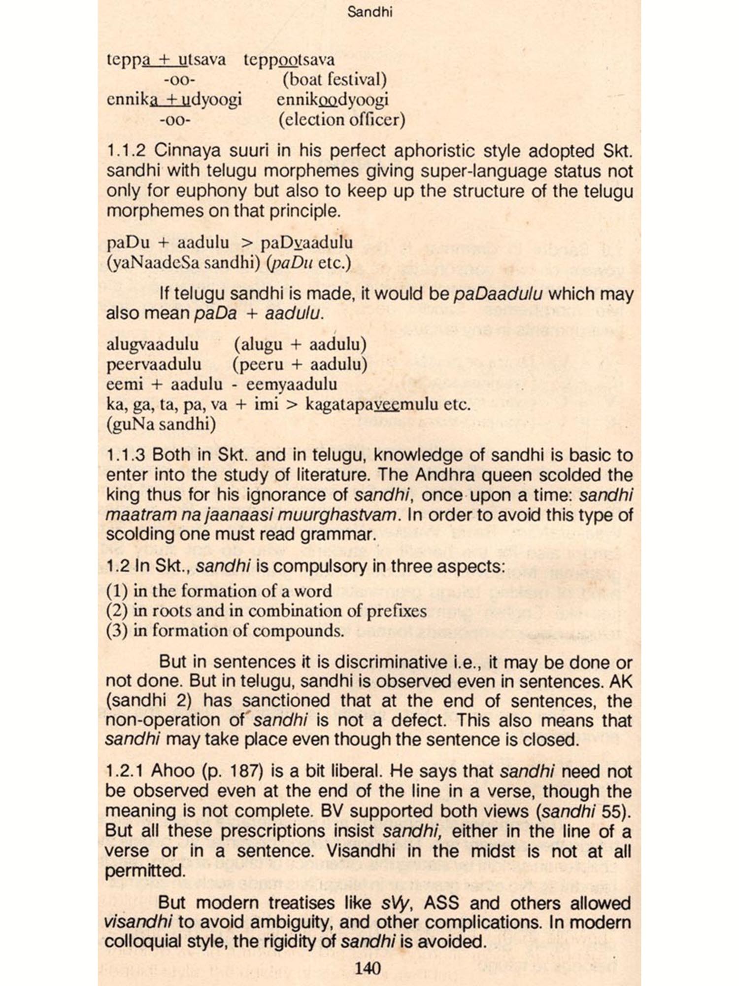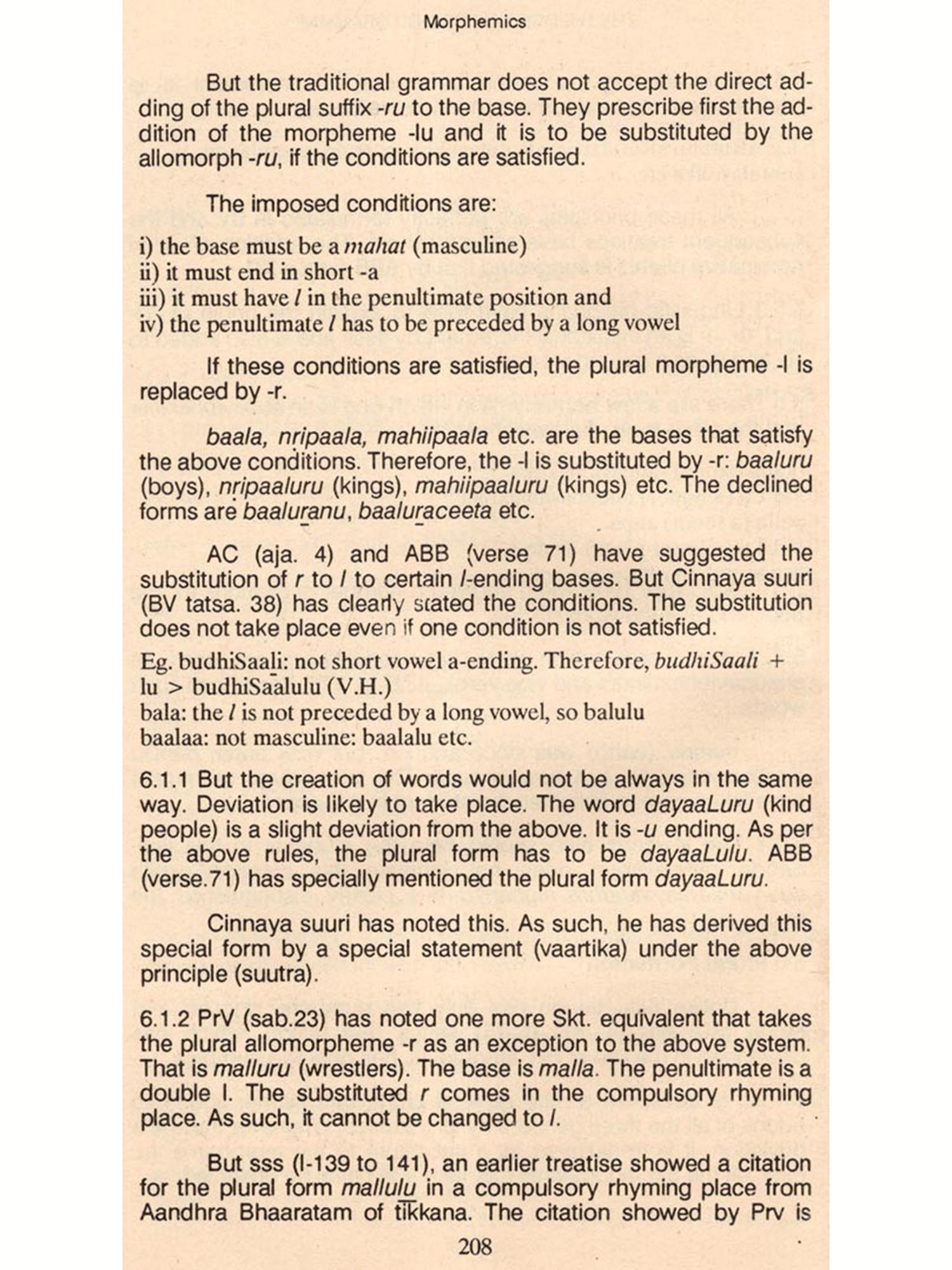 I also thank my young friend Mr. A.Ch. Appala naiDu, the telugu research fellow at ISDL., for his close association with me, when I was there. Finally I convey my kind regards to Prof. V.I. Subramoniam, the beloved son of the Dravidian Muse, and my teacher at summer schools, for giving me this opportunity to renew my studies in grammar and for his deep concern to intensify research in telugu at the ISDL.