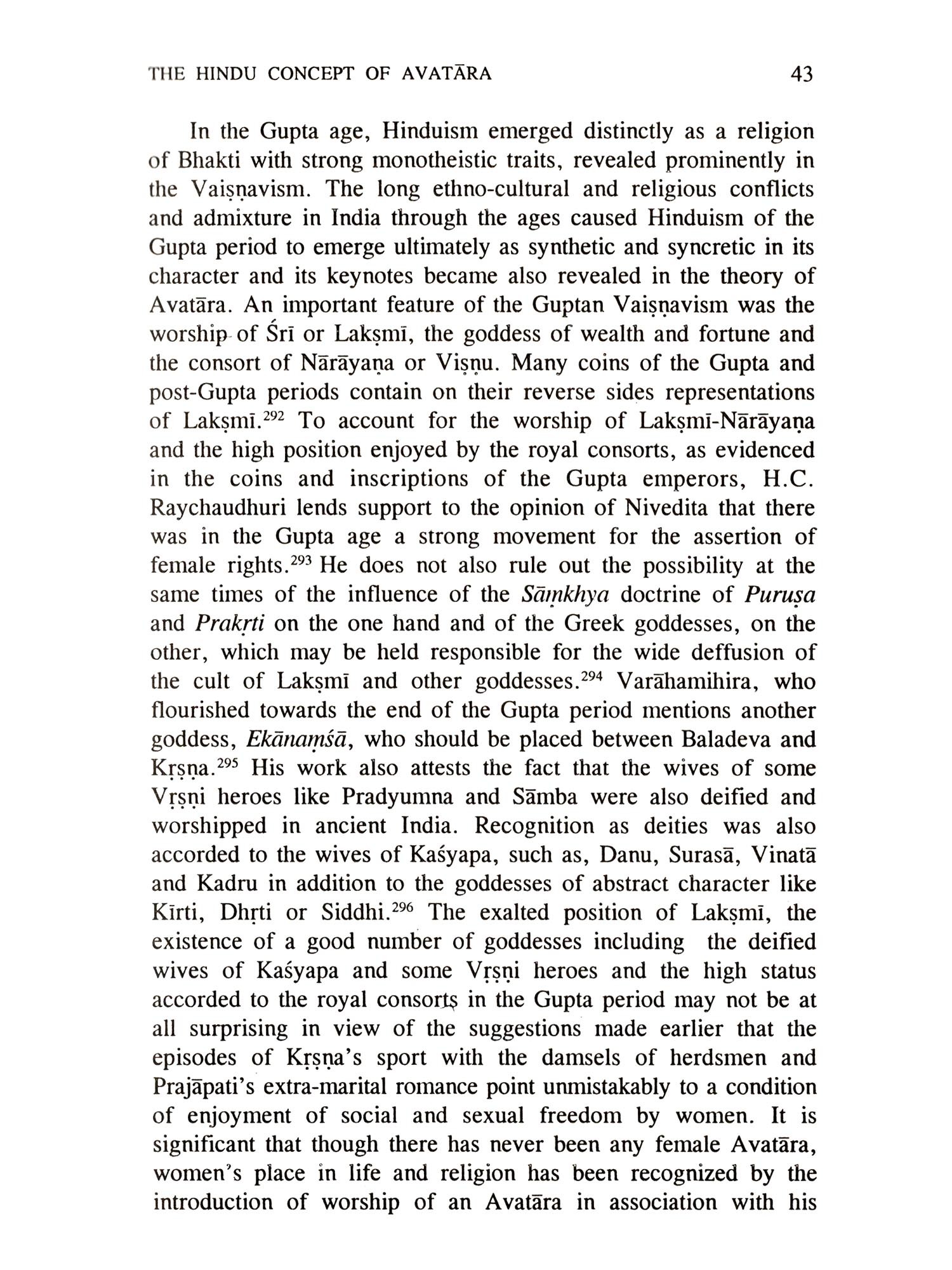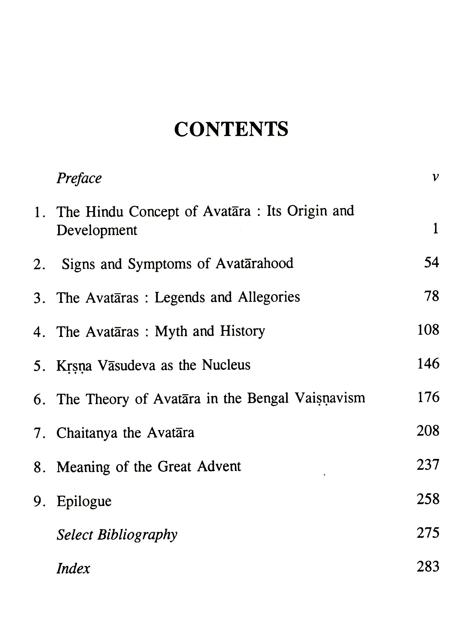 The present book is a comprehensive and comparative study of the origin and development of the concept of Avatara in the theological and biographical literature of India: Vedic, Sanskrit, Pali and Bengali. It seeks to understand the incarnated divinity of Chaitanya (1486-1533) and the socio-religious and psychological factors responsible for his apotheosis during his life-ine. The study also shows how the concept of Avatara, though un-Vedic in origin, has absorbed many Vedic elements of solar myth and natural allegory, has synthesized various elements from the epico-puranic tradition and has ultimately blossomed forth as an eclectic theory in the Bengal school of Vaisnavism. It further shows that both Vaişņavism and the concept of Avatāra owe their origin to Krşņa Vasudeva, the great synthesizer of the Aryan and non-Aryan cultures in ancient India and ascribes the theoretical development of the concept of Avatara in the medieval period to various attempts of interpreting Chaitanya's life and personality. In this study, Avatāravāda does not merely remain to be a theological doctrine, but turns out, on in-depth scrutiny, to be also a method of analysis and interpretation of both history and its maker with stress on synthesis and syncretism. The study dwells upon many relevant topics like relationship between Avatāravāda and Vyūhavāda, psychosomatic symptoms of Avatarahood zoomorphism and mythic elements in the stories of the ten incarnations of Vişnu, historical significance of the episode of Kalki and chronology of the mytho-historic Avataras with the help of the puranic calendar of the four ages.
