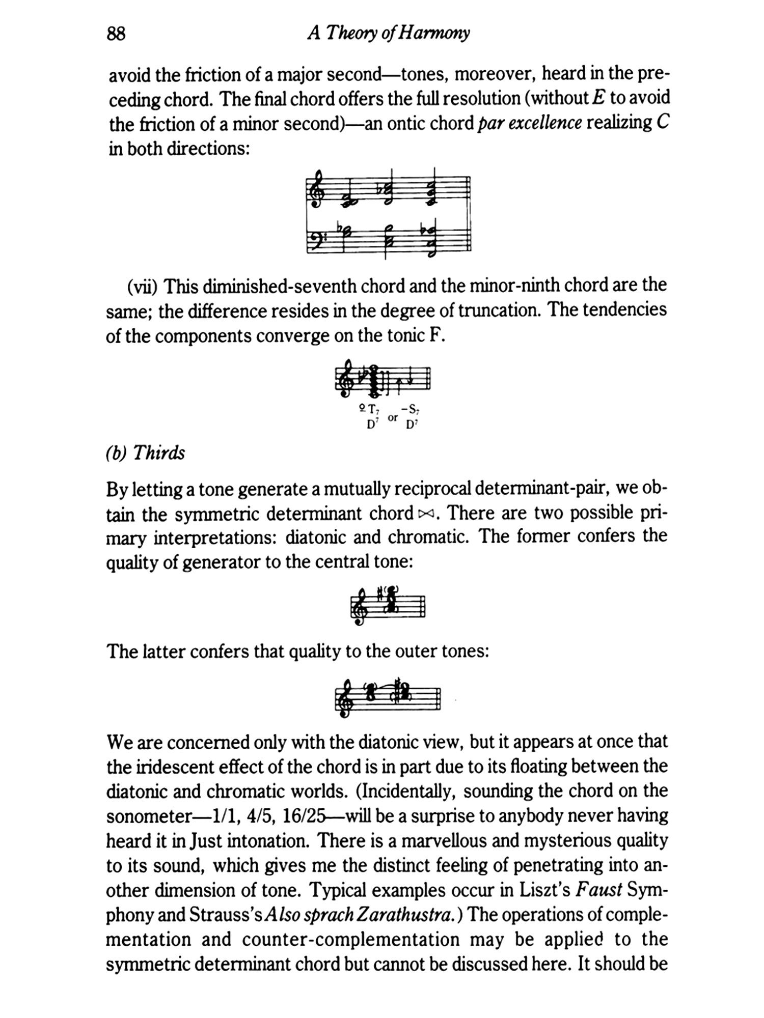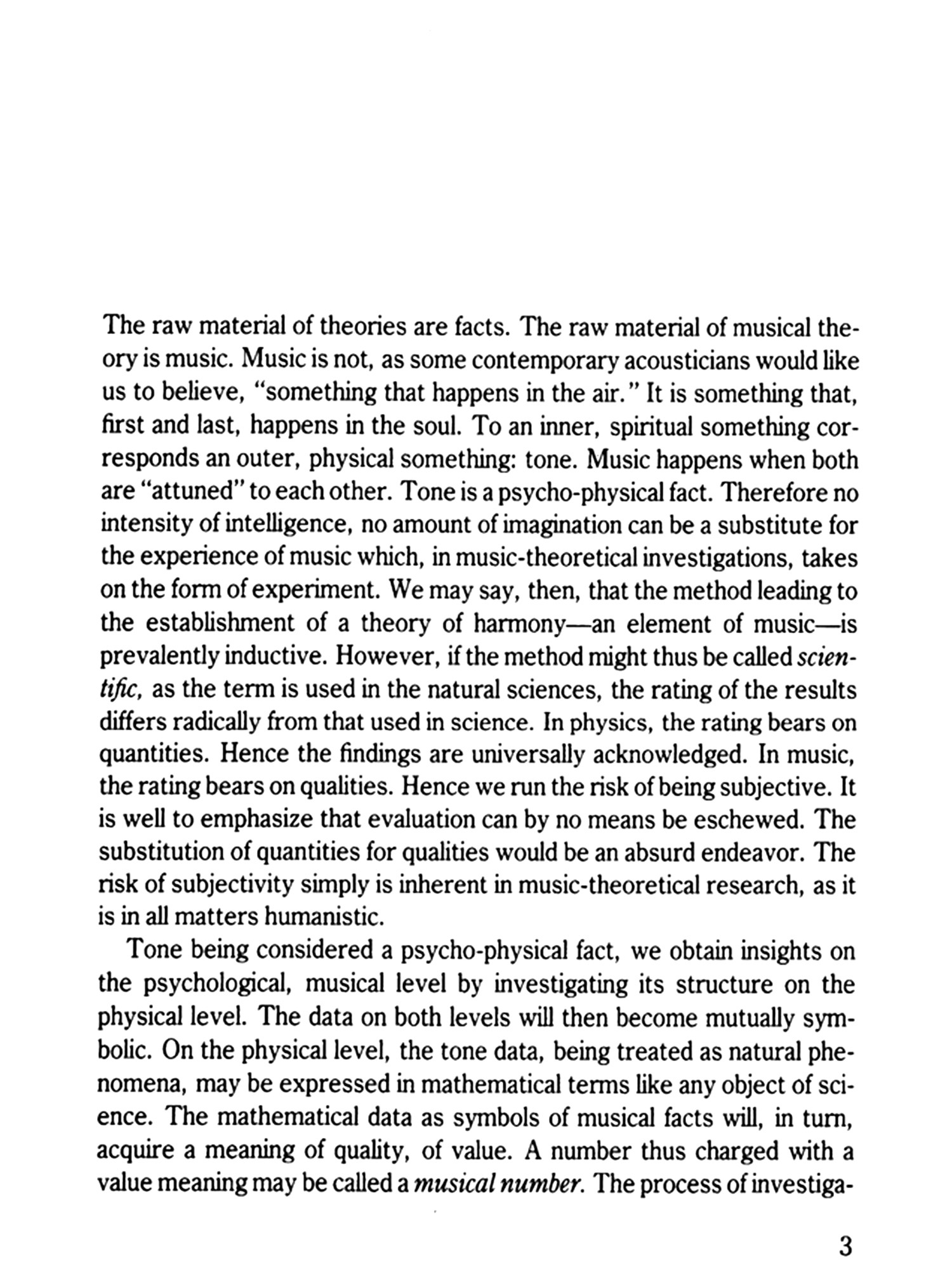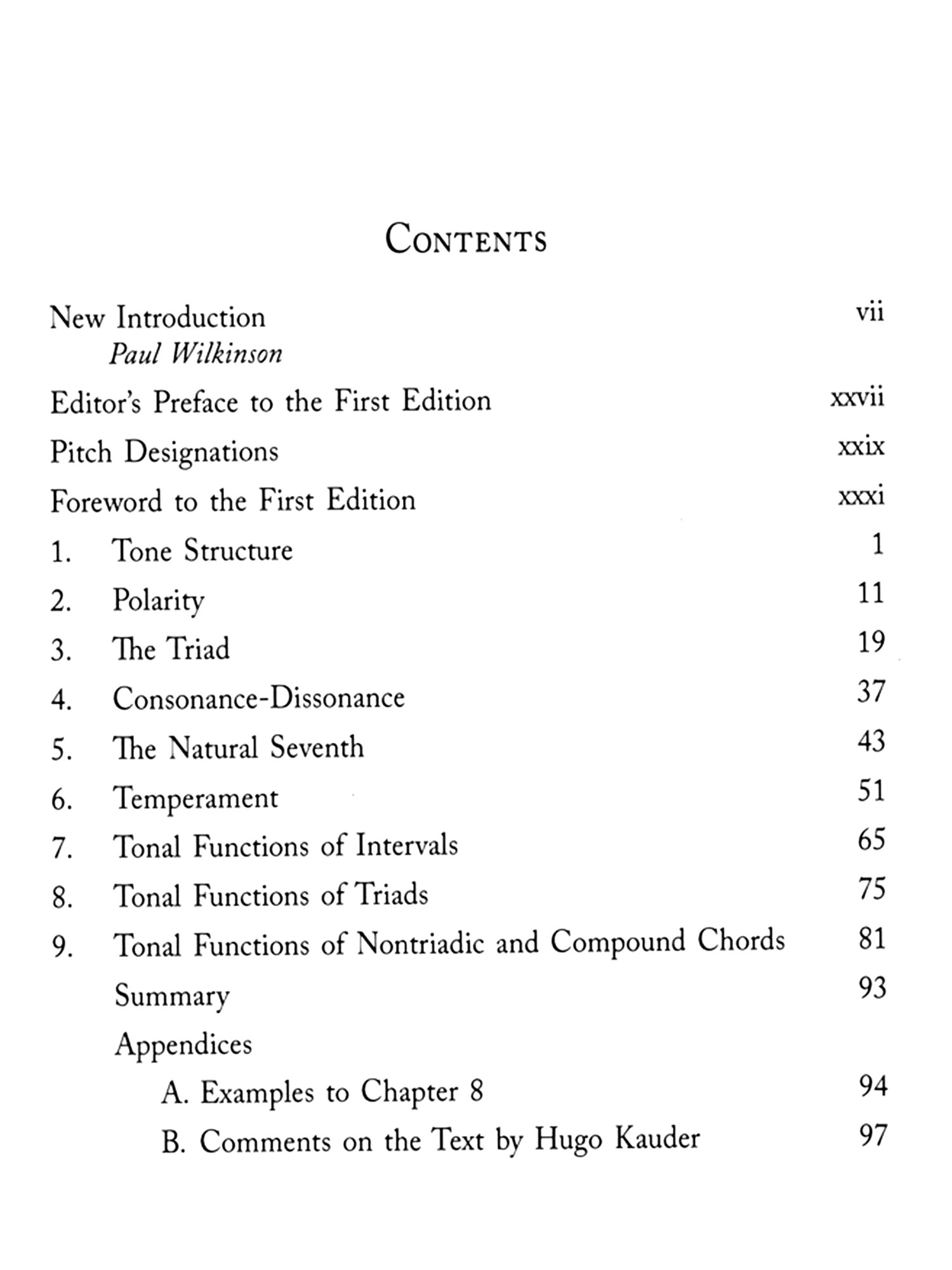 In this essay the author endeavors to present the essentials of a com prehensive, consistent theory of harmony developed from tone structure. The underlying philosophical hypothesis consists in a belief in the psycho-physical reality of tone, whereby the musical fact becomes a symbol of a physical-acoustical fact, and vice versa. It would indeed seem difficult to discover any other basis for a harmonic theory claiming to be universal.