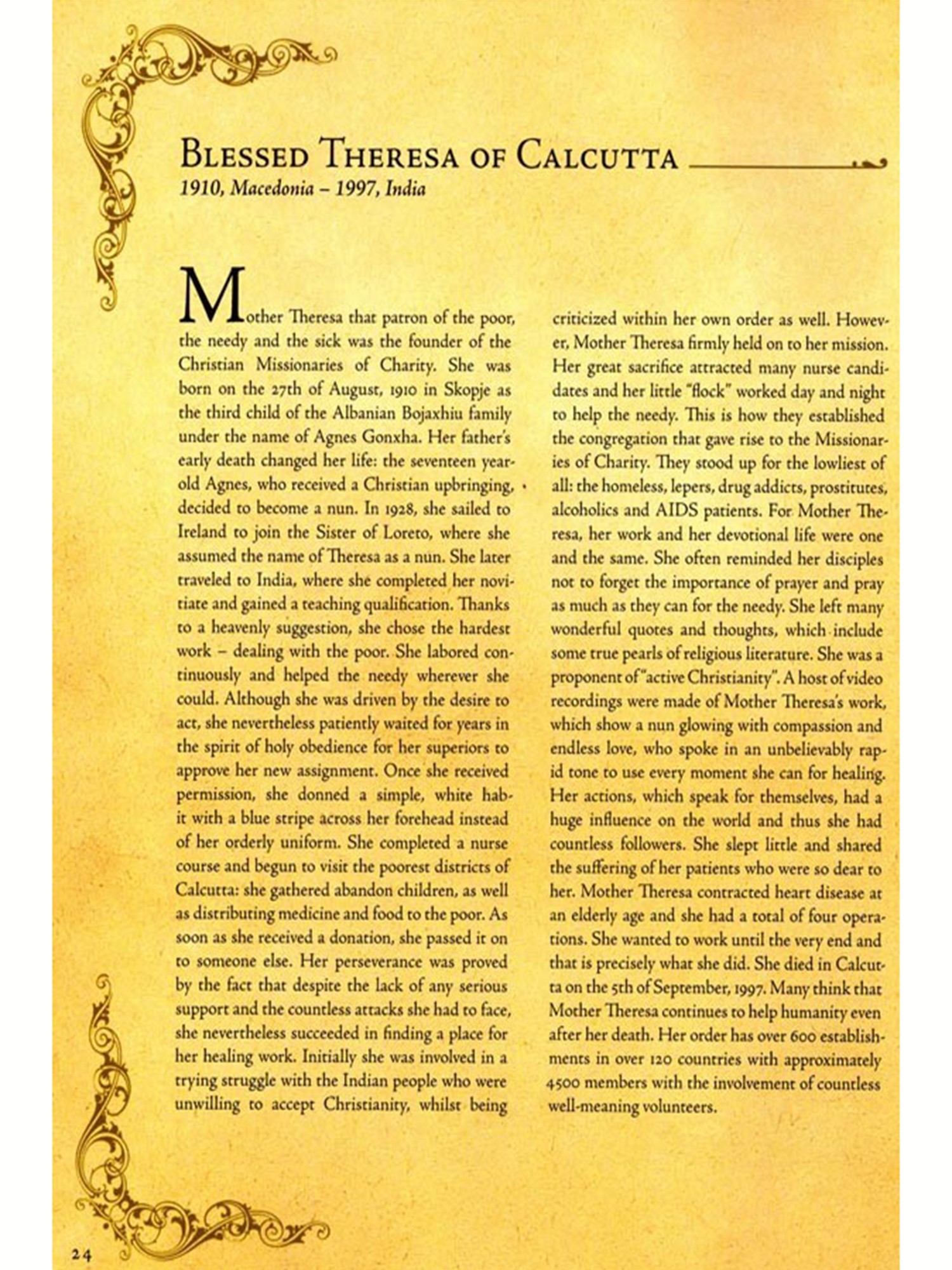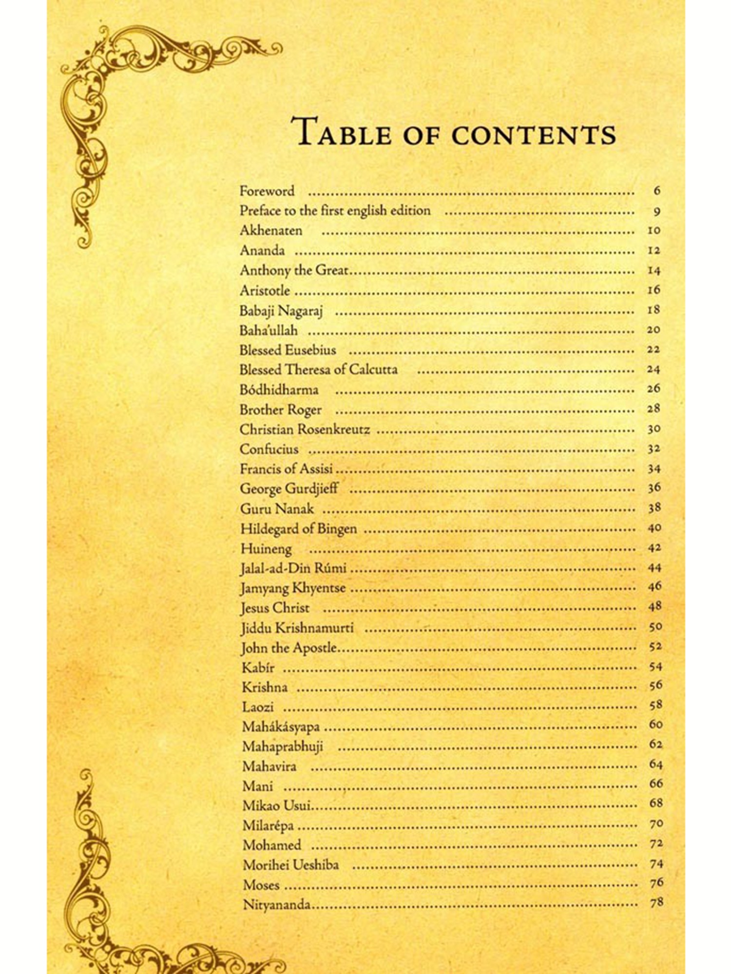 We are delighted to publish this exceptional, much needed and unique book. This illustrated biographical collection was compiled without any religious denominational or other bias, presenting the earthly careers of the founders of religions, spiritual men tors and saints who had a defining influence on the development of spirituality across the globe. The main aim of this multiple volume-long work is to fouter religious tolerance and mutual understand-ing between people of different faiths. We also hope that our book will help every reader to get to know more fully the founders and teachers of other spiritual paths outside their own. Through this col-lecrion we would like to draw attention to the fact that the whole of humanity is one big family. We have the same roots and though everyone follows their own way, all paths meet in the end. Hopeful-ly; while reading this book it will become clear that every saint and founder of faith had the same our look on the most important questions of life. Their teachings are all rooted in their historical, cultural and intellectual backgrounds. first glimpse it might seem that their teachings are of a conflict-ing nature, yet essentially they are in harmony with each other. Considering the work of the many teachers, founders of religions and saints of various callings it also becomes clear that there is no single faith that is improper to pursue. In terms of reli-gion, every human being makes his or her individ-ual choice according to their past, upbringing, and way of thinking. Every single belief system which seeks for God is equally important since their goal is to help achieve Love and Unity. With our book we wish to pass on the message that the saints and spiritual teachers bequeathed to the world: let us