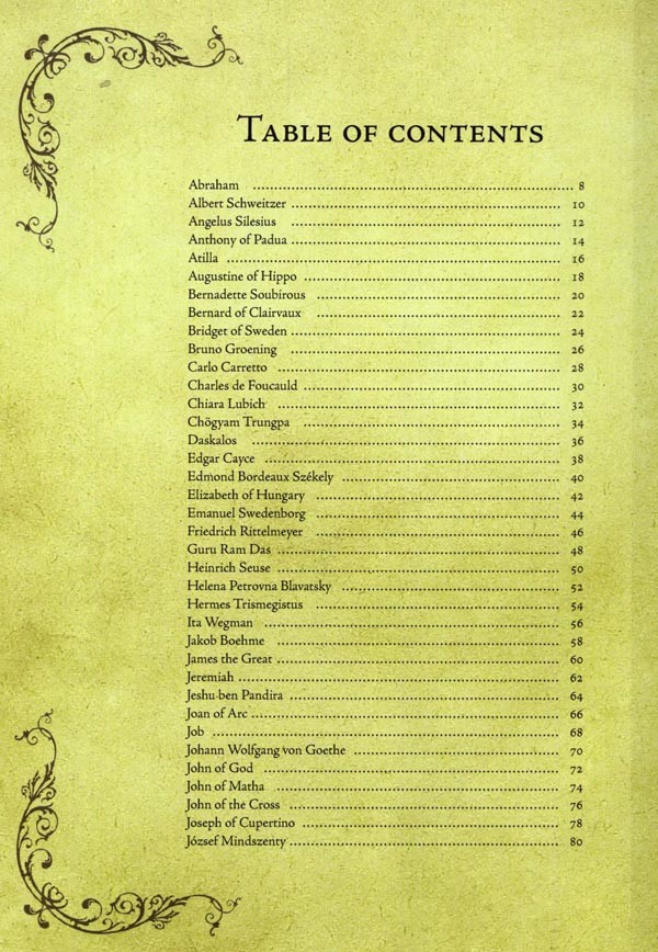 When compiling the list of individuals to be included in the volume, we were unfortunately unable to satisfy everyone's needs. We strive to include the biographies of as many people as possible who made some truly great contribution towards the spirituality of our planet. Still, we would like to take this opportunity - just as we did so in the preface to the first volume to extend our apology to those whose religious founder or favorite saint was not included in the volume. We are open to further suggestions concerning the third volume and will do our best to make up for any shortcoming or omissions.