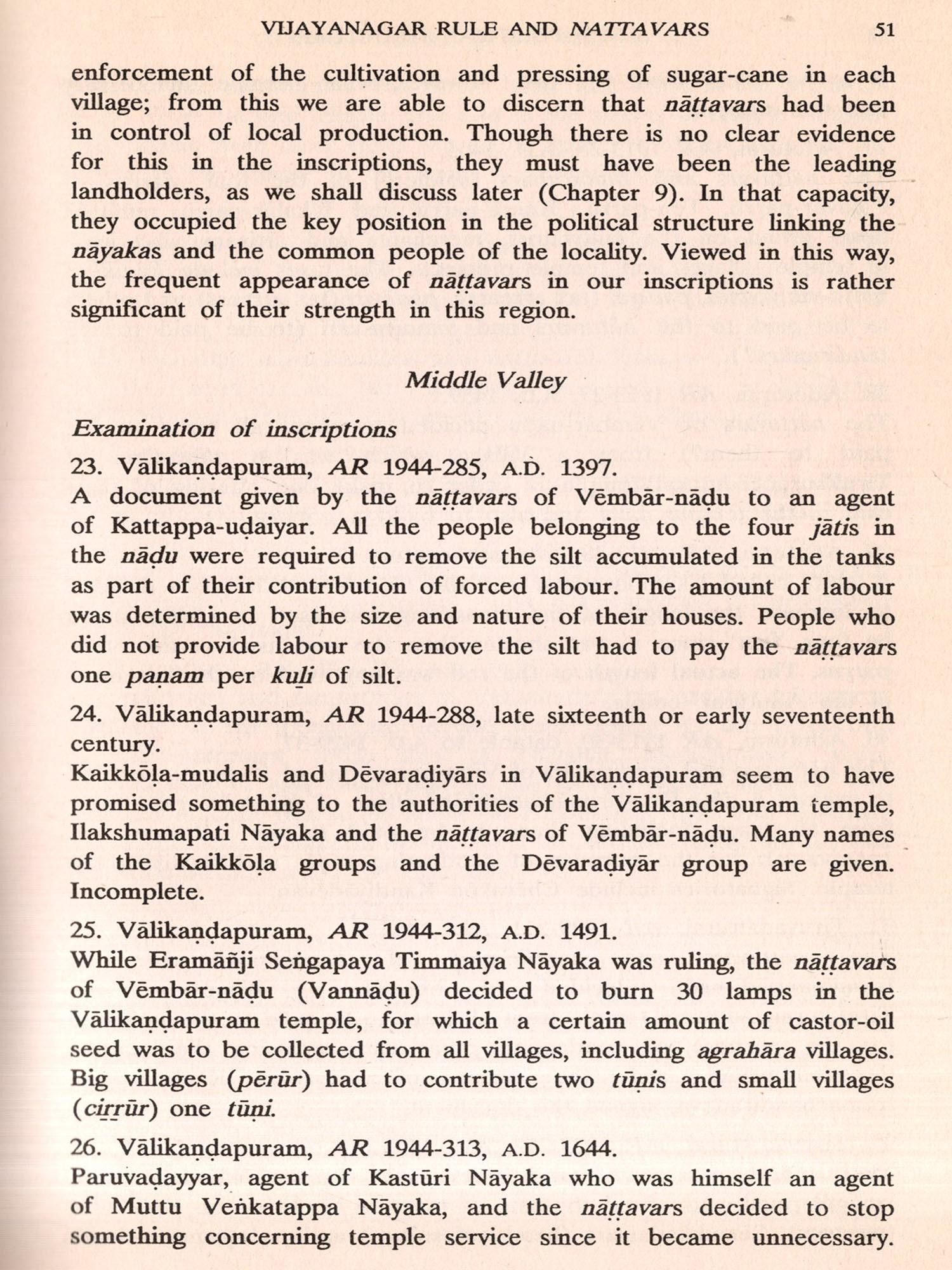 Since then many Vijayanagar inscriptions have been studied for their evidence on the structure of the Vijayanagar empire and the socio-economic conditions of Tamilnadu under Vijayanagar rule. This has enabled me to see more clearly the emergence of a new political and economic setup during the Vijayanagar period, which is quite different from that prevailing during the Chola period.