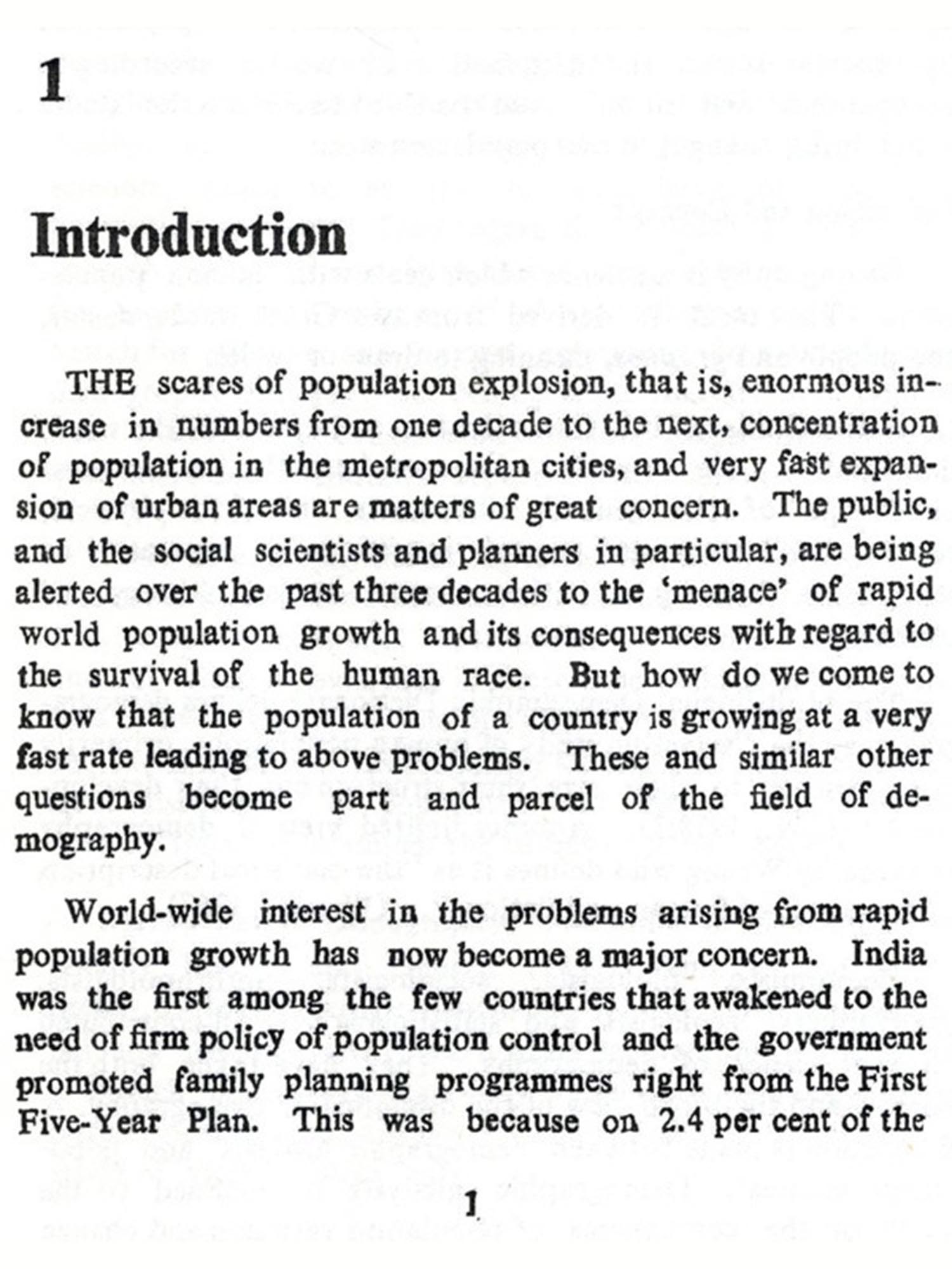 While demography as such is comparatively a new discipline, tribal demography can handily be assessed to have crossed the stage of infancy. One is reminded of Wattal's book Population Problem in India (1934) and his mention of 'Fertility of Animists' (a term used for the tribal societies). "India's Population-Facts and Policy", published in 1946 by Chandra Sekhar, had a couple of pages on aboriginal population. It must be admitted that it was Mamoria who for the first time in 1957 brought out a book exclusively devoted to tribal demography in India.