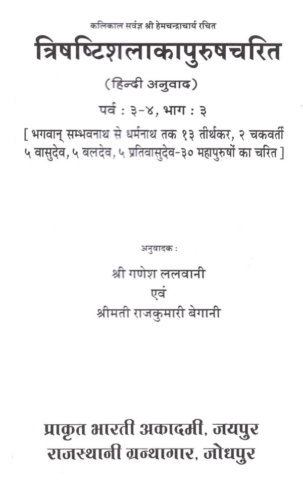 त्रिषष्टिशलाकापुरुषचरित (हिन्दी अनुवाद) पर्व : ३-४, भाग : ३ - Trisastisalakapurusacarita (Hindi Anuvada) Parva: 3–4, Bhaga: 3