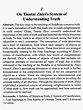 Following Nagarjuna, Zhiyi upholds the theory of two-fold Truth but explicates it as three-fold and points out seven-fold approaches to it. He avers that all these are taught by the Buddha according to different circumstances and intellectual capacities of the people. Very sophisticatedly he further analyses four-fold Truth, three-fold Truth, two-fold Truth, one Truth and No-truth. He gives a very interesting and revealing breakdown of this.