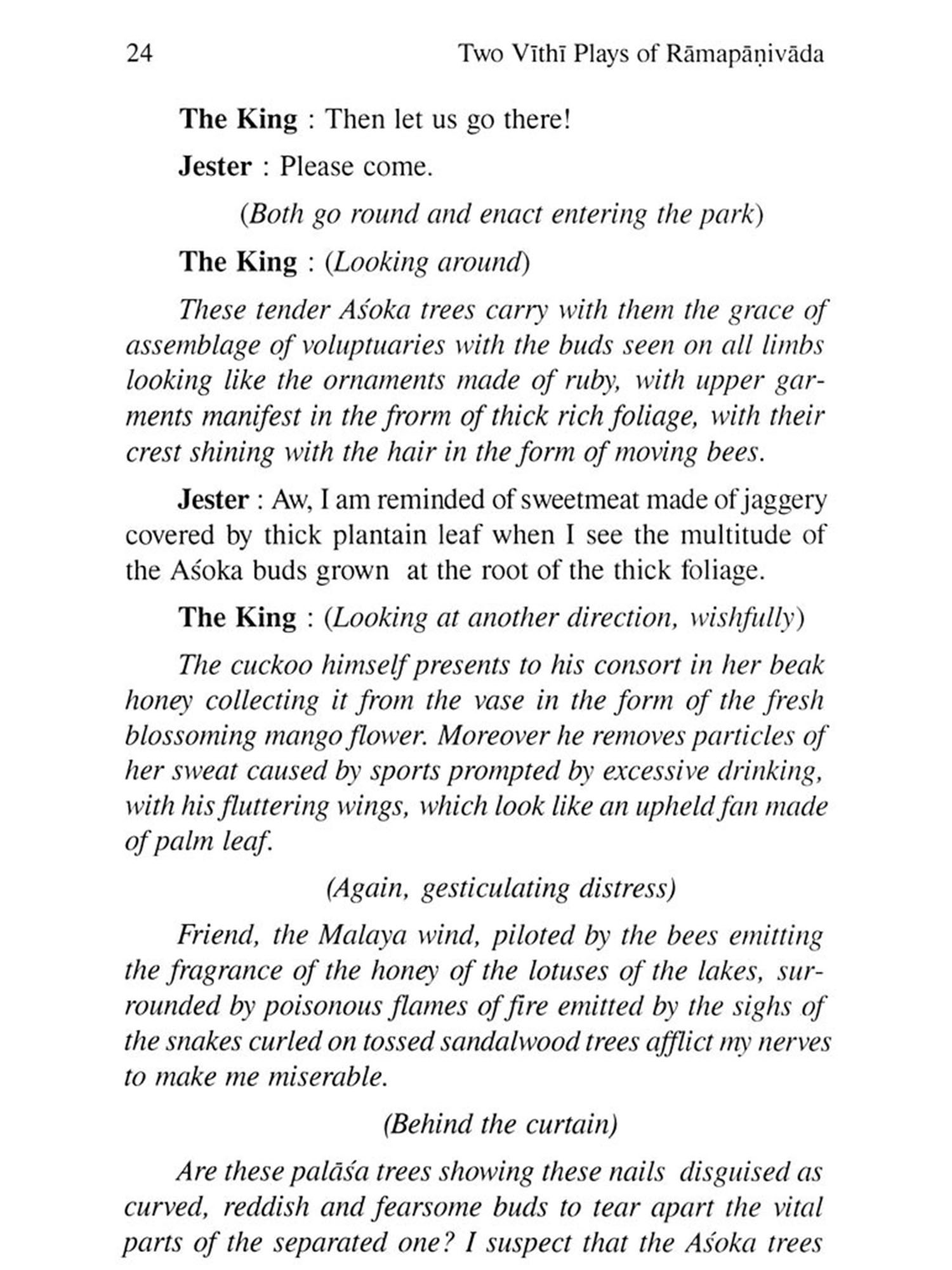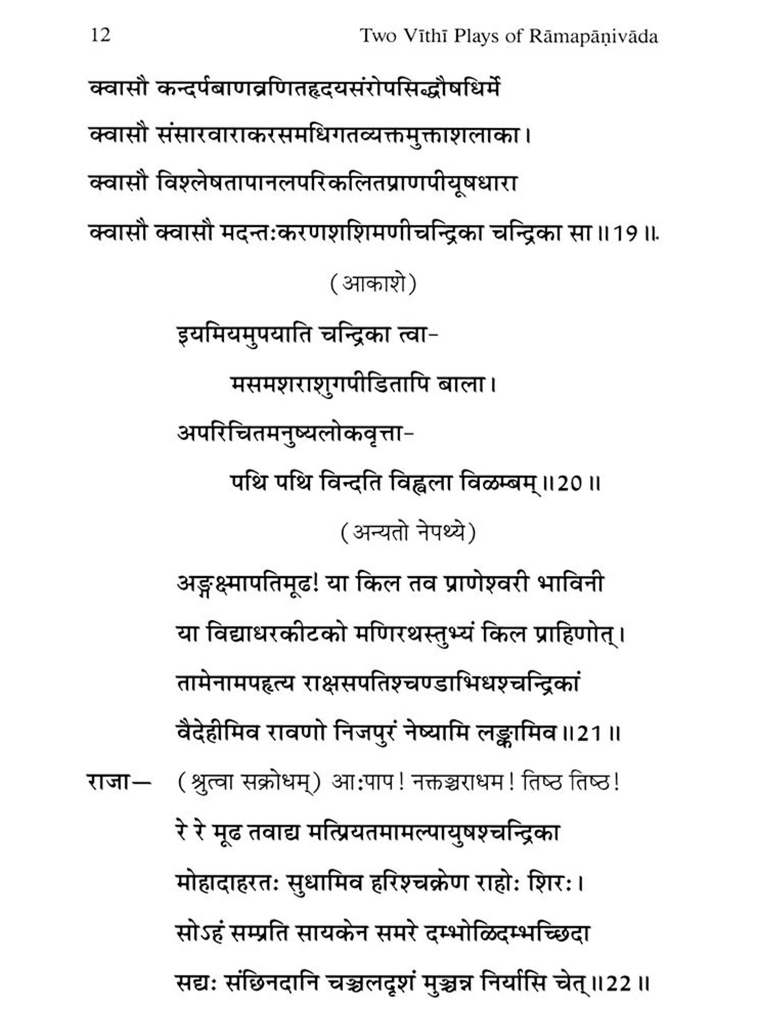 My interest in Ramapanivada, the versatile scholar poet of Kerala was kindled by a symposium held at his birthplace several years back. On that occasion, Panditarajan Kalakkath Govindan Nambair, a great scholar and a scion of the family of Ramapanivada asked me to present a paper on the great author. It was really an honour for me and I readily accepted the invitation. I was very much fascinated by the fact that Ramapanivada, a prolific writer in both Sanskrit and Prakrit had written two plays belonging to the now extinct vithi type of drama. My interest in the plays increased as I learned from Professor A. K. Warder's volume on Indian Kavya literature the possibility of vithi being a street play, though I did not find any evidence supporting this in the plays themselves, which are late examples of the genre. Anyway, I made a presentation on the topic. Later, the paper was published in Vishvesvaranand Indological Journal (Vol. XXVII) under the title "The Vithis of Ramapanivada". The paper was included also in my collection, Sign and Structure, published with the financial assistance of the Govt. of India. Then I had completely forgotten the episode.
