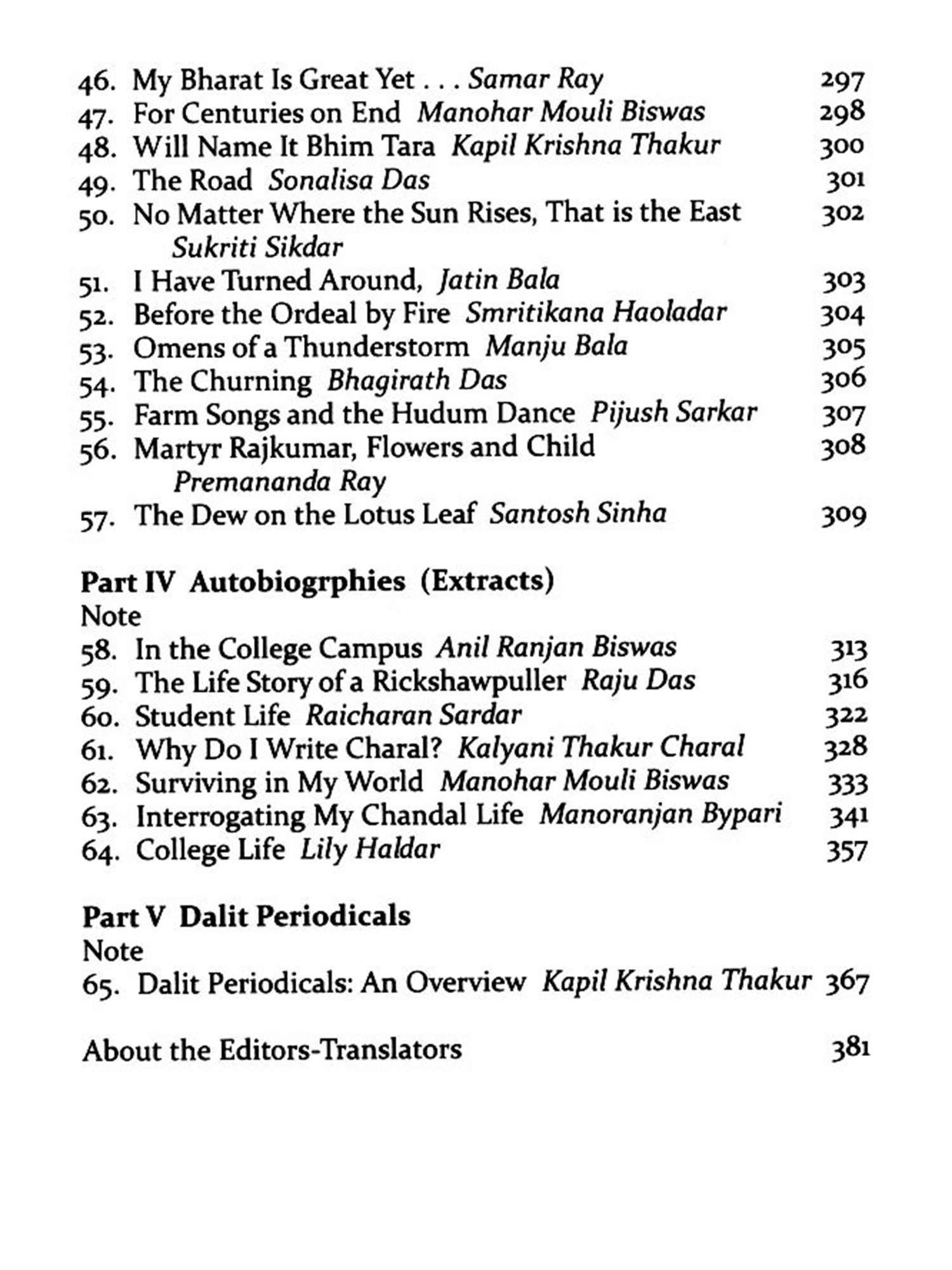 In the late twentieth century, Dalits' writings have been published by small publishers and little magazines, ushering a new vibrancy in Bangla literature. This anthology presents translations of a selection of essays, songs, poetry, short stories, extracts from autobiographies and novels as an introduction to a spirited and dynamic literature from Bengal.