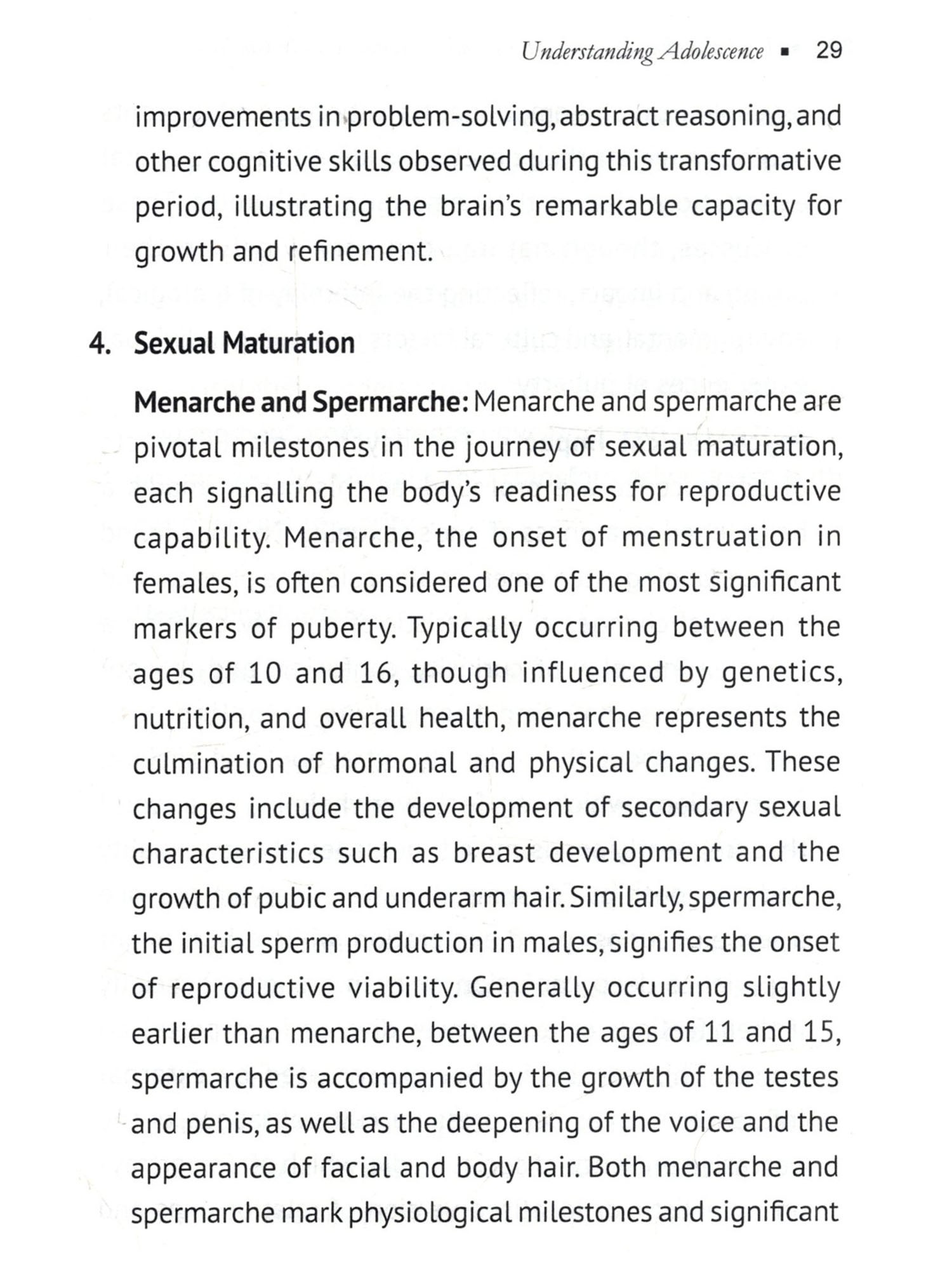 Definition and Scope of Adolescence Adolescence is a pivotal phase in human development, characterised by rapid physical, cognitive, and emotional transformations. According to the World Health Organization (WHO), adolescence spans the age range of 10 to 19 years, bridging the transition from childhood to adulthood. The onset of puberty marks this period, characterised by the development of secondary sexual characteristics and the gradual acquisition of social and personal responsibilities. The scope of adolescence extends beyond mere physical growth. It encompasses cognitive advancements, such as abstract thinking and critical reasoning, as well as emotional maturation, where individuals learn to regulate their feelings and develop a sense of self-identity. Sociologically, adolescence involves the formation of interpersonal relationships, adaptation to societal norms, and preparation for adult roles, including employment, civic participation, and family life. In different cultural contexts, adolescence can vary significantly in its definition and experience. While some societies recognise adolescence as a distinct and prolonged stage of life, others consider it a brief transition, placing a greater emphasis on early assumption of adult responsibilities. This variability highlights the importance of understanding adolescence as a multifaceted phenomenon influenced by biological, psychological, and sociocultural factors.