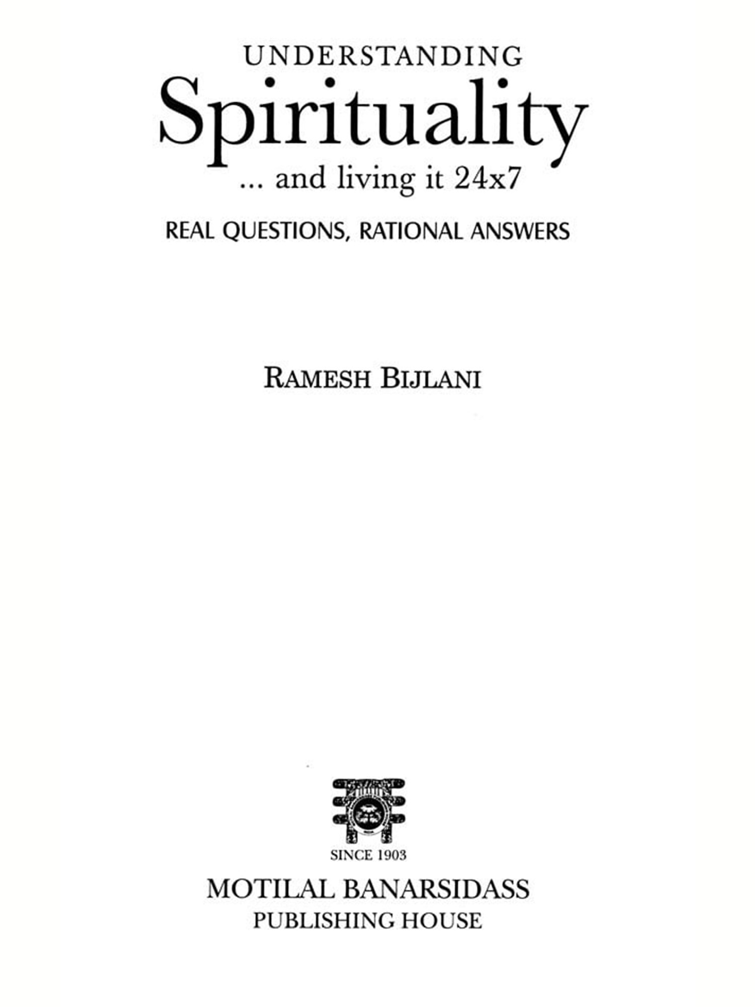 Understanding Spirituality... and Living It 24x7 Real Questions, Rational Answers is a lucid, reader-friendly straightforward account of a subject that is often made very abstract and philosophical.