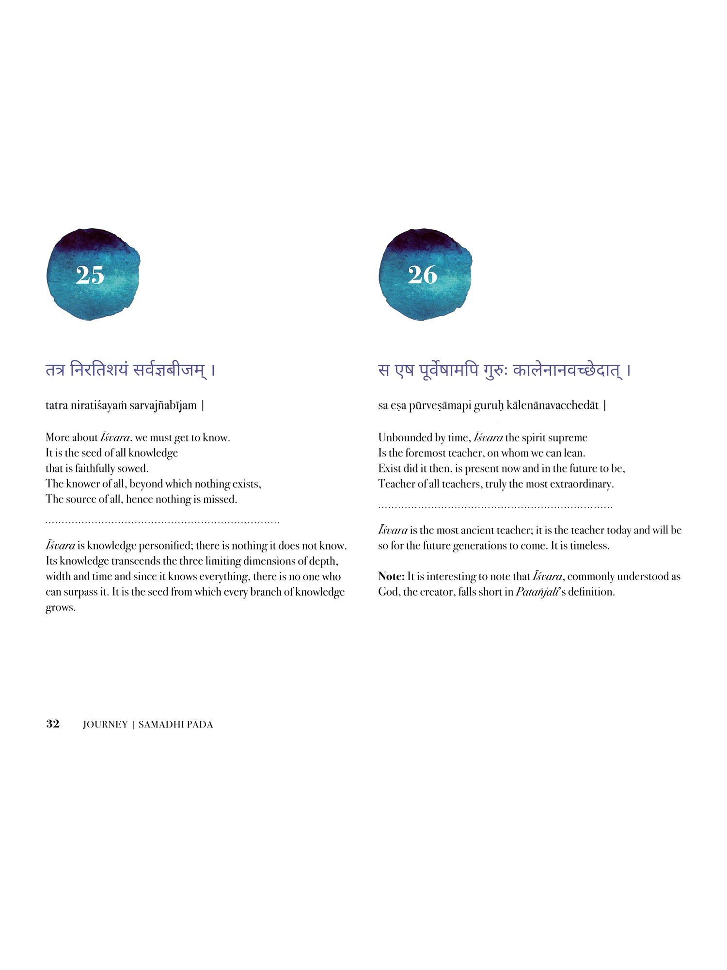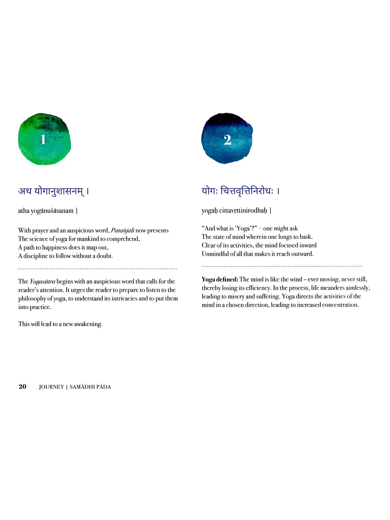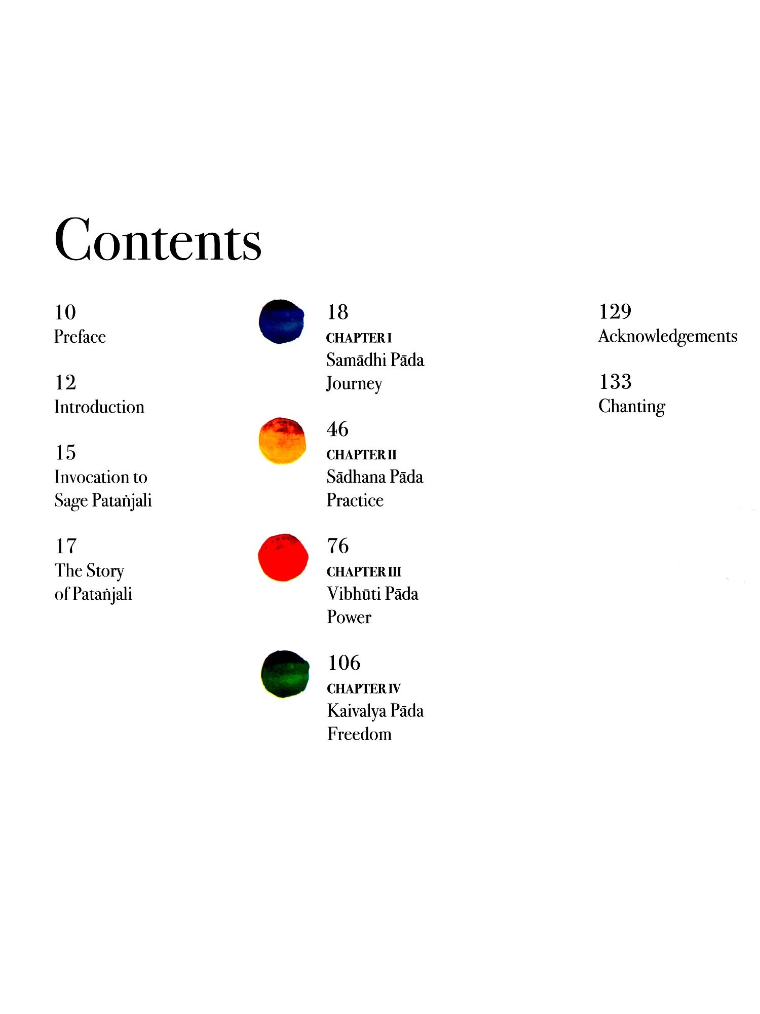 He sums up all that Patanjali's Astanga path leads to and stands for. Drawing inspiration from natures elements, the very source of our being and of our world we have chosen to meaningfully unfold the chapters with their colours Blue for the vast ocean of the mind Yellow and Red, the colours of fire for energy to practice and the power gained, Green for the freedom to return to nature and our own natural selves.
