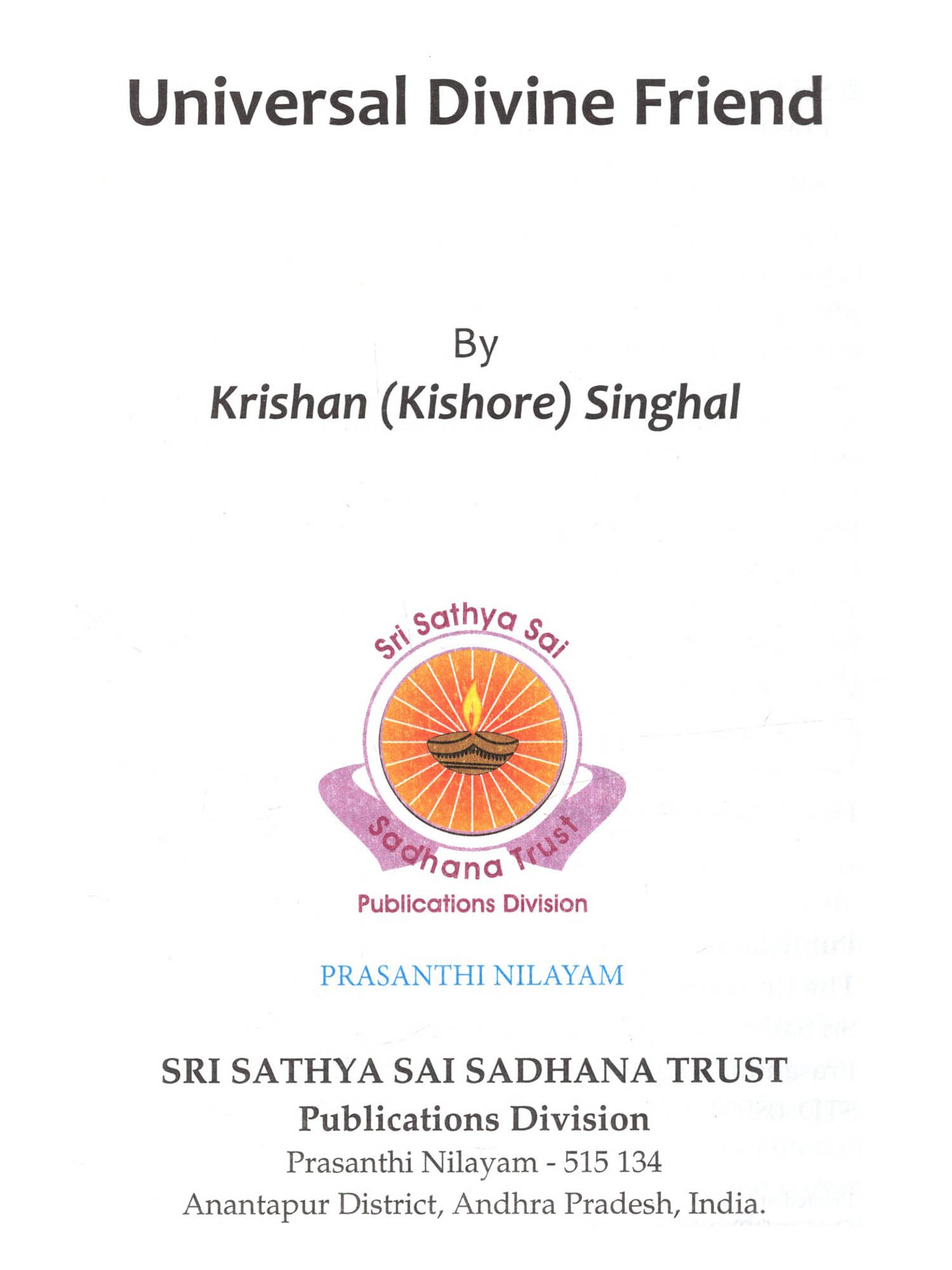 The author Sri Krishan (Kishore) Singhal, B. Com (hon), LL.B., C.P.A., was born in a highly religious middle class family that had faith in Lord Hanuman, and undertook fasting on Tuesdays. At the early age of 4 years, he lost his mother, who left behind five children. His father remarried and had three more children. After studying in a Gurukul School, he joined the famous Shri Ram College of Commerce in Delhi, and later completed Bachelor of Laws from the University of Delhi. Later, he moved to Canada where he got his professional accounting degree, and worked for the Canadian Federal Government. After a few years, he started his own business, which has now grown into a very prominent real estate company in Ottawa, the success of which he owes to the grace of Bhagawan Sri Sathya Sai Baba.