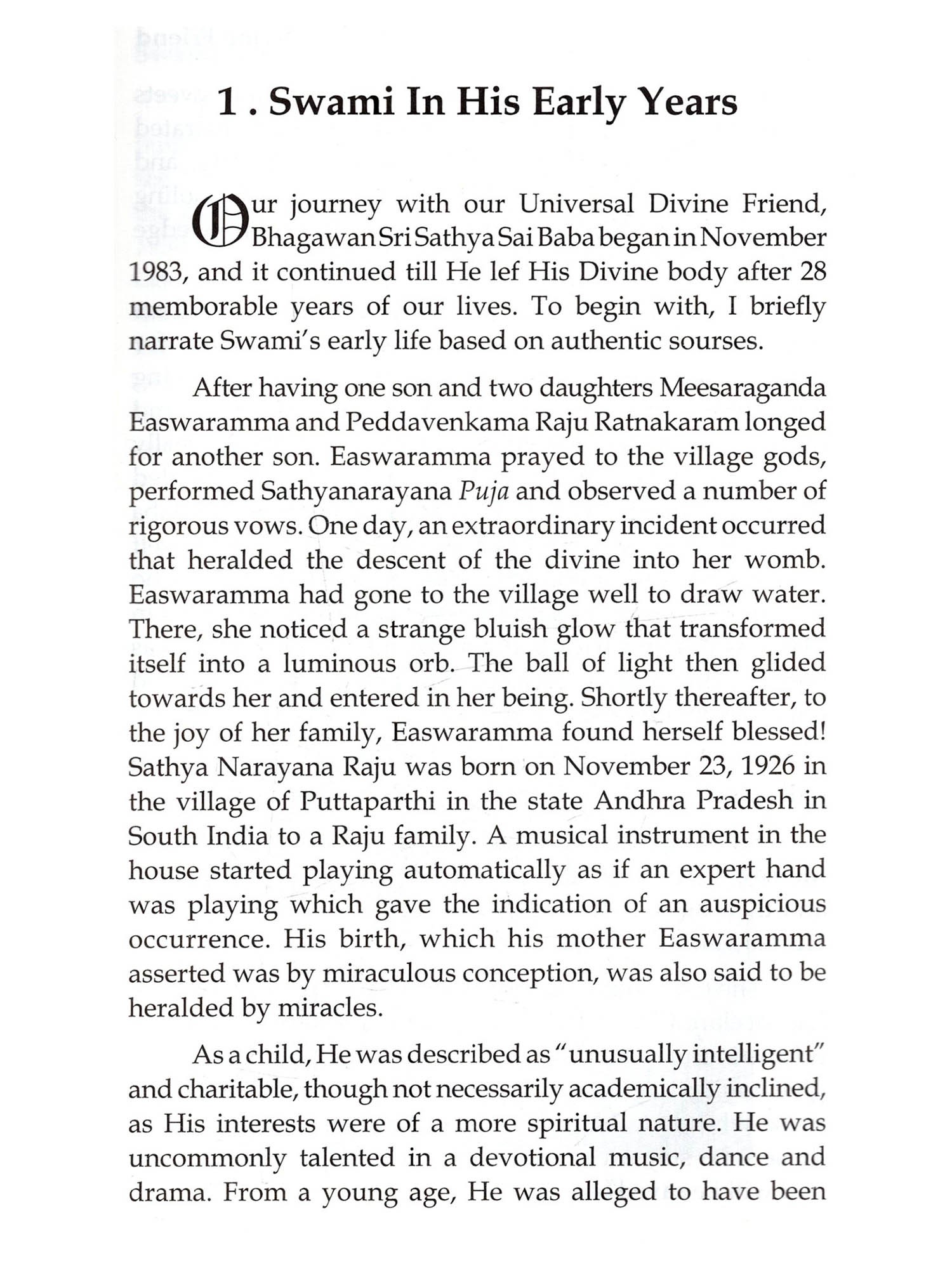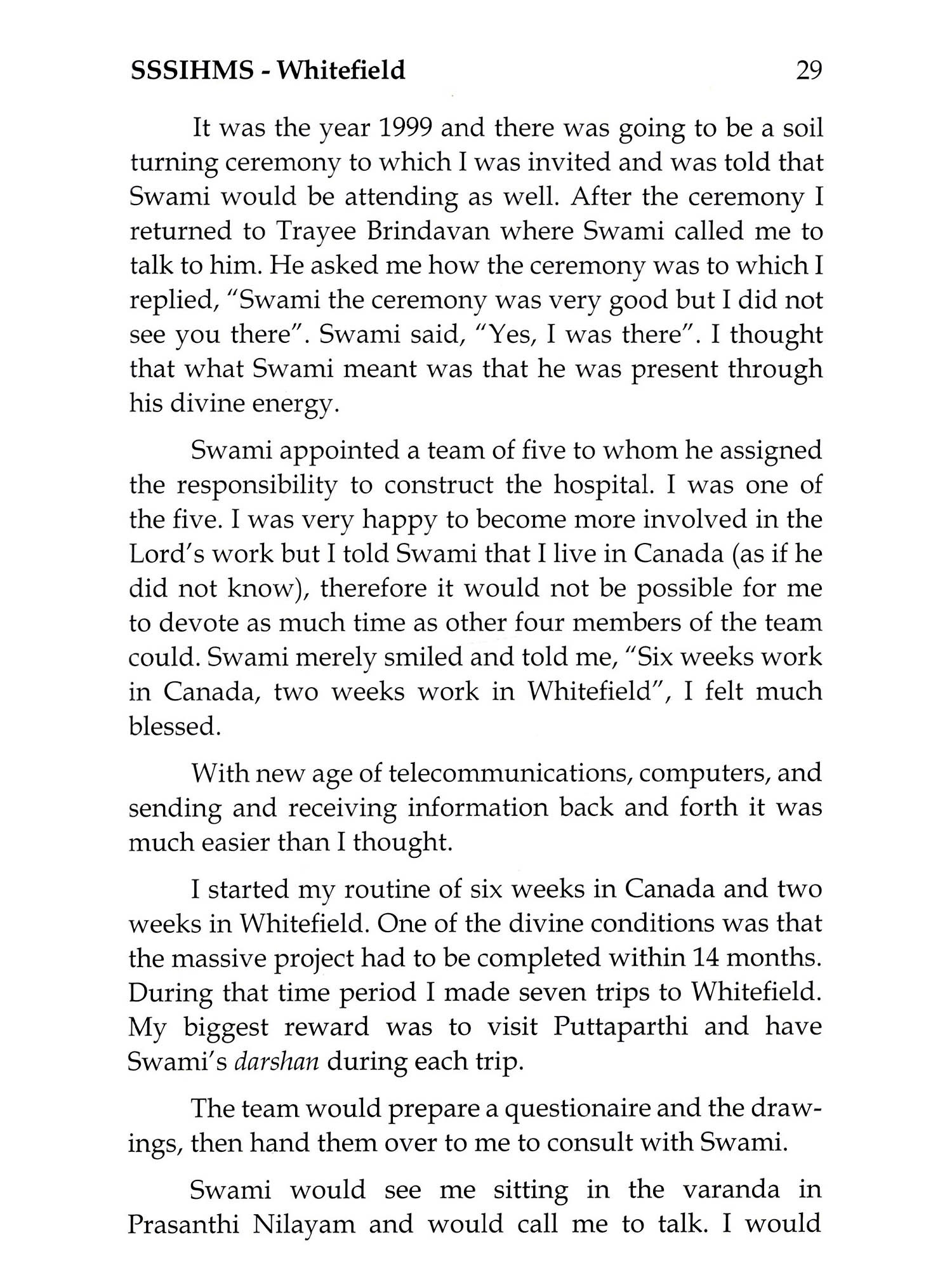 The teachings of Bhagawan Sri Sathya Sai Baba are timeless and universal. His life and messages have inspired millions of people throughout the world to lead more purposeful and moral lives. This book is an autobiographical account of a devotee who shares his personal stories with Bhagawan spanning more than 35 years, ranging from his transformational first experience with Swami to his cherished interviews, visions and dreams. The author recounts the many journeys made to see Swami along with detailed descriptions of his numerous meetings and beautiful darshans. He shares the way Swami has touched his life such as his good fortune of being able to fulfil his dream to build a Sai Temple for devotees in Ottawa, Canada. Beautiful photographs accompany many of the author's moving personal stories.