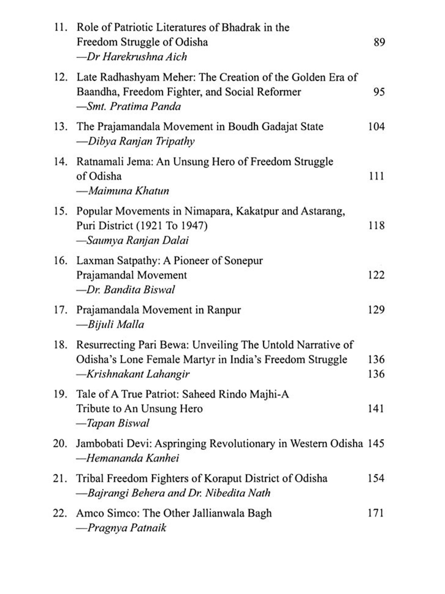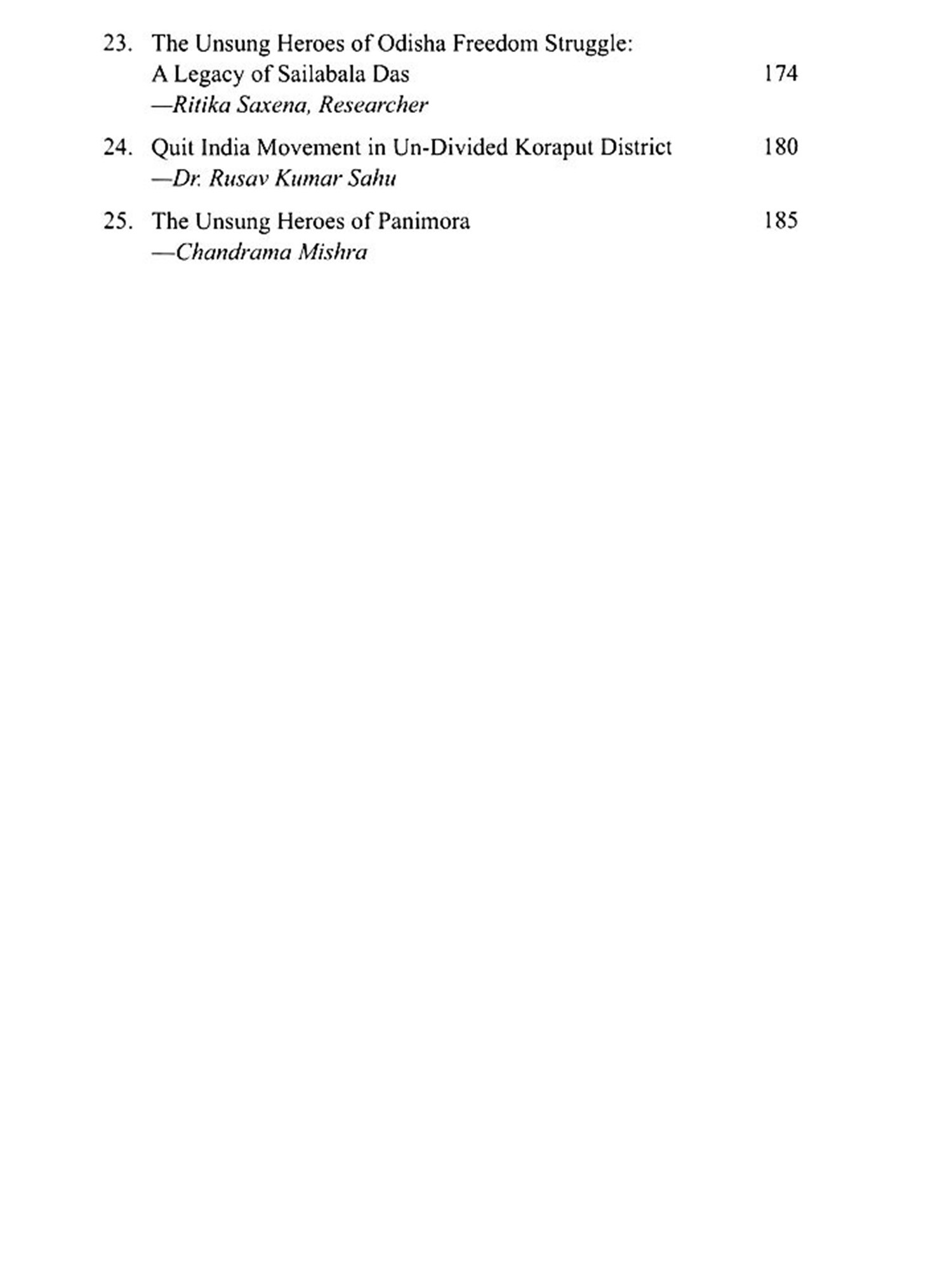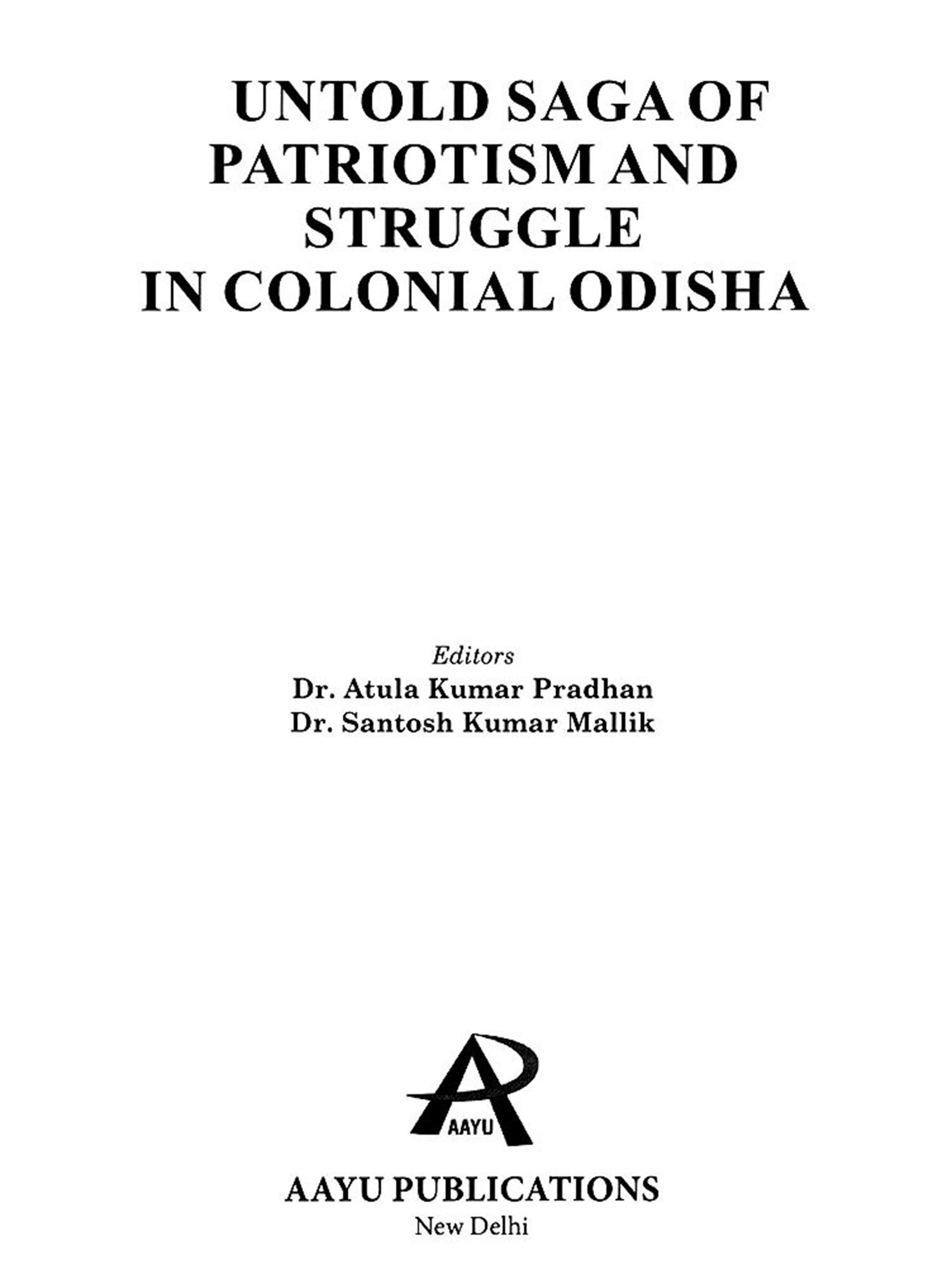This edited book entitled Untold Saga of Patriotism and Struggle in Colonial Odisha aims at providing latest research on unsung facts of freedom movements of Odisha. This book contains twenty-five selected papers of eminent scholars. This book will benefit to the research scholars, students, teachers and general public which will enhance their research and studies. For the general readers, who are not familiar with this subject, this book will, no doubt, provide an idea about the freedom movement of Odisha.