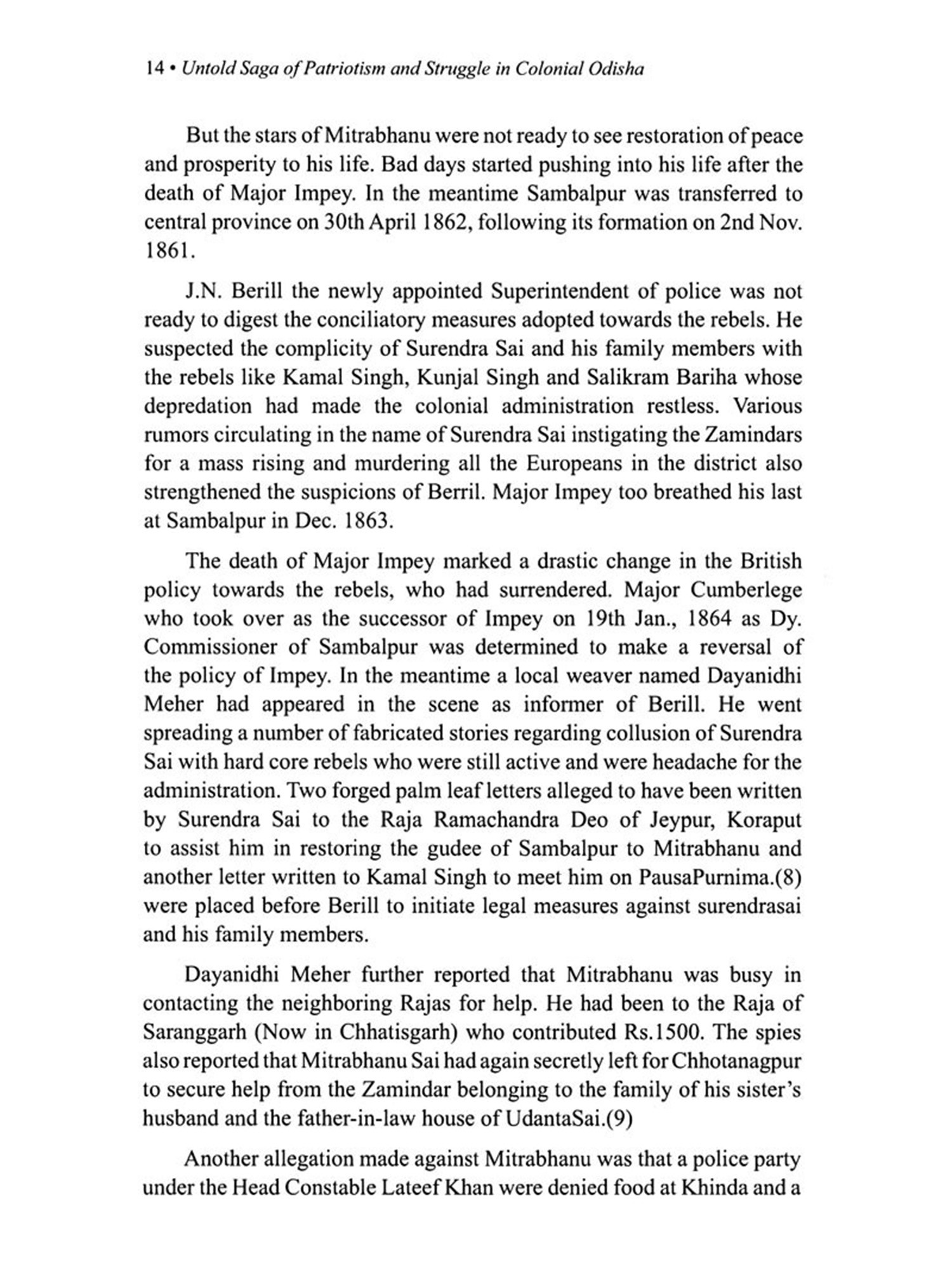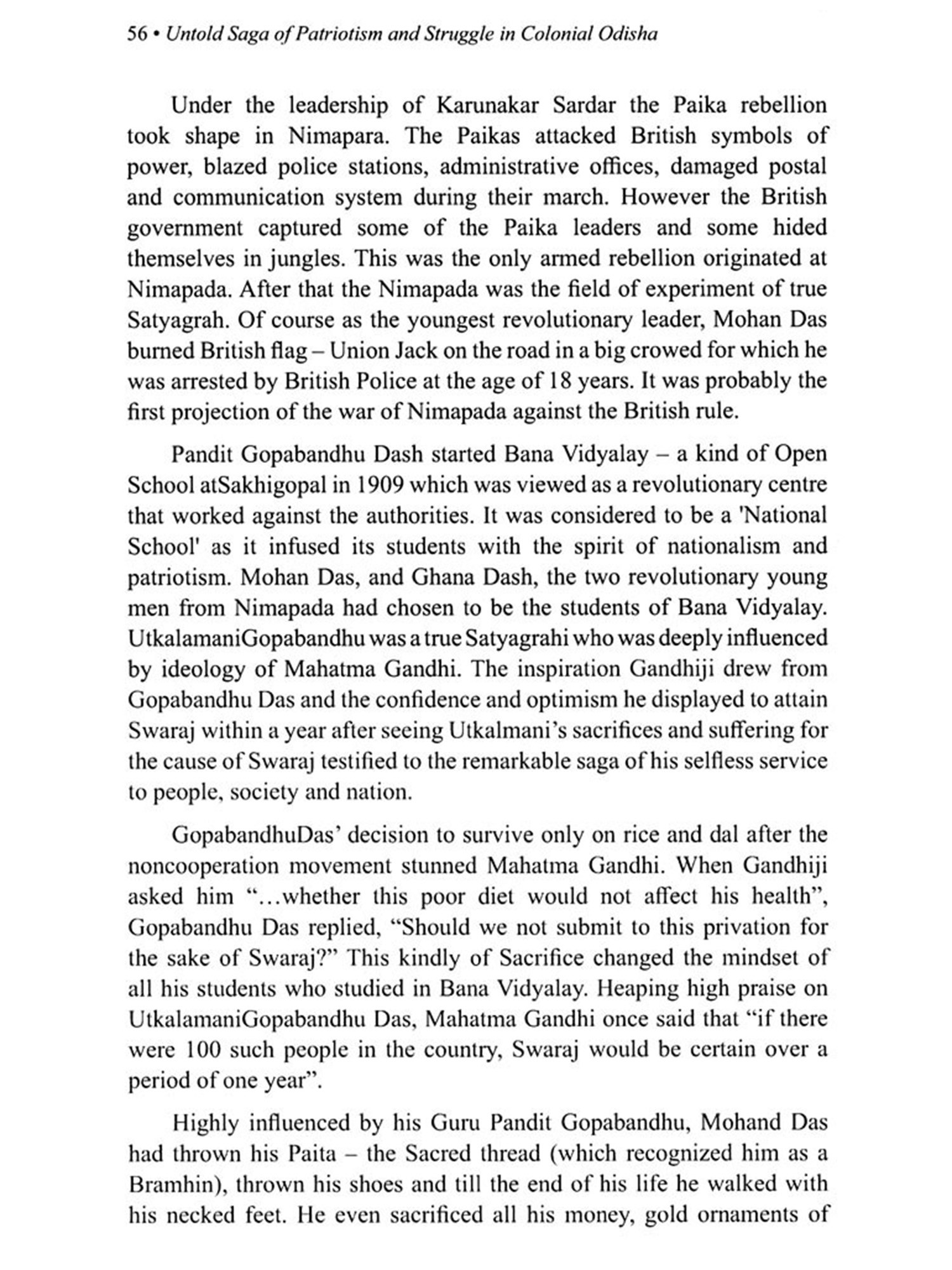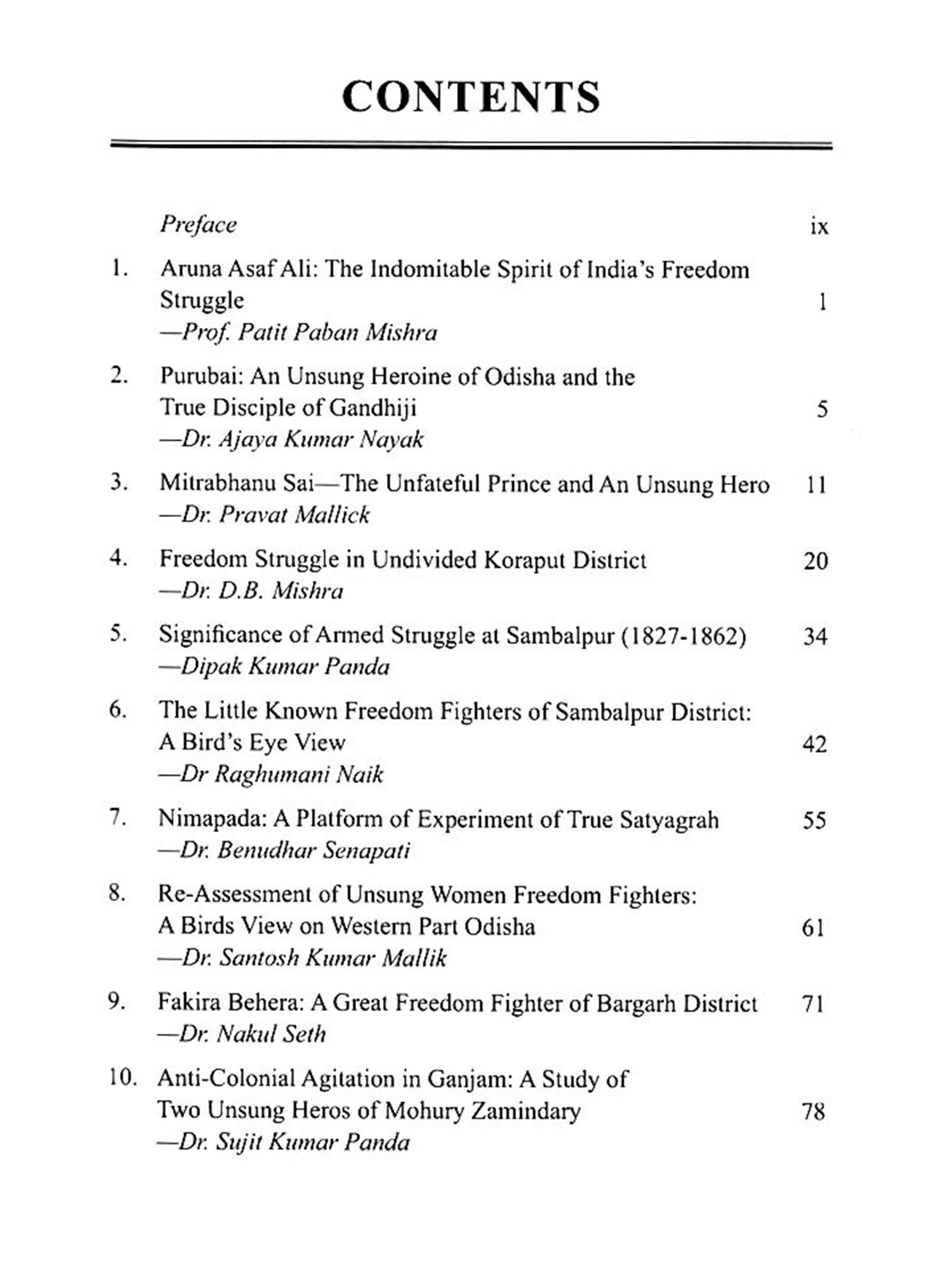 This edited book entitled Untold Saga of Patriotism and Struggle in Colonial Odisha aims at providing latest research on unsung facts of freedom movements of Odisha. This book contains twenty-five selected papers of eminent scholars. This book will benefit to the research scholars, students, teachers and general public which will enhance their research and studies. For the general readers, who are not familiar with this subject, this book will, no doubt, provide an idea about the freedom movement of Odisha.