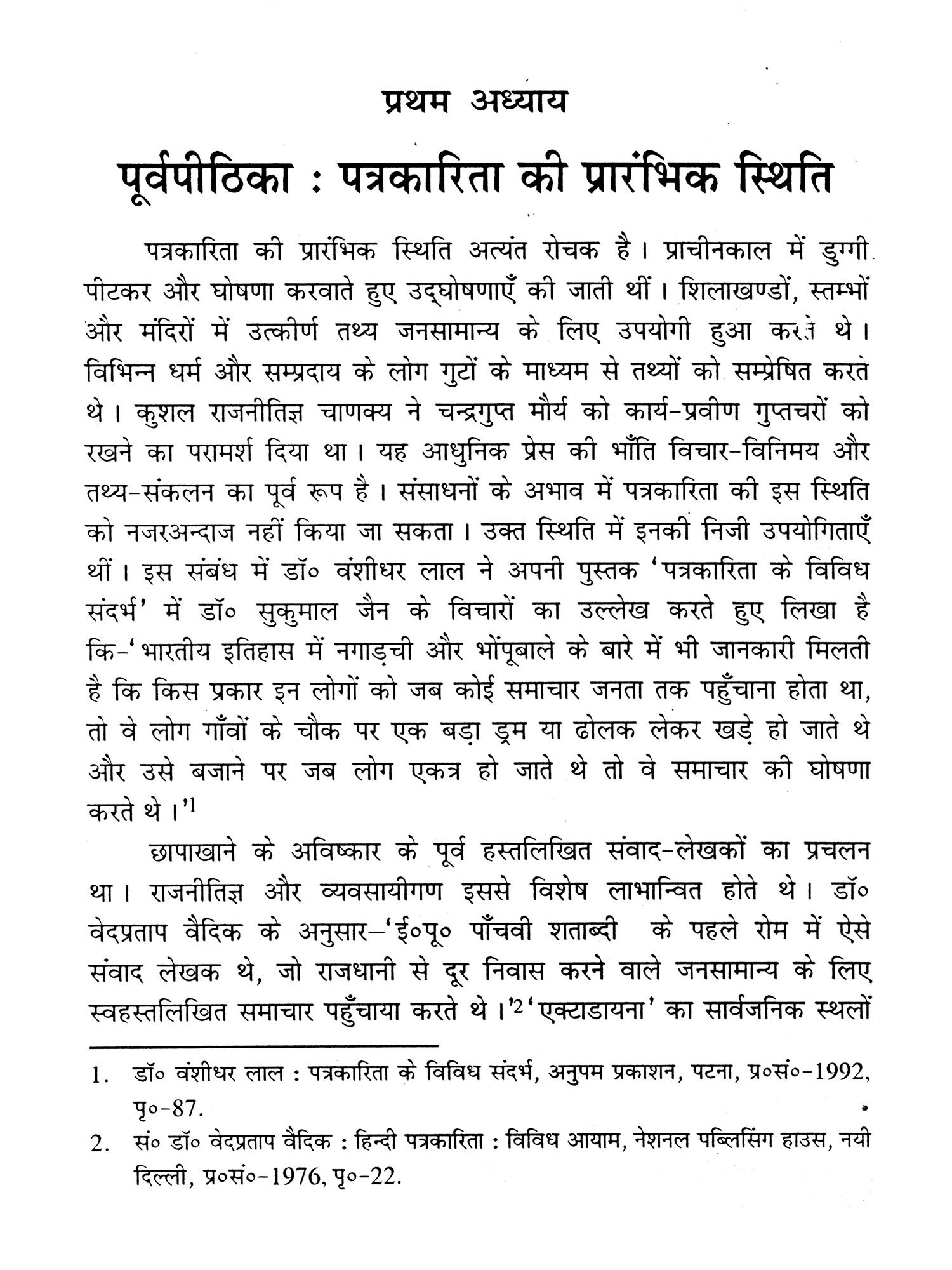 अष्टम अध्याय आलोचनात्मक निष्कर्ष के आधार पर अपनाये गये सार तत्त्वों का संकेत है। जिसमें 'पत्रकारिता की सीमाओं' को दर्शाने का प्रयत्न लक्षित है । इस सीमा निर्धारण में मैंने ऐतिहासिक दृष्टि का उपयोग किया है।