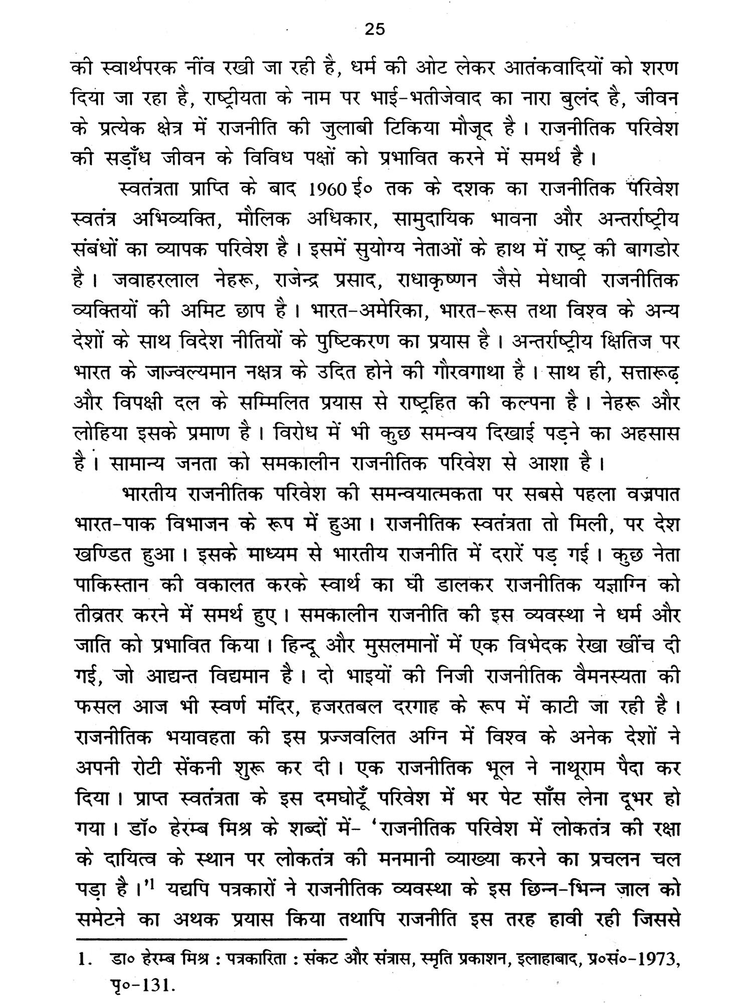 किसी भी देश और समाज के निर्माण में पत्रकारिता की विशिष्ट भूमिका होती है। दैनंदिन जीवन में विविध प्रकार की गतिविधियों के संकलन में मानवजाति का तापमान पत्रकारिता के माध्यम से मापा जा सकता है। यह वह कसौटी है जिसके माध्यम से सम्पूर्ण जनता के बाह्य और आन्तरिक व्यक्तित्व और परिवेश को उद्घाटित करने में सफलता मिलती है। समकालीन संदर्भ में इसका दायित्व और बढ़ गया है, क्योंकि आधुनिक पत्रकारिता विज्ञान के साथ गठबंधन पर उस चरम शिखर पर पहुँचने की घोषणा कर रही है, जहाँ से जमीन की पड़ताल भी आवश्यक है और आकाश का व्योमविहारी दृश्य भी अवलोकनीय है। पत्रकारिता के अन्तर्गत रेडियो और दूरदर्शन को ग्रहण कर लेना जहाँ उसके जीवन-दर्शन को व्यापक बनाने की ओर विनिर्दिष्ट करता है वहीं इसकी गुणवत्ता सह-आत्मालोचन के लिए भी प्रेरित करता है। समकालीन पत्रकारिता की बाहें इतनी लम्बी है कि उसमें वह सबकुछ समाहित है जिसकी विवक्षा हम आज की जिन्दगी में पाते हैं। विषय की व्यापकता और समकालीन जिन्दगी के अहसास ने मुझे इस संदर्भ में सोचने-विचारने के लिए उस समय से विवश किया जबसे मैं एम०ए० हिन्दी में विशिष्ट पत्र के रूप में 'पत्रकारिता' को रखी।