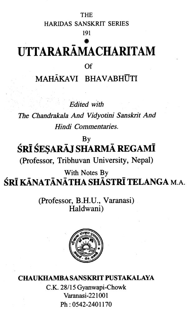 उत्तररामचरितम्- Uttarramcharitam of Mahakavi Bhavabhuti Edited with the 'Chandrakala' and 'Vidyotini' Sanskrit and Hindi Commentaries