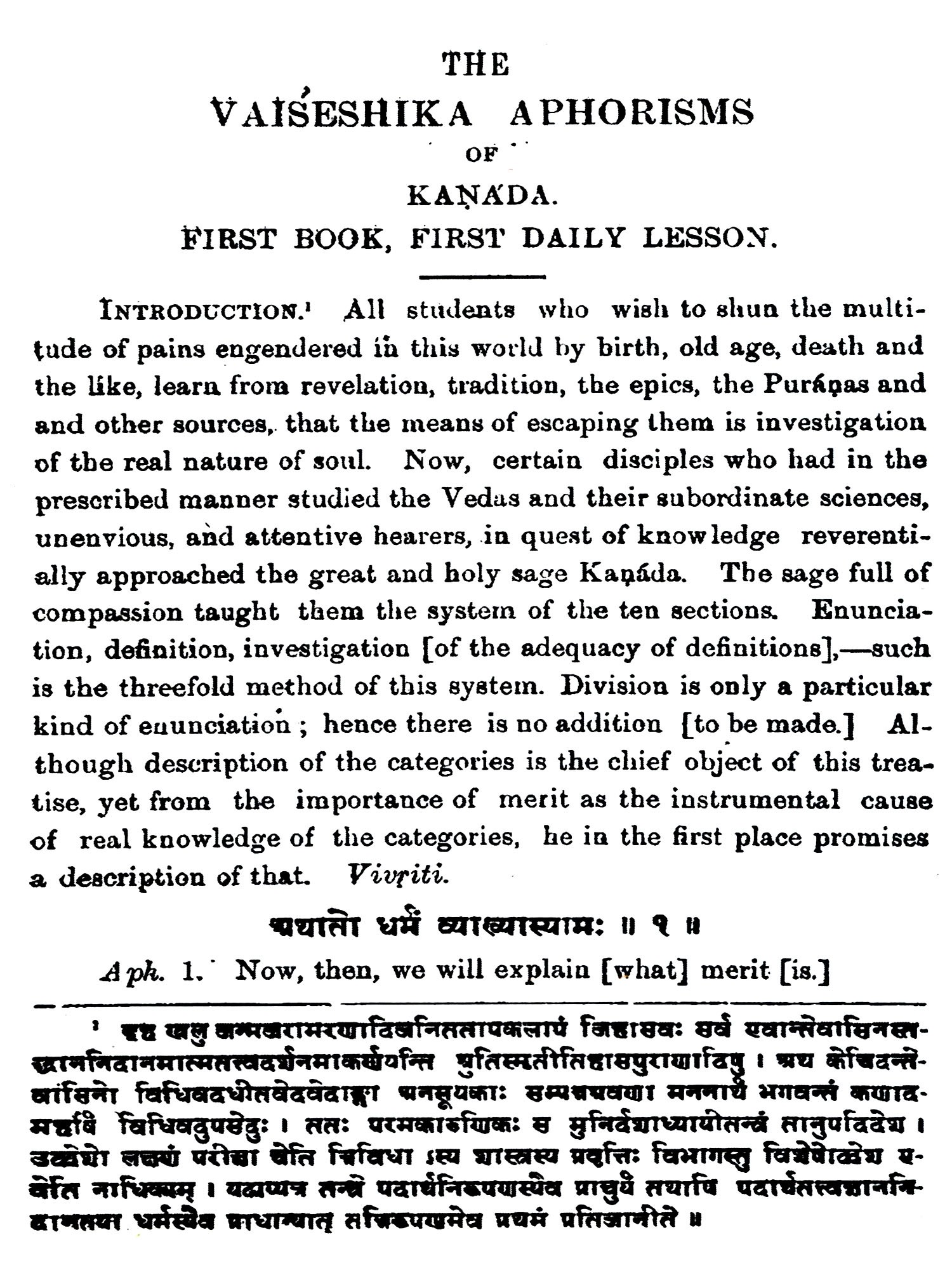"The Vaiseshika Aphorisms of Kanada, With Comments from the Upaskara of San-Kara-Misra and the Vivritti of Jaya-Narayana-Tarkapanchanana" is a critical edition and translation of one of the foundational texts of the Vaiśeshika school of Indian philosophy. Originally composed by the sage Kanada, the Vaiseshika Sutras lay out a systematic framework that categorizes reality into substances, qualities, and other ontological elements, aiming to explain the nature and structure of the physical world and its relation to dharma (moral law). The text is enriched with the commentaries of San-Kara-Misra and Jaya-Narayana-Tarkapanchanana, whose insights elucidate complex doctrinal points and provide interpretative depth. This work not only serves as a crucial resource for understanding classical Indian metaphysics but also illustrates the vibrant tradition of philosophical commentary in India, showcasing the dynamic and evolving discourse among scholars across centuries.
