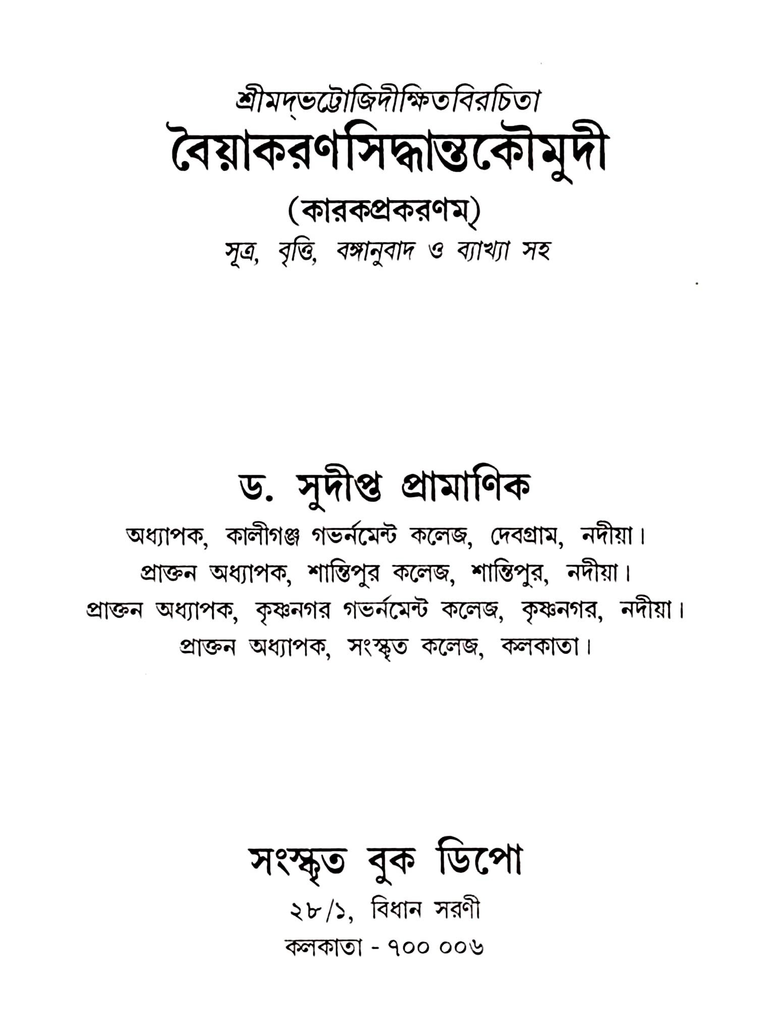 বৈয়াকরণসিদ্ধান্তকৌমুদী (তিঙন্তপ্রকরণ): Vaiyakarana Siddhanta Kaumudi (Tinganta Prakarana in Bengali)