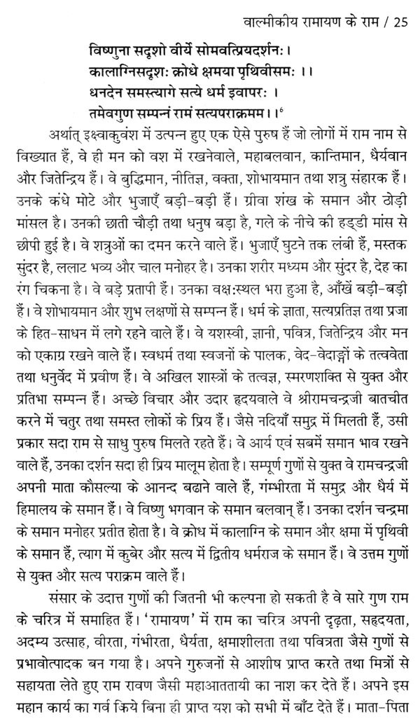 महर्षि ने श्रीराम का मानव के रूप में चित्रण करते हुये उनमें मानवीय संवेदनाओं को भरपूर मात्रा में भरा है। रामायण में राम महाराज दशरथ तथा कैकेयी से हुये अन्याय की समीक्षा करते हैं। इतना ही नहीं, सीताहरण के पश्चात् राम सामान्य नायक की भाँति वियोग में तड़पते हुये पागलों सा व्यवहार भी करने लगते हैं। संक्षेप में महर्षि वाल्मीकि ने श्रीराम का मानव के रूप में चित्रण किया और वे भगवान बन गये जबकि तुलसीदास ने श्रीराम का भगवान के रूप में चित्रण किया और वे मानव बन गये। अतः पी-एच०डी० के महानिबंध में वाल्मीकि के मानव राम का विस्तृत चित्रण निबंध के विस्तार के भय से नहीं कर सका परंतु मन में निश्चय कर लिया कि पी-एच०डी० के समाप्त होते ही महाकवि वाल्मीकि द्वारा चित्रित मानव राम को समझने का सादर प्रयास करूँगा और इष्टदेव ने मेरी इच्छा को मूर्तिमान कर दिया।