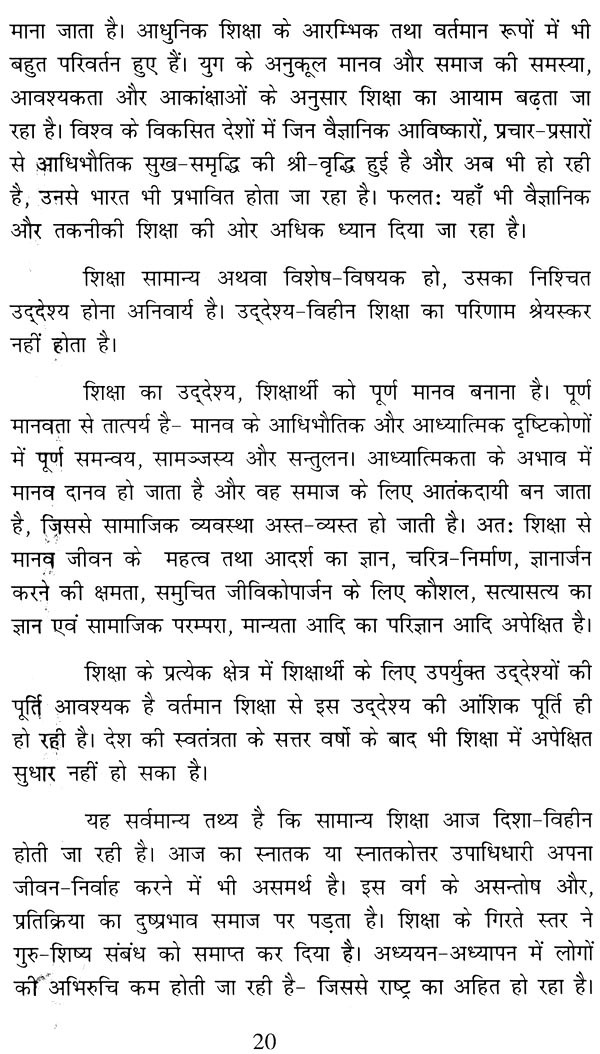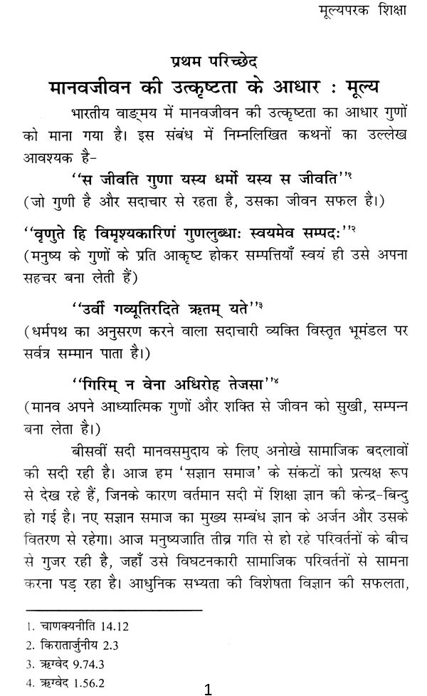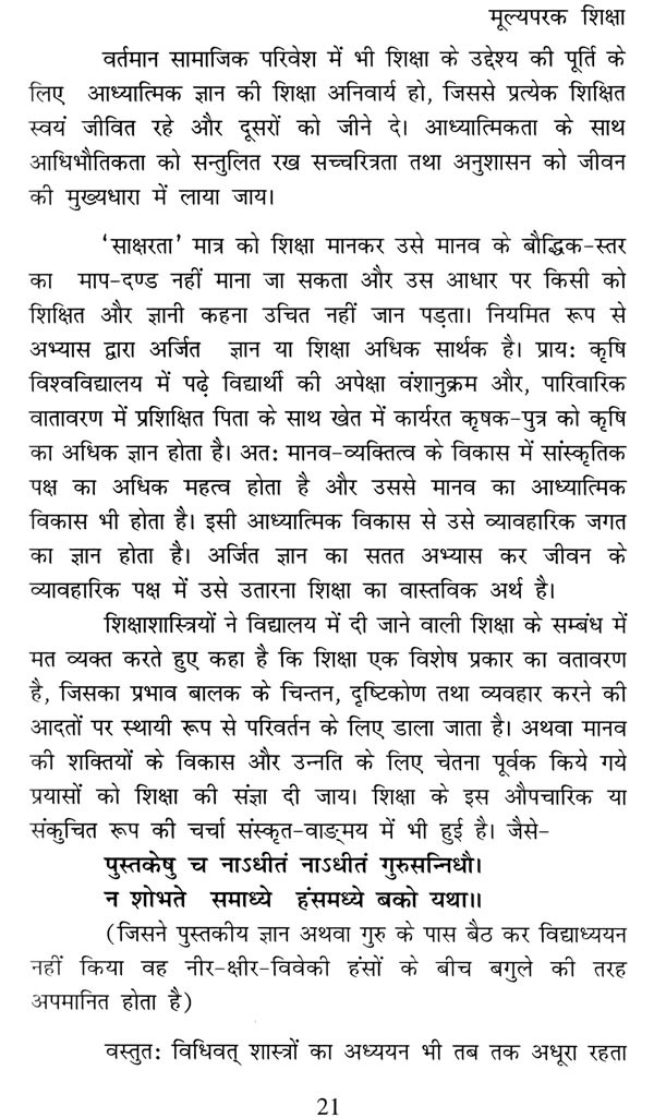 शिक्षा समाज रूपी व्यवस्था का एक अभिन्न अंग है। शिक्षा के क्षेत्र में भी अनुशासनहीनता, अध्ययन-अध्यापन में अपेक्षित गुणात्मक स्तर का अभाव, उत्तरदायित्व, कर्तव्य के प्रति उपेक्षा, श्रम के प्रति अनास्था आदि विविध रूपों में दृष्टिगोचर होती है। मानव के स्वाभाविक गुणों के विकास के लिए शिक्षा द्वारा उचित वातावरण प्रस्तुत नहीं किए जाने से सक्रिय, कर्तव्यनिष्ठ, व्यवहारकुशल, आत्मनिर्भर और विकासोन्मुख राष्ट्र के लिए योग्य और आदर्श नागरिक नही बन पाता। अतः आज मूल्यपरक शिक्षा की आवश्यकता बड़ी तीव्रता से अनुभव की जा रही है।