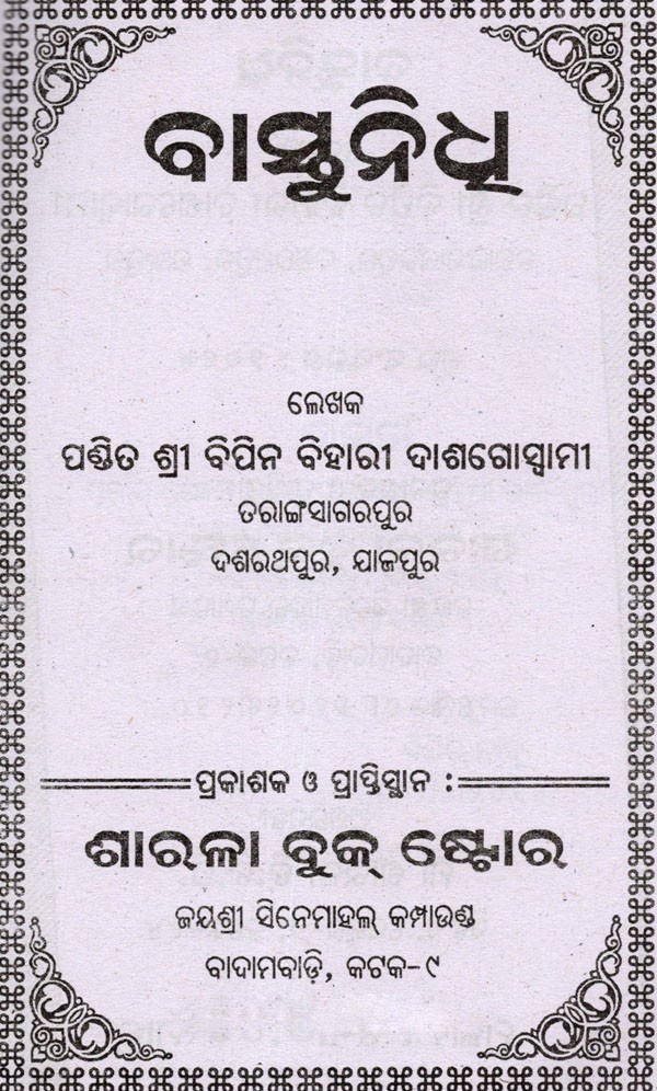 ବୃହତ୍ ବାସ୍ତୁ ରତ୍ନାବଳି ଓ ବା ବାସ୍ତୁ ପୂଜା: Brihat Vastu Ratanavali and Vastu Puja (Oriya)