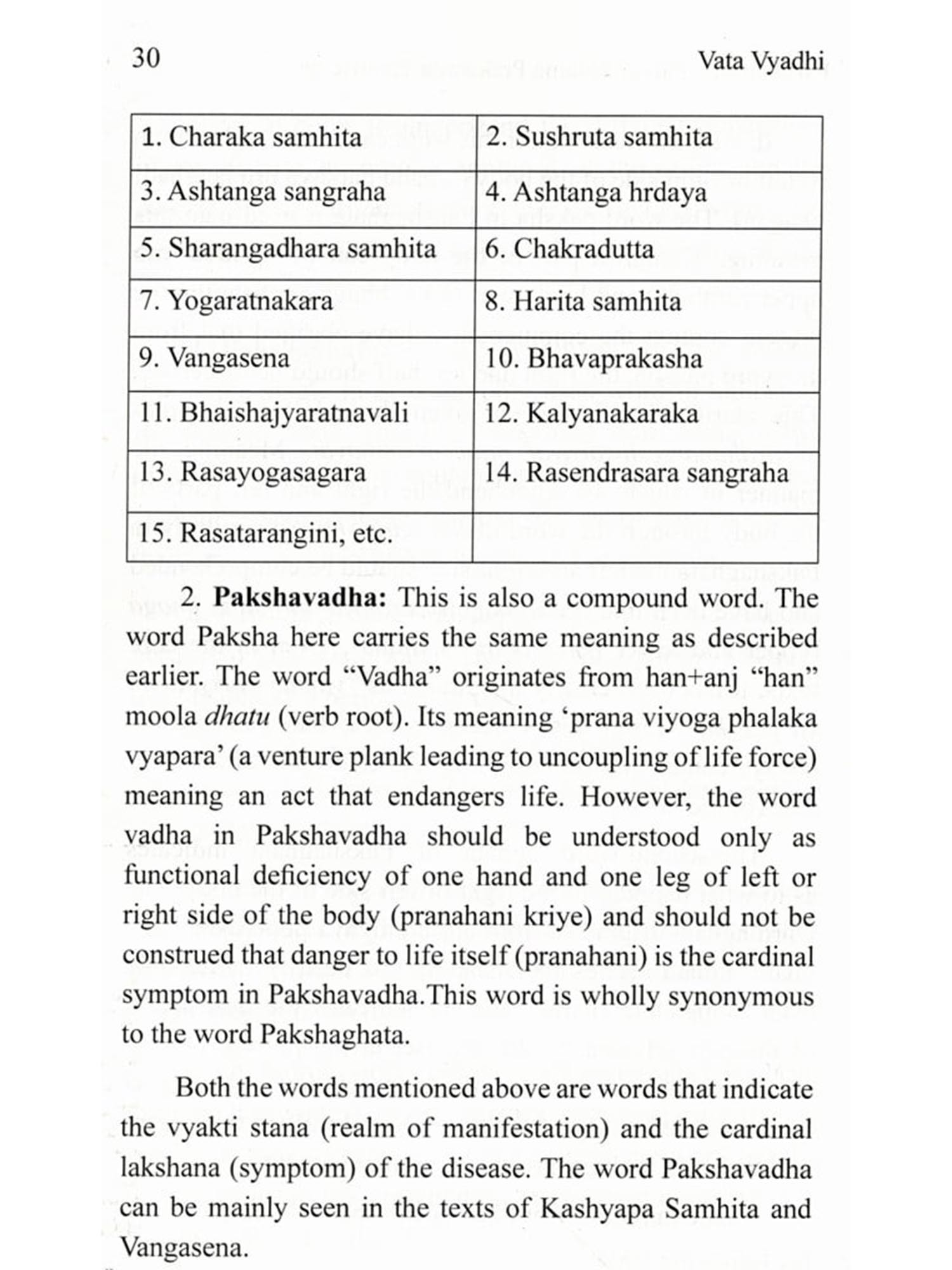 Vatavyadhi is among the eight major diseases (Mahavyadhi). Even amidst them Pakshaghata (Hemiplegia) is a formidable and difficult to treat disease. Many are succumbing to this disease nowadays and suffering. There is an increasing number of patients, coming to Ayurveda hospitals with the hope of getting cured through Panchakarma therapy, since they could not get completely cured through treatments of modern medical science. Hence Dr. Gopinath has decided to write about this disease first and publish it.