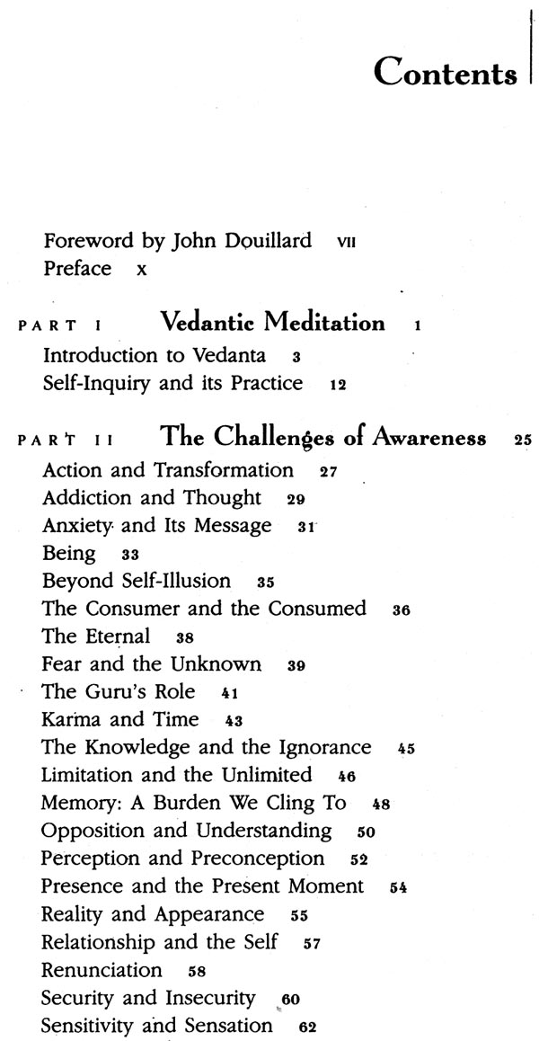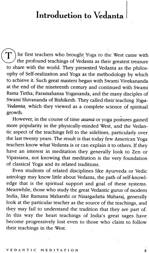 The purpose of the present book is to introduce or reintroduce Vedanta in a personal and experiential manner so that the reader can come to a living and direct connection with the teaching. It is not an academic presentation examining the subject from a conceptual or historical angle. Nor is it a traditional pre- sensation elucidating technical terms in a systematic manner for specially trained and prepared students.