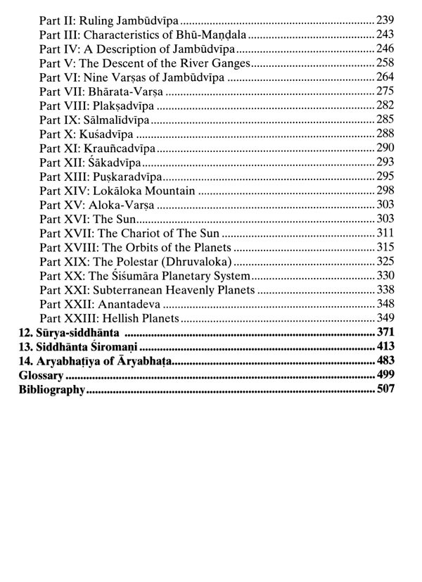 Chapters Twelve, Thirteen and Fourteen comprise the available English translated texts by Western scholars of three famous Jyoti Šastras namely Sürya-Siddhanta, Siddhanta-Siromani, and The Aryabhatiya. Although Srila Prabhupada did not recommend that these be consulted, they are nonetheless being used by some of today's Vedically-oriented writings, even antithetically to the direct meaning of the Srimad-Bhagavatam's statements. Thus these nineteenth century texts are included as a reference to prevent their misuse.