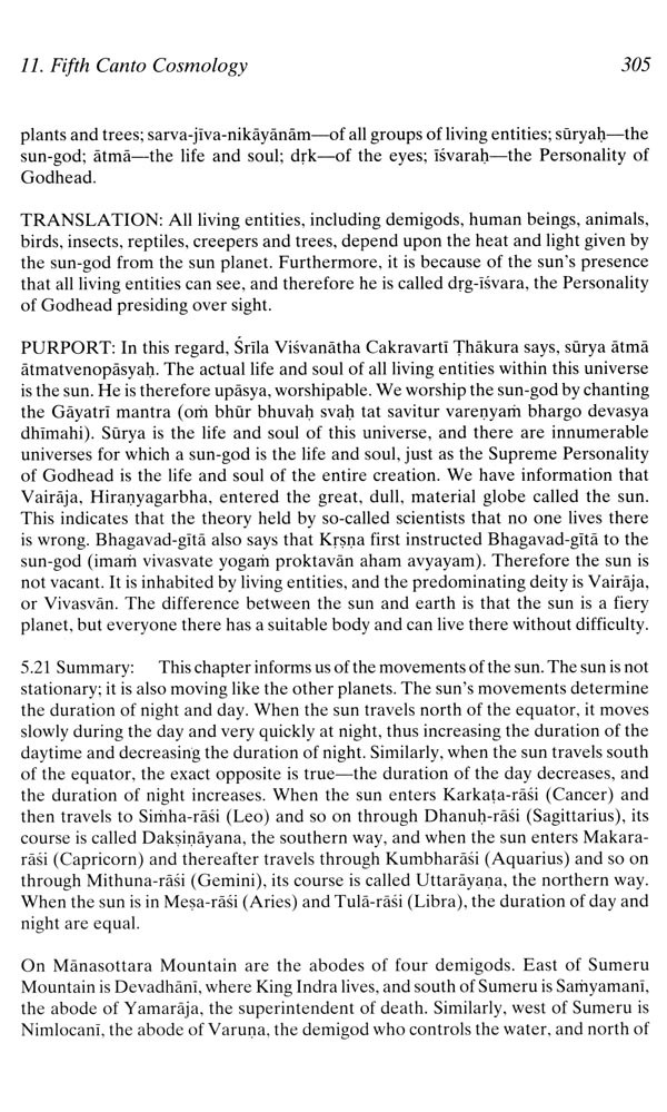 Chapter Eleven comprises all the cosmological topics contained within the Fifth Canto of the Srimad Bhagavatam, both its texts and Srila Prabhupada's purports.