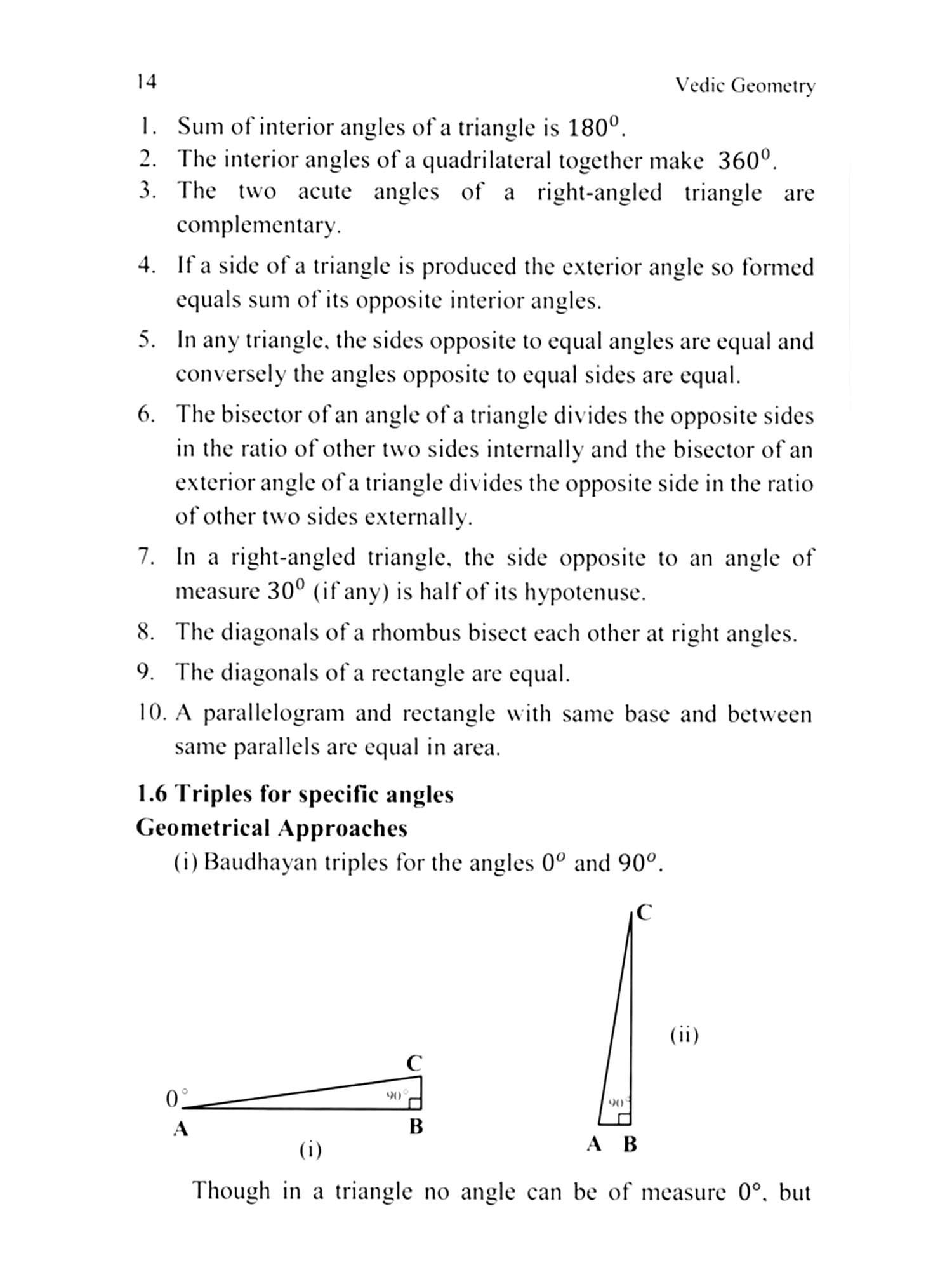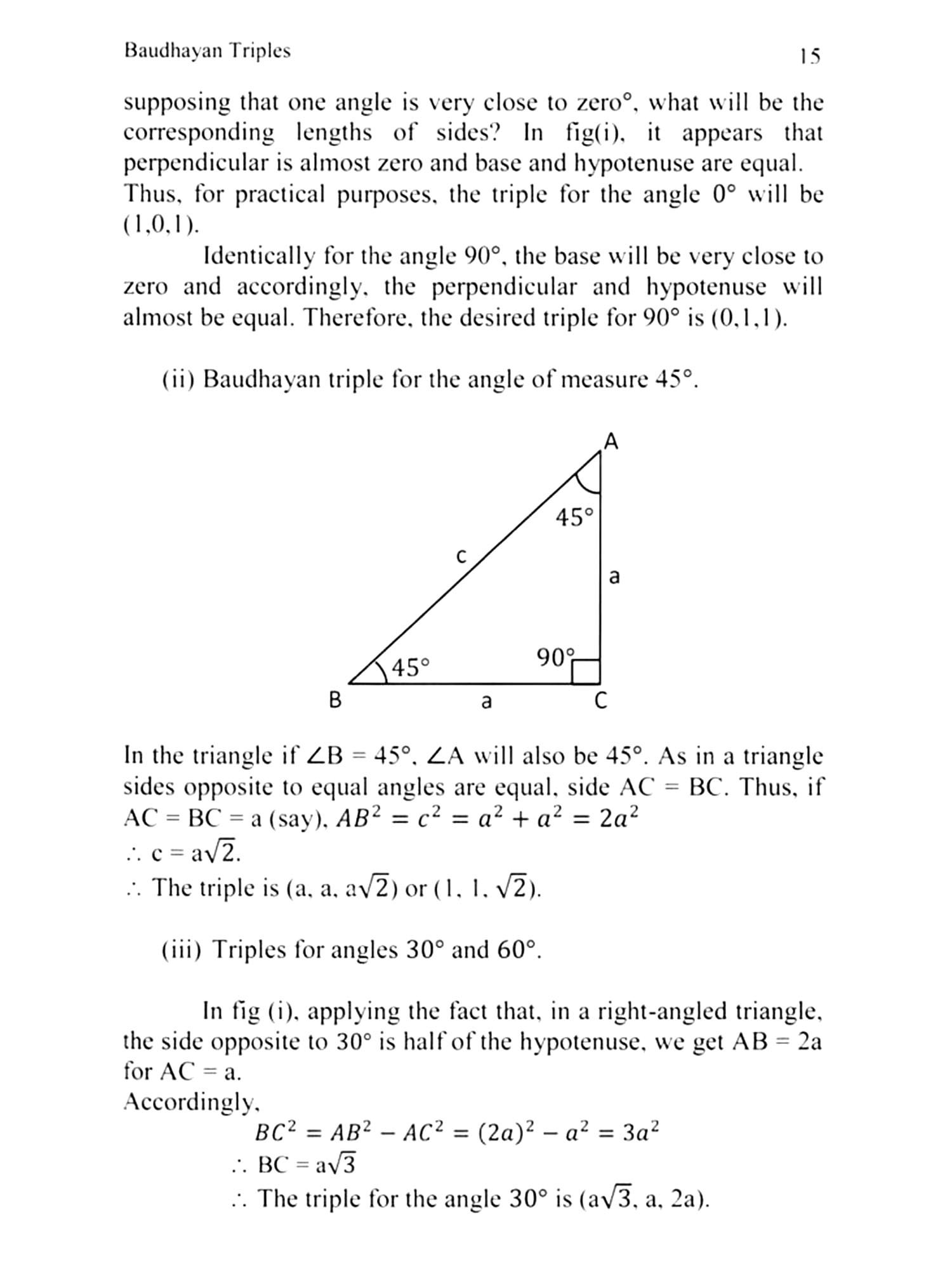 The Baudhayan Sulbasutras per-taining to the relation among sides and angles of right-angled triangles have been discussed extensively in this book.