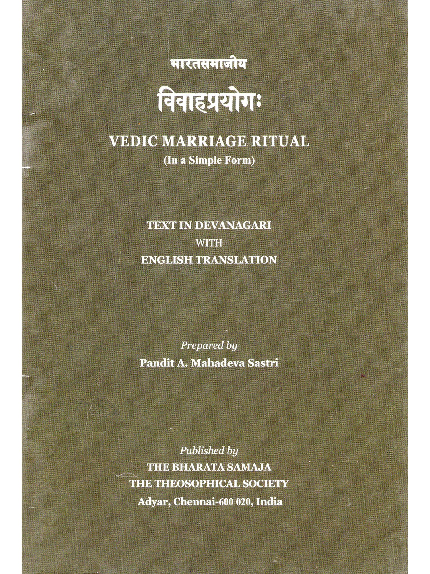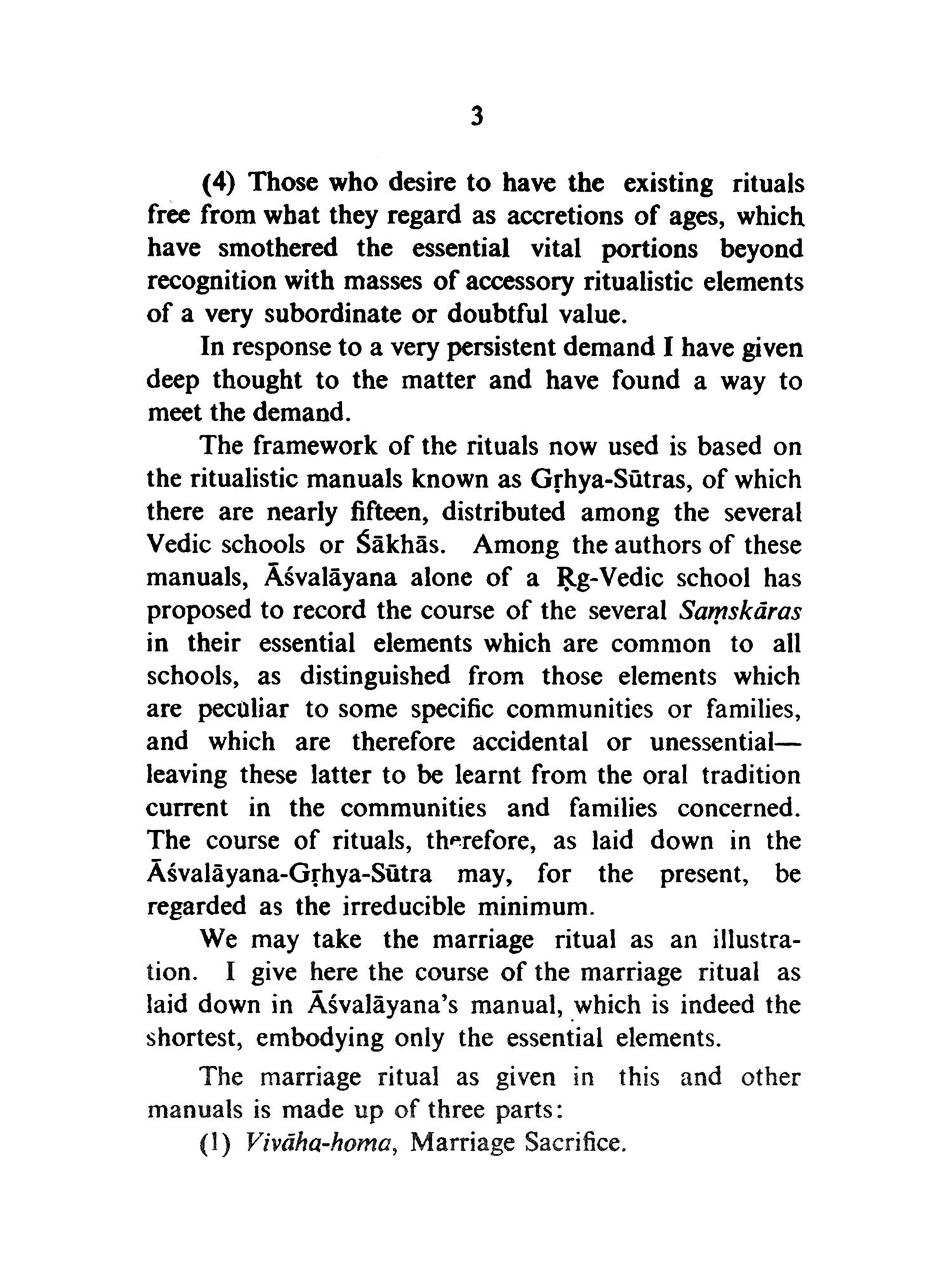 THE Vedic rituals, now in vogue, of marriage and other Samskaras or sacraments are very elaborate, and their practice at present is not accompanied with a proper understanding of the meaning and the significance of the several parts, either on the part of the performer or on the part of the officiating priest, while their perfunctory performance is a notorious fact. This has led to a complete indifference, and even neglect on the part of a large number of educated unbelievers, and to a demand for simple and significant rituals on the part of believers, who are no less in number. Such a demand has been addressed to me from the following:
