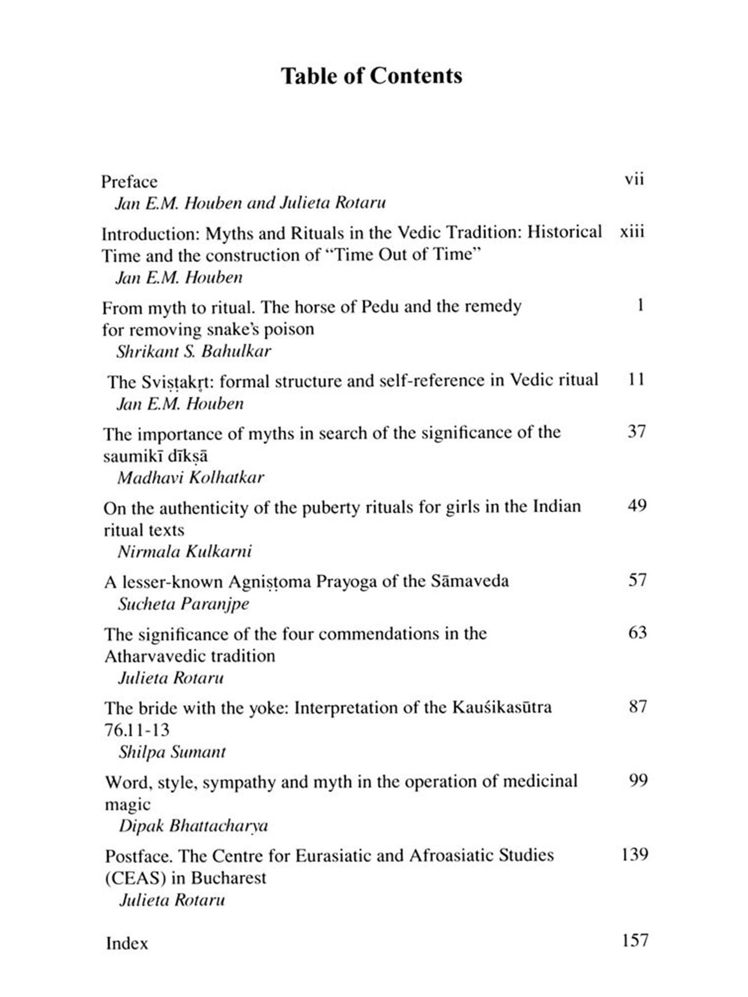 In addition to these original conference papers which have in no way lost their relevance, we have included an unpublished article by the late Professor Dr. Dipak Bhattacharya, whose work remains foundational in the field of Vedic studies. This precious contribution, though intended for a different academic occasion, namely the conference of the Centre for Eurasiatic and Afroasiatic Studies (CEAS) organised at Mamaia, Romania, in 2012, aligns seamlessly with the themes explored in this volume and serves as a fitting tribute to Bhattacharya's enduring legacy.