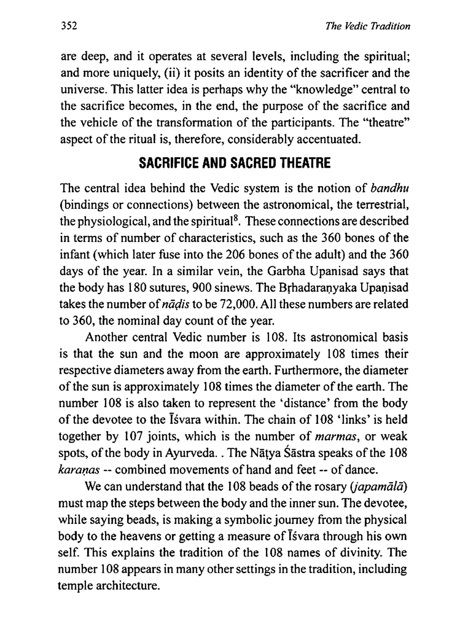 The essays have been divided into six parts to cover different aspects of this tradition that presents its enduring influence not only on the intellectual and lived life in India, but also on the rest of the world. These are: (i) Overview; (ii) Large Connections; (iii) Sanskrit and the World; (iv) Inner and Outer Cosmoses; (v) Reality and Art; and (vi) Science and Consciousness. Apart from essays on the earliest layers of the Vedic tradition, there is material on its pervading influence on modern science. Many will be intrigued by how quantum theory, the deepest theory of physics that we know, is seen by scholars to be consistent with Vedanta, and may like to explore primary sources for themselves. Each chapter comes with its own references.