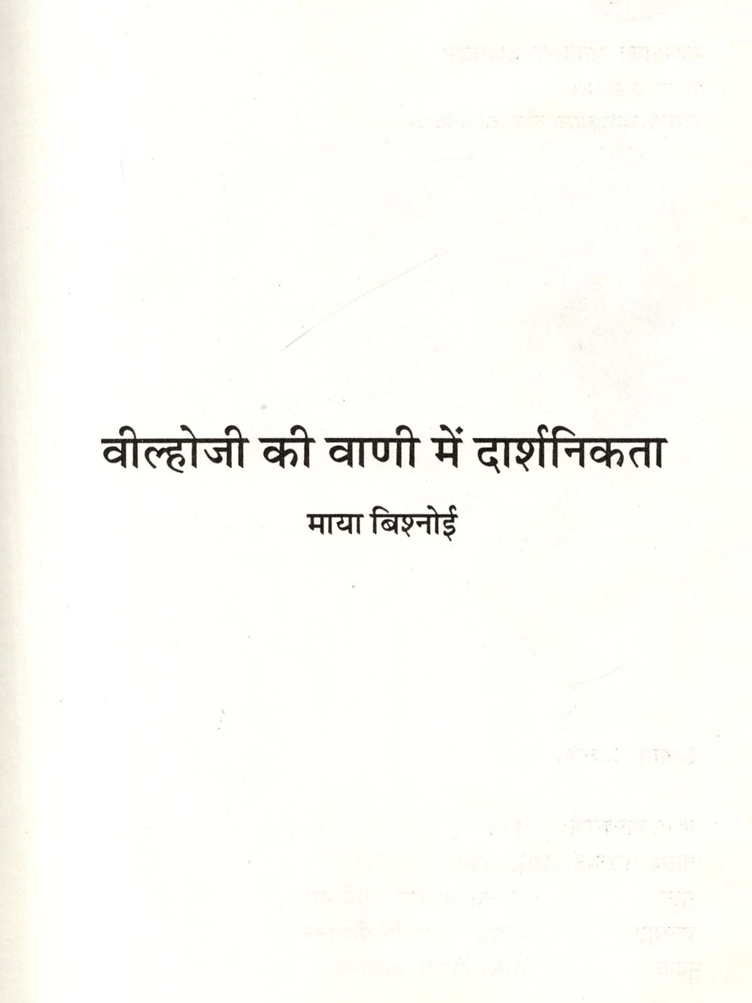 वील्होजी की वाणी में दार्शनिकता- Veelhoji ki Vani Mein Darshanikta