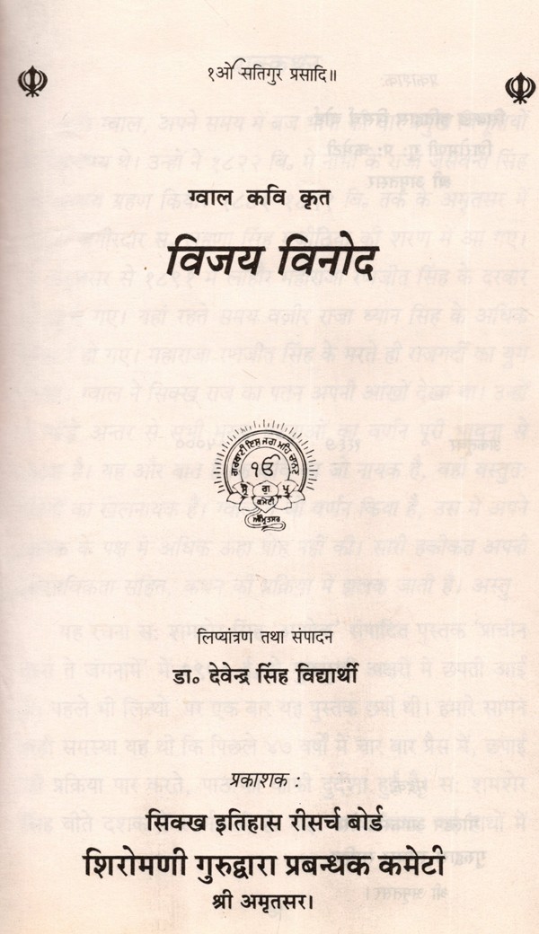 विजय विनोद: Vijay Vinod- Krit Gwal Kavi (An Old and Rare Book)