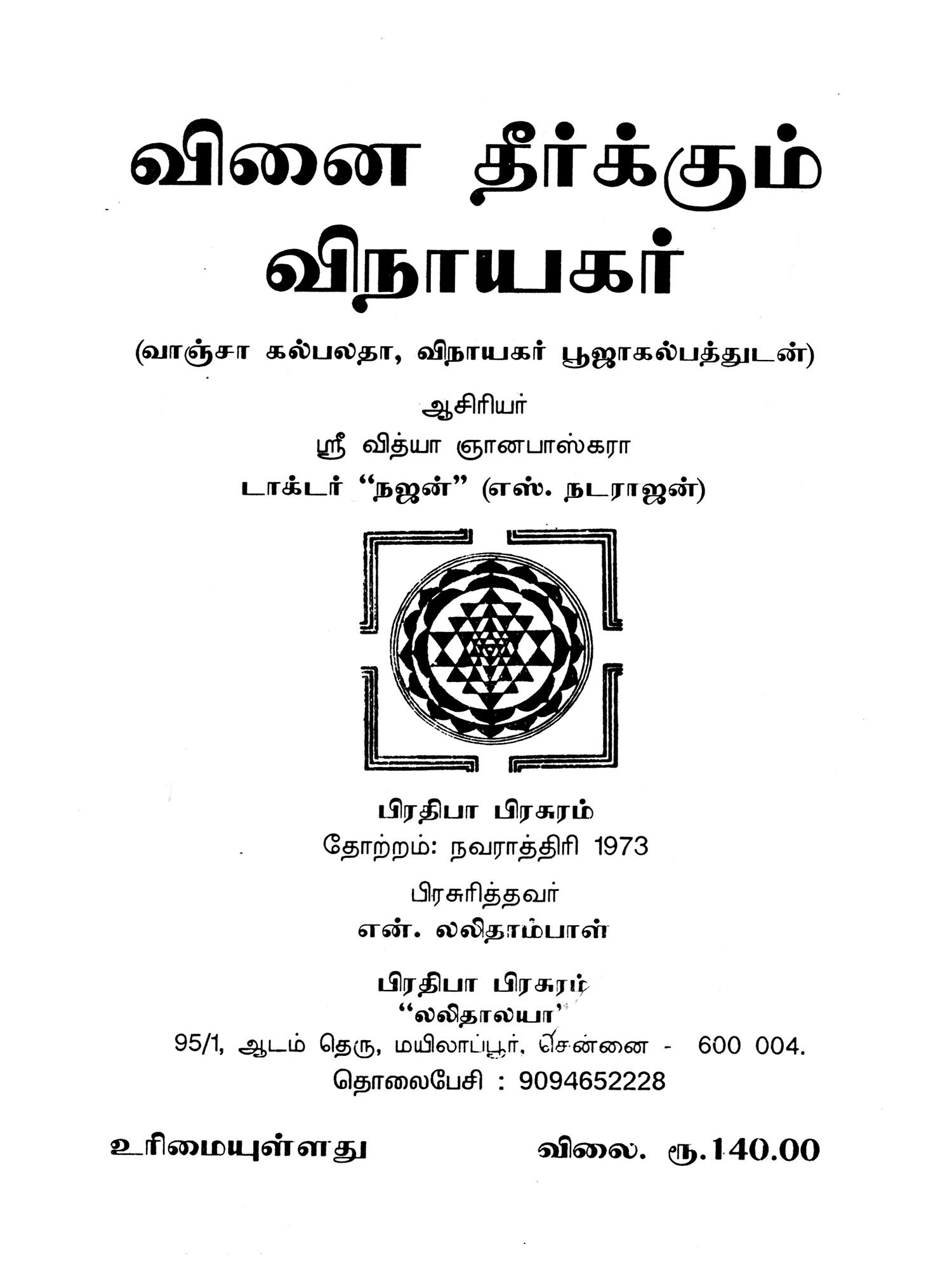 ஸ்ரீ மஹா மேரு மண்டலியின்- ஸ்ரீவித்யா நவாவரண பூஜா பத்ததி: Sri Maha Meru Mandaliyin Sri Vidhya Navavarana Pooja Bhaddhathi (Tamil)