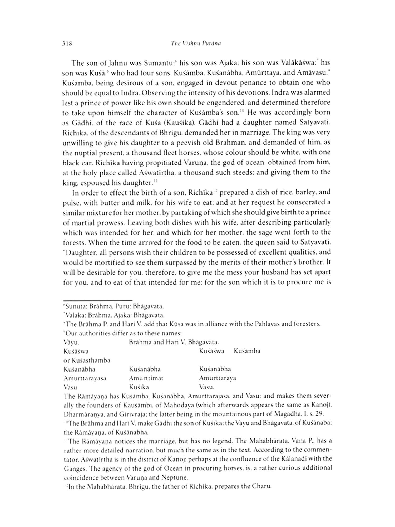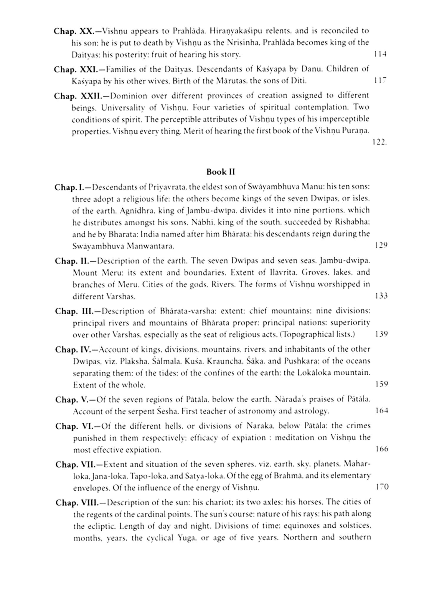 The Vishnu Purana, translated by H. H. Wilson, is a significant text within the collection of eighteen Mahapuranas, ancient Hind: scriptures Wilson's translation, first published in the 19th century, provides insight into the rich mythology and philosophical teachings of Hinduism, particularly those centered on Lord Vishnu. The text outlines the various incarnations (Avatars) of Vishnu, Including the well-known ones of Rama and Krishna, emphasizing his role as the protector of the universe and the divine force that maintains cosmic order.
